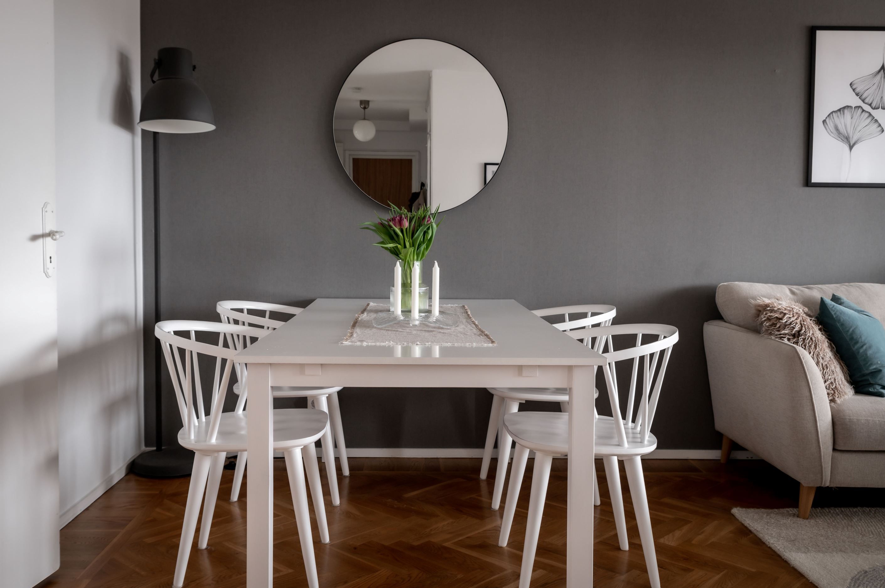 Bostaden är klokt planerad med en öppen och luftig känsla, möjlighet att springa runt-runt vilket brukar uppskattas av både barn och vuxna. De båda sovrummen är placerade mot svala norr med en rymlig klädkammare mitt emellan. Badrummet är helkaklat med tvättmaskin och köket är renoverat med snyggt integrerade vitvaror.