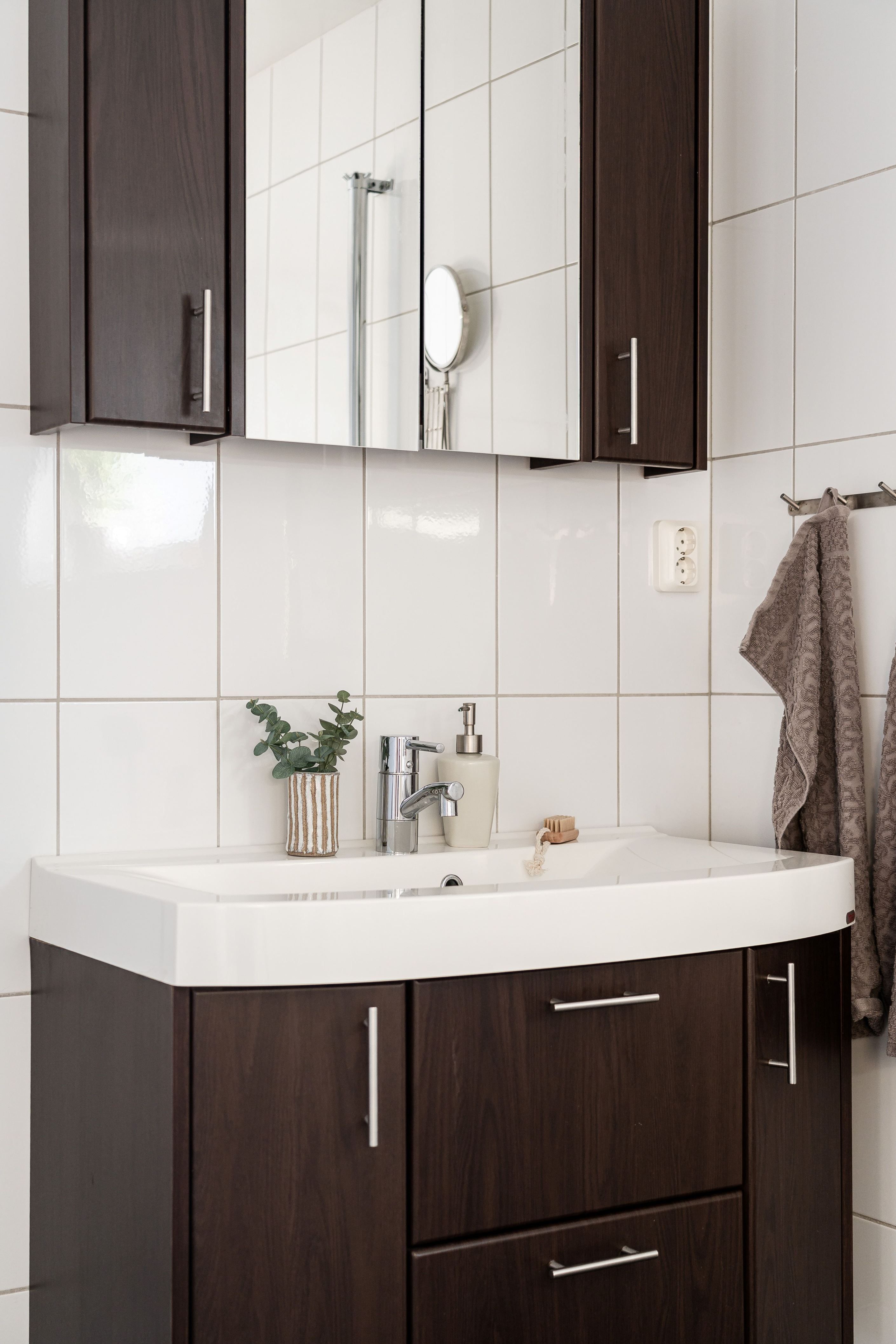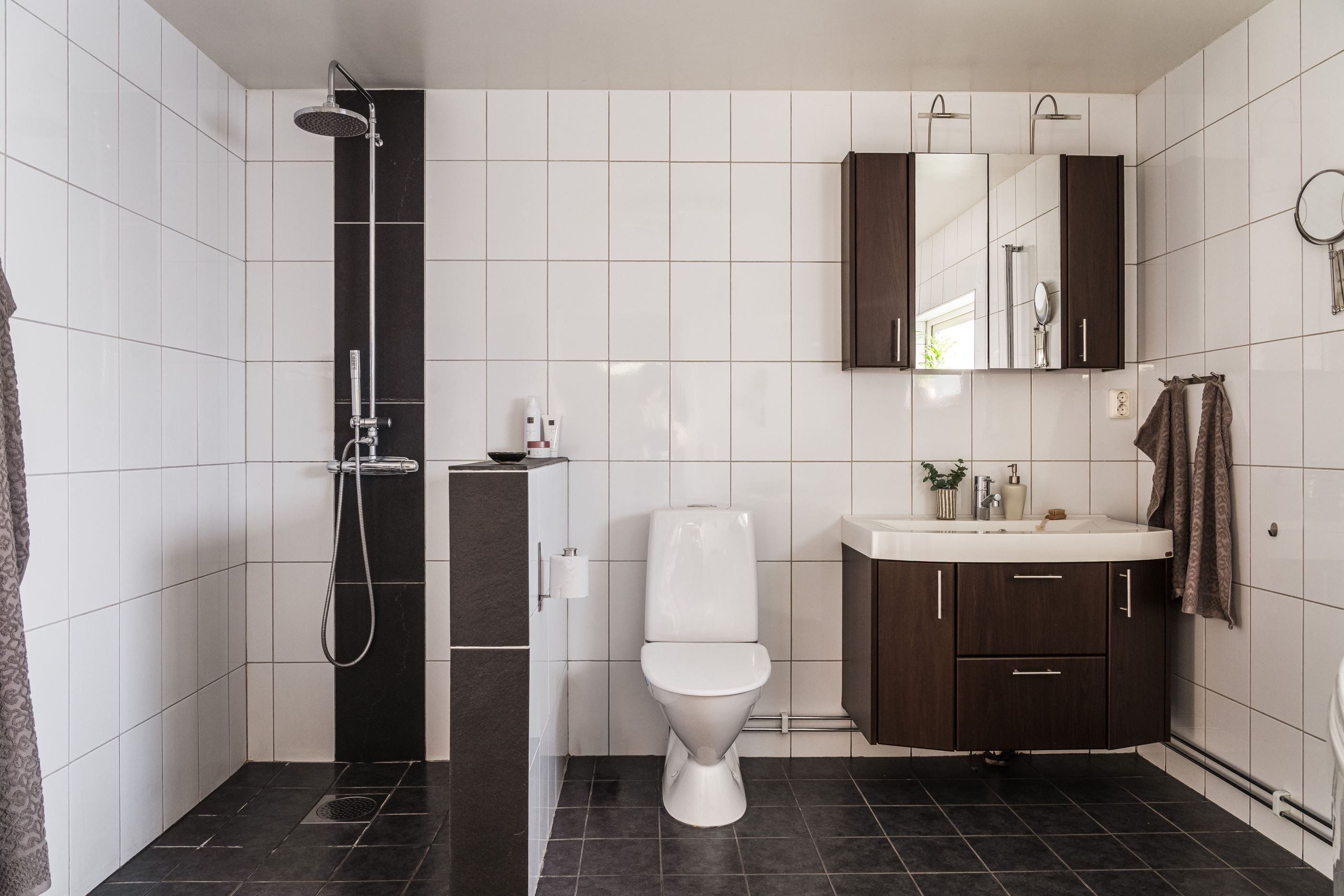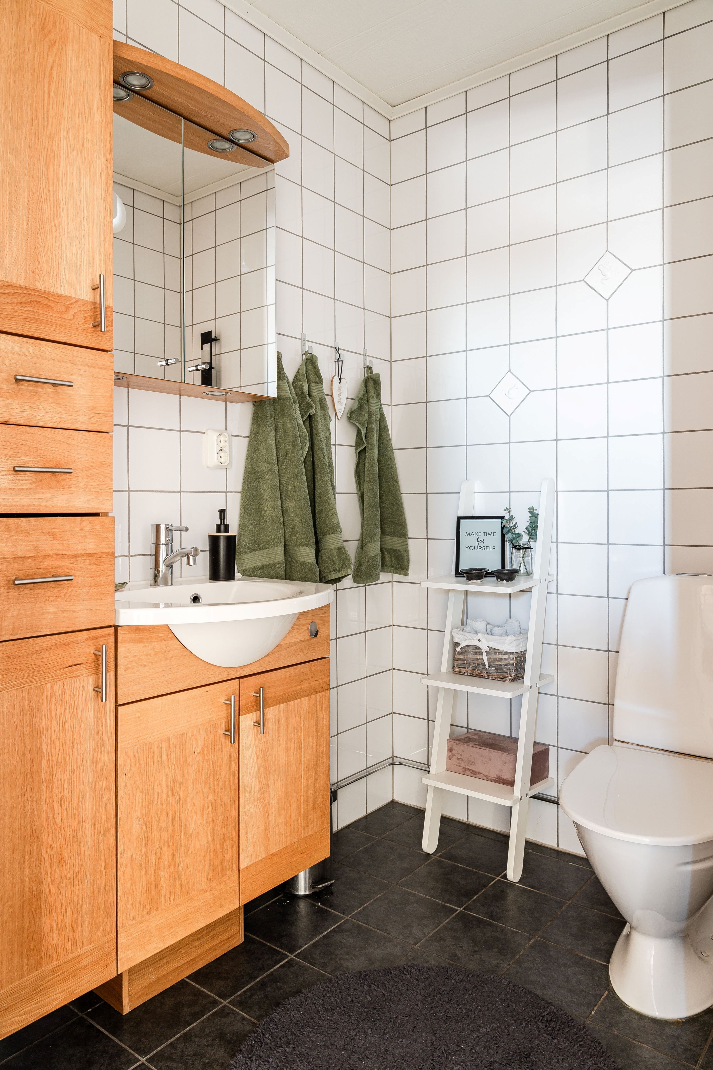 Bostaden rymmer tre sovrum, gästtoalett samt en kombinerad tvättstuga och badrum utrustat med både badkar och dusch. Härifrån finns även utgång till altanen.