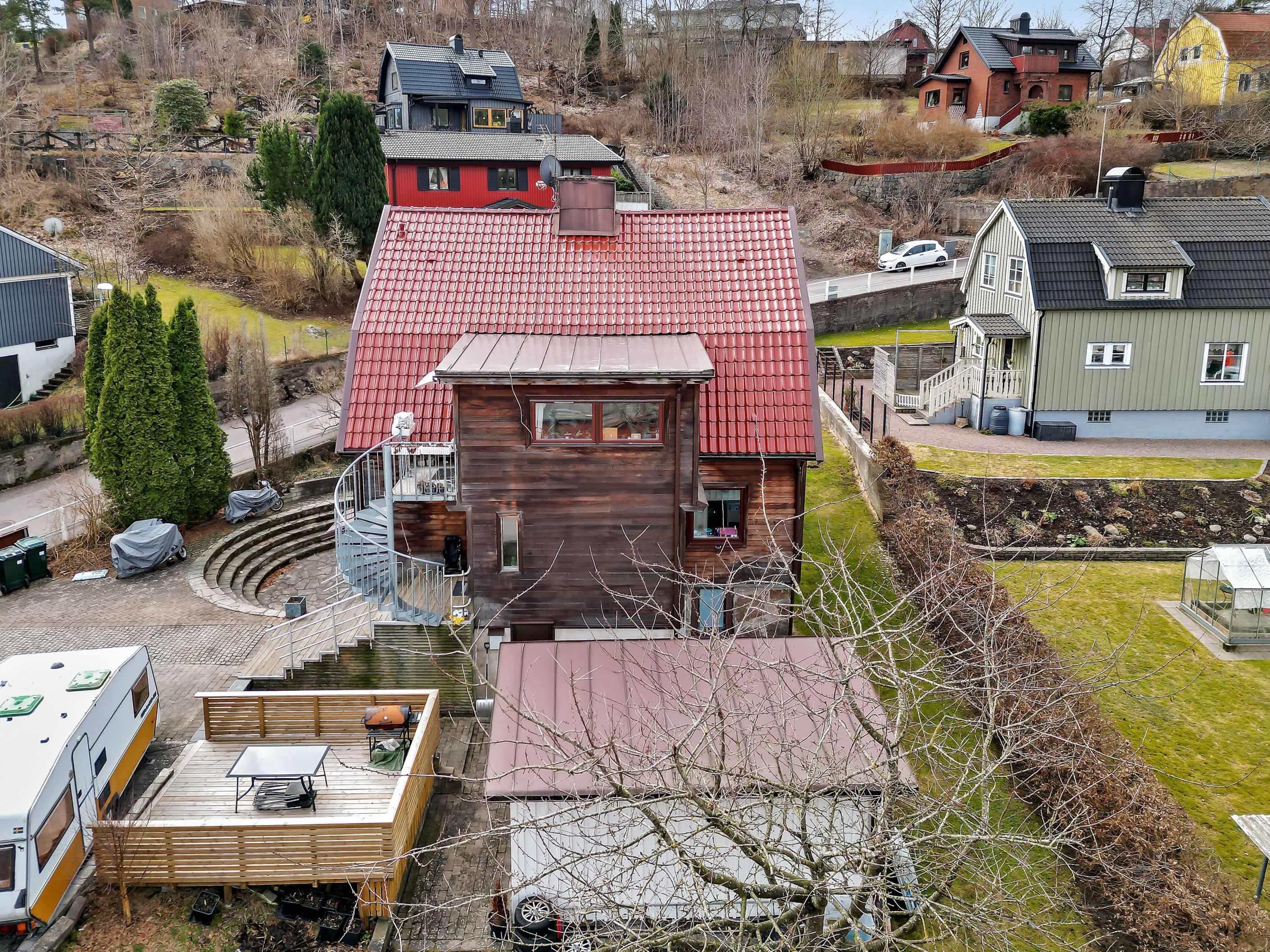 Huset uppfördes 1928 och har genomgått en omfattande om- och tillbyggnation med en stora renoveringar från 2012. Då uppdaterades bland annat tak, kök, våtrum, fasad, el, vvs och dränering. Luft/vatten värmepumpen byttes -23. Sammanfattningsvis en väldigt väl omhändertagen villa redo för nästa ägare. Lägenheterna har nya ytskikt, delvis ny el, ny vvs, nya kök, renoverade badrum, nyare vitvaror, parkett och klinkergolv. Till varje lägenhet finns ett förråd i den separata förrådsbyggnaden, tillgång till trädgård och p-plats på tomten.