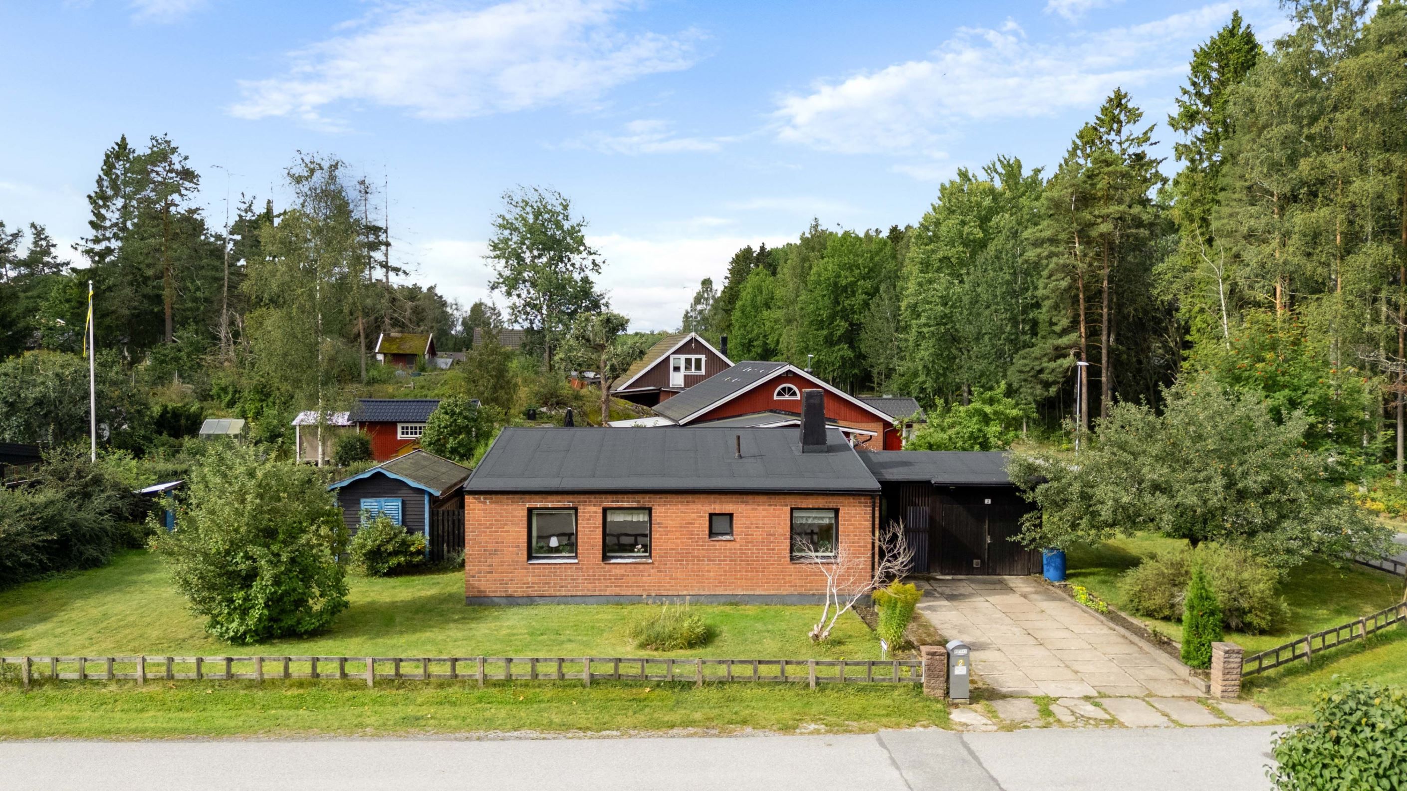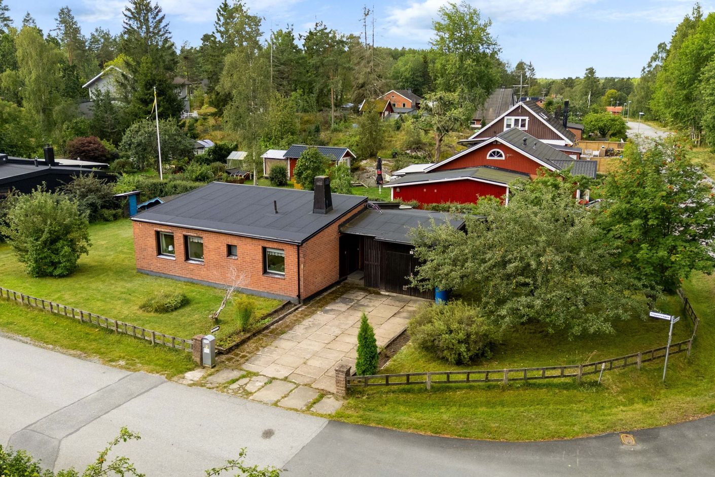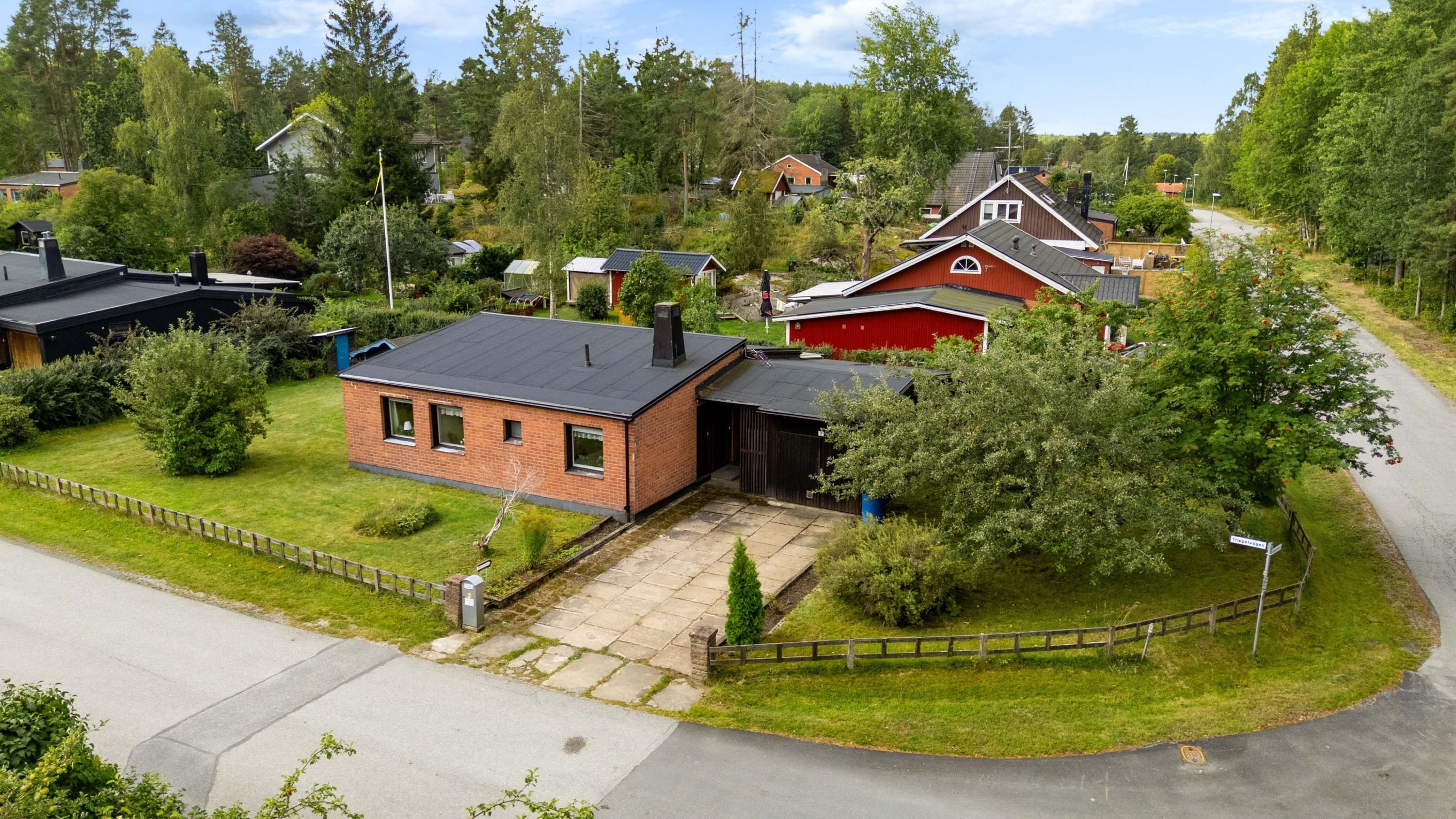 Den generösa hörntomten på 912 kvm är en av fastighetens stora fördelar. Här finns plats för lek, odling, uteplatser och kanske till och med en pool för den som drömmer om det lilla extra. Garaget och den rymliga uppfarten ger plats för bil, hobby eller extra förvaring.