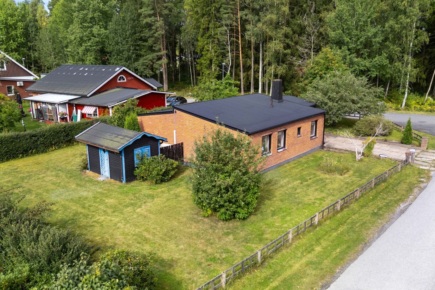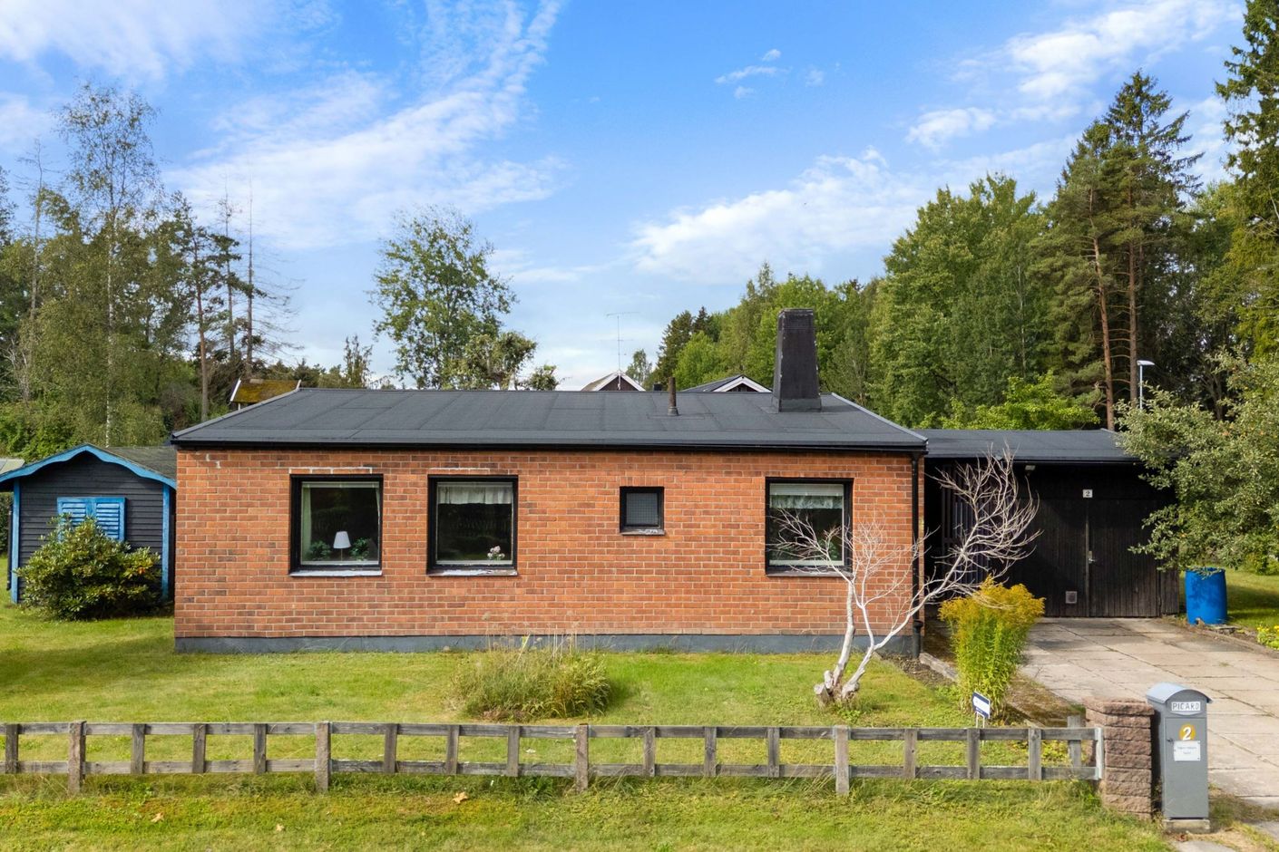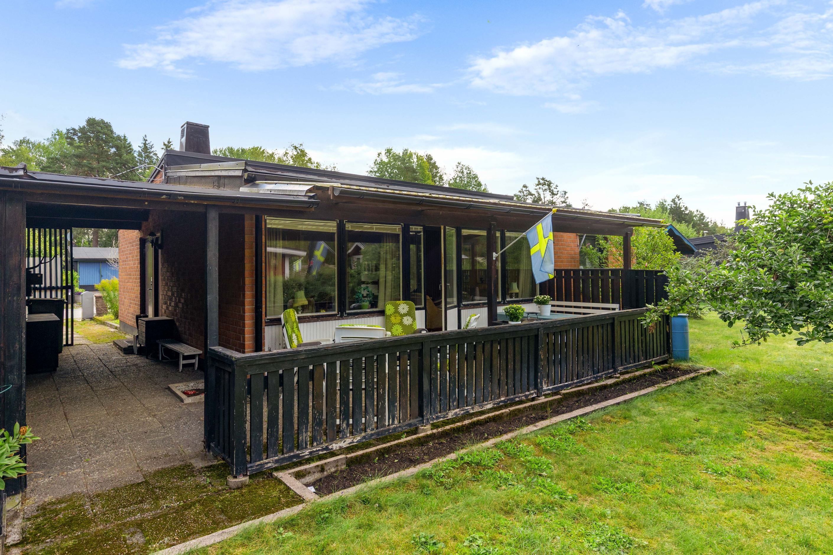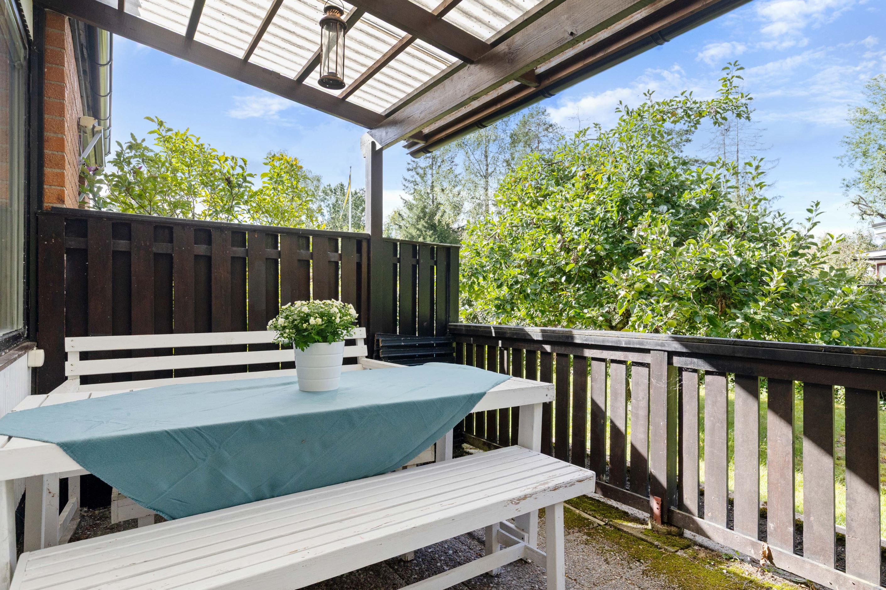 Den generösa hörntomten på 912 kvm är en av fastighetens stora fördelar. Här finns plats för lek, odling, uteplatser och kanske till och med en pool för den som drömmer om det lilla extra. Garaget och den rymliga uppfarten ger plats för bil, hobby eller extra förvaring.