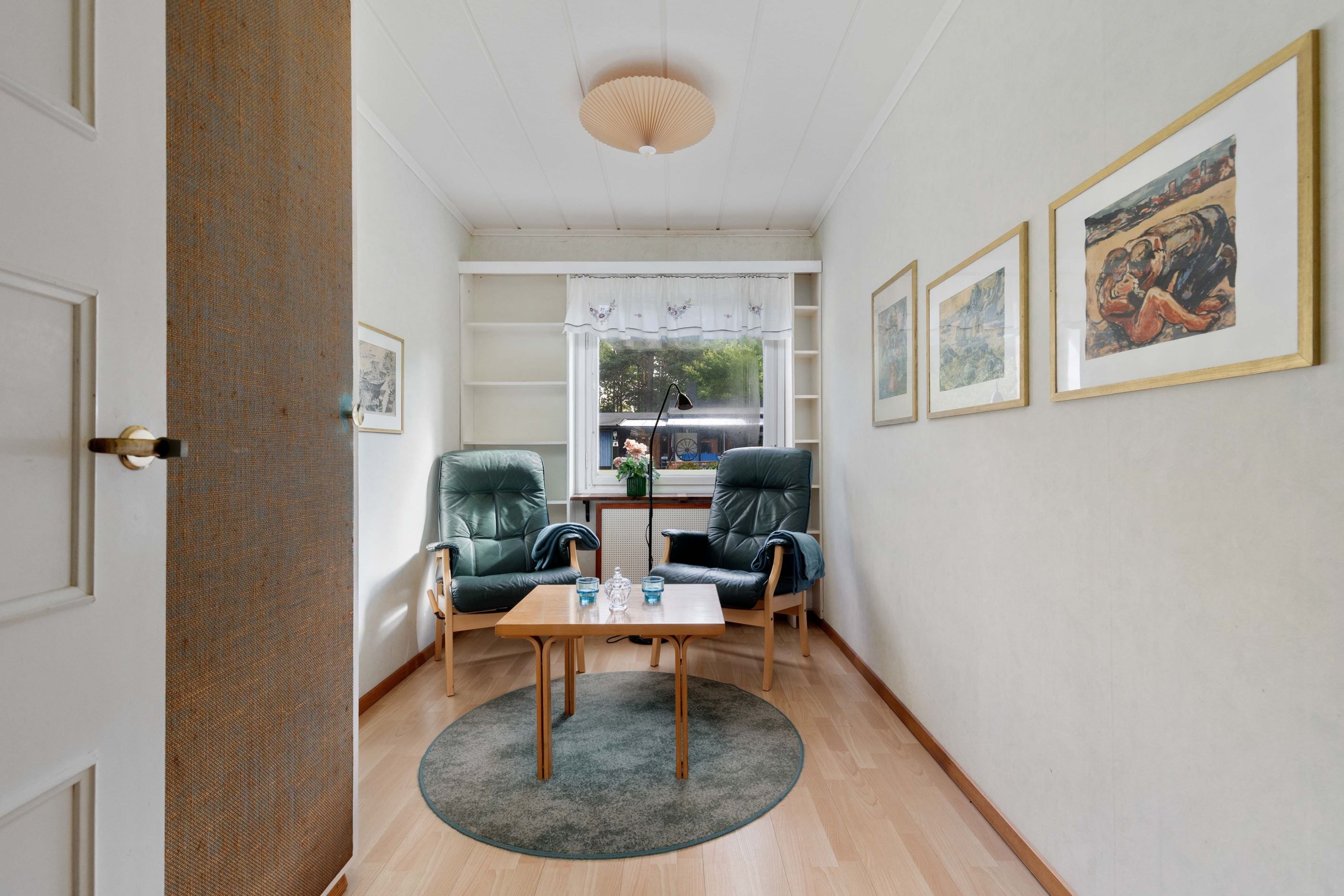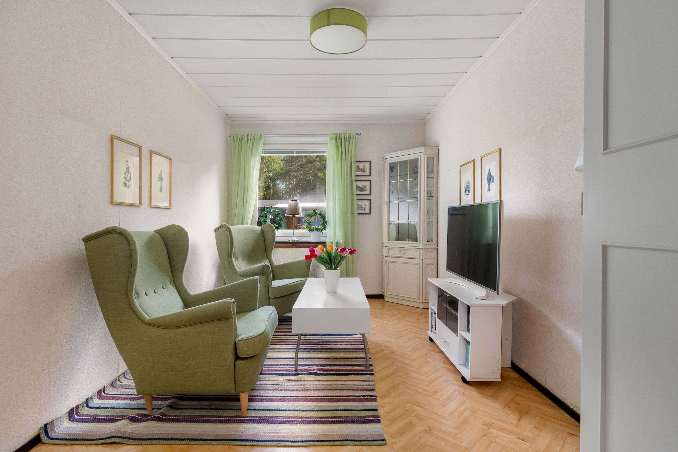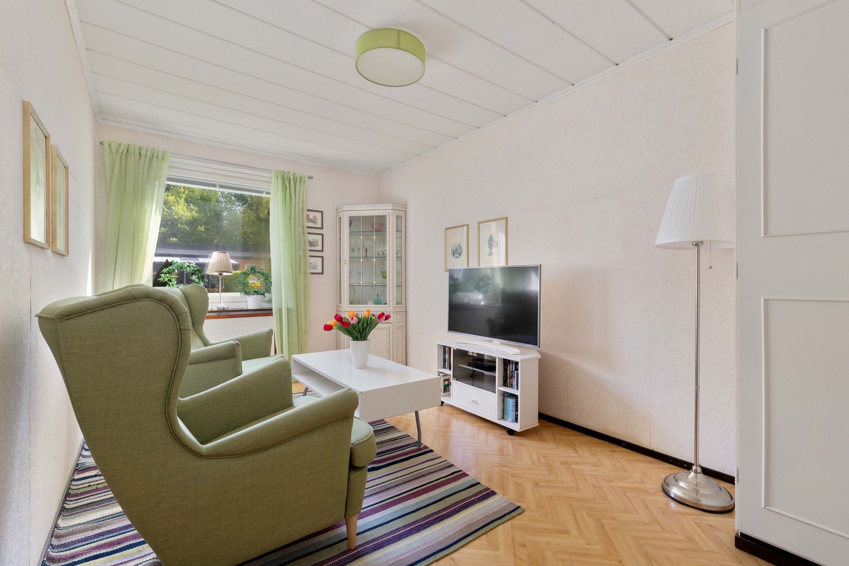 Vidare finns två sovrum i bra storlek. Badrummet har äldre standard men en praktisk disposition. Allt är smidigt samlat på ett plan – lättillgängligt och bekvämt för både små och stora familjer.