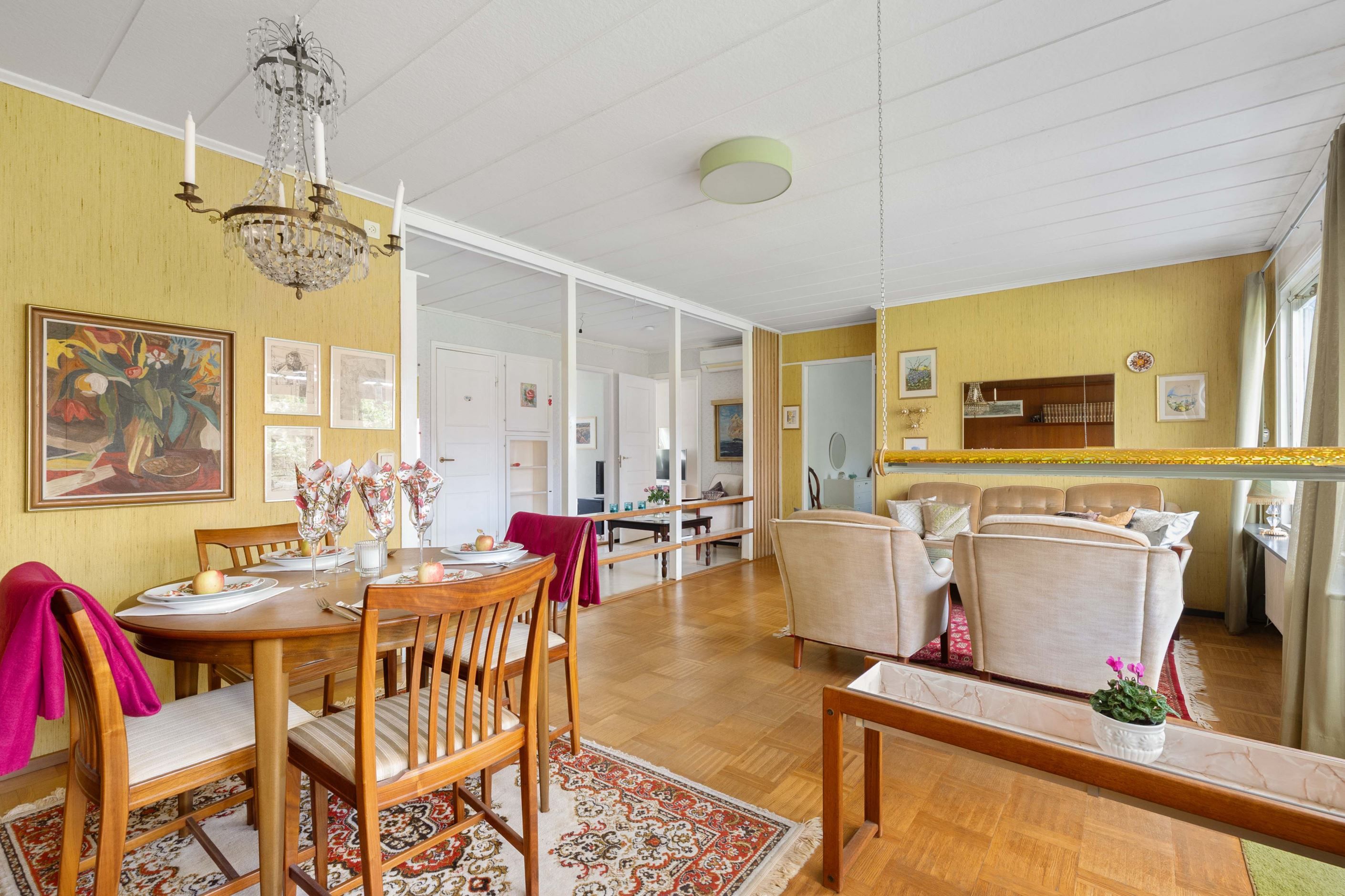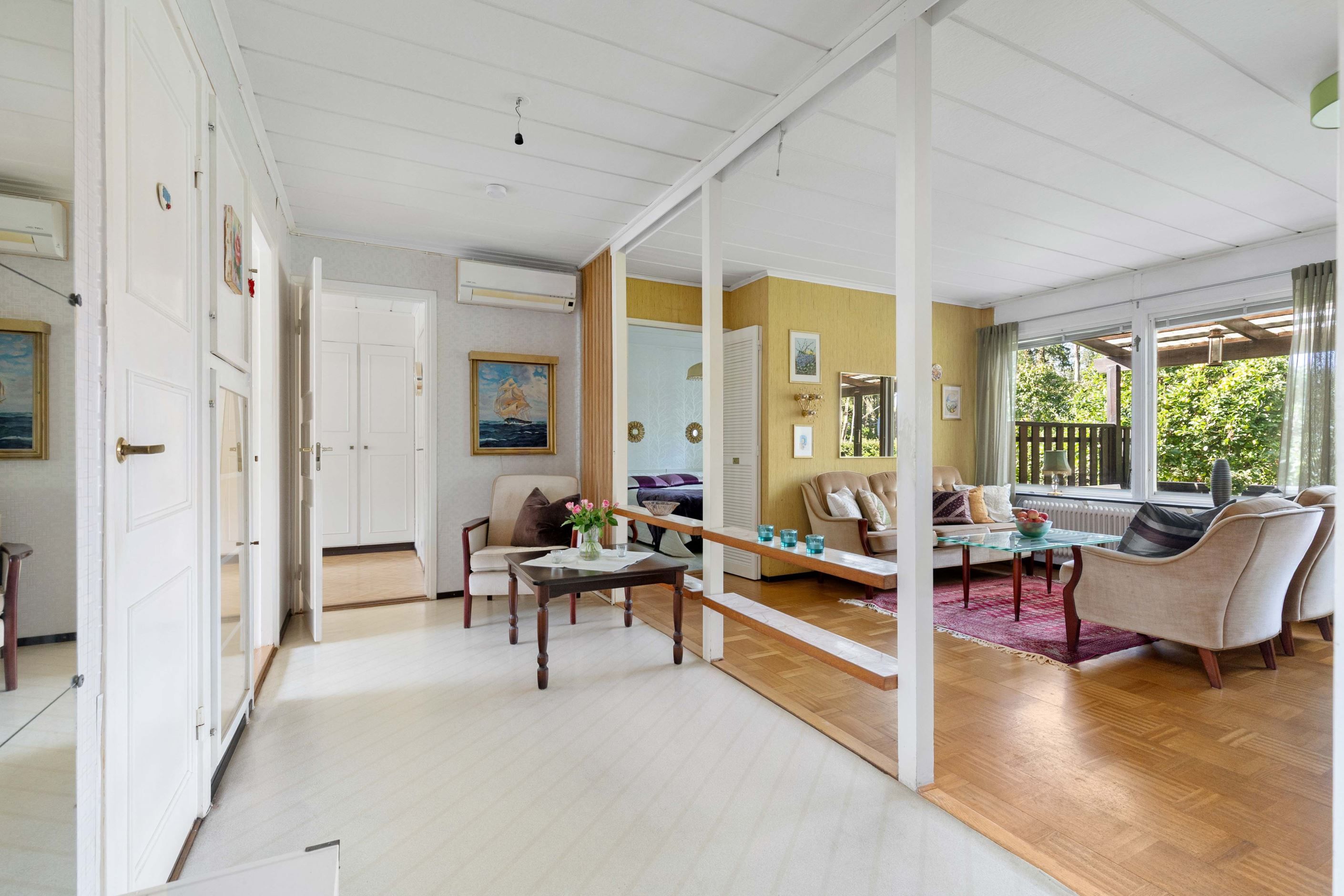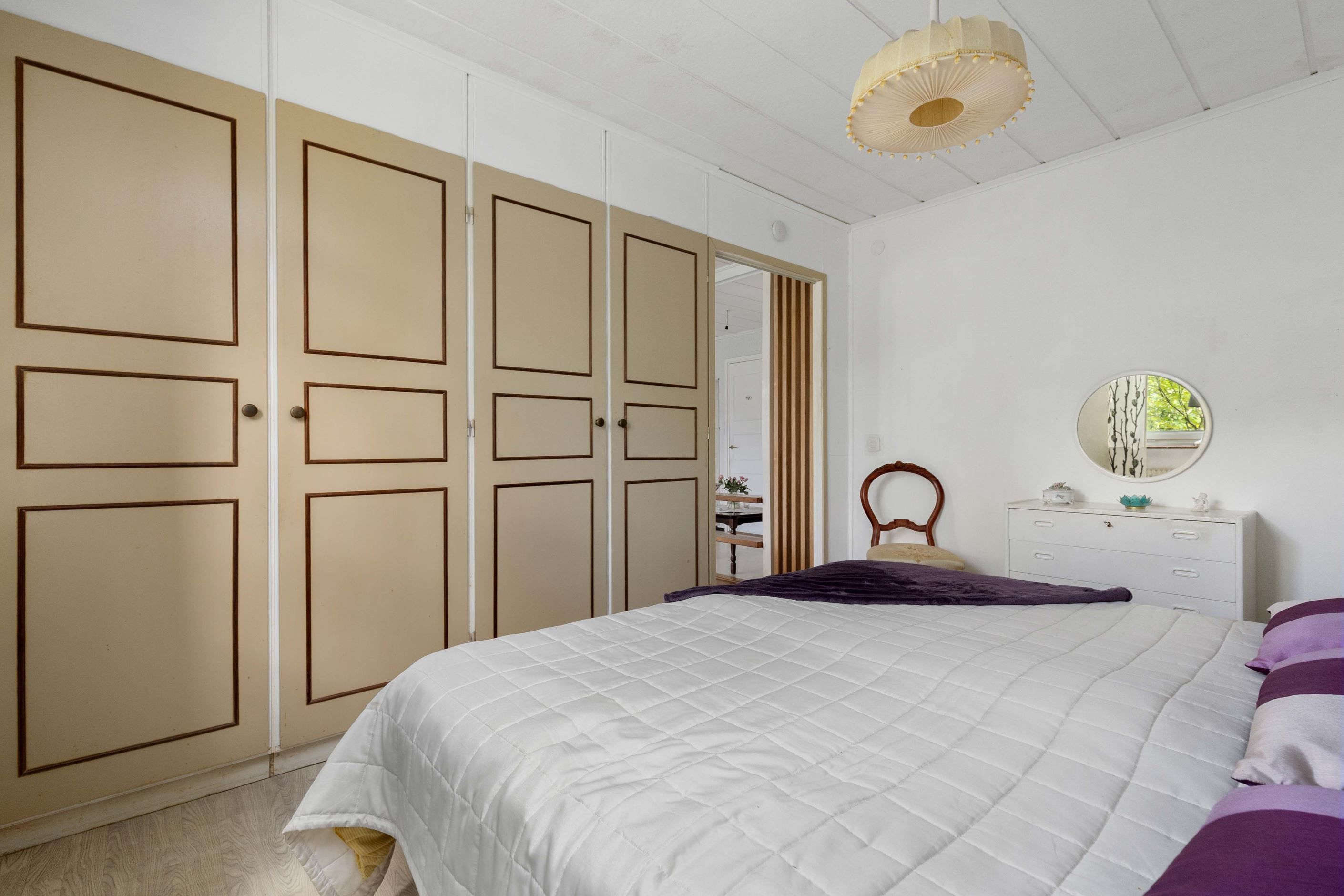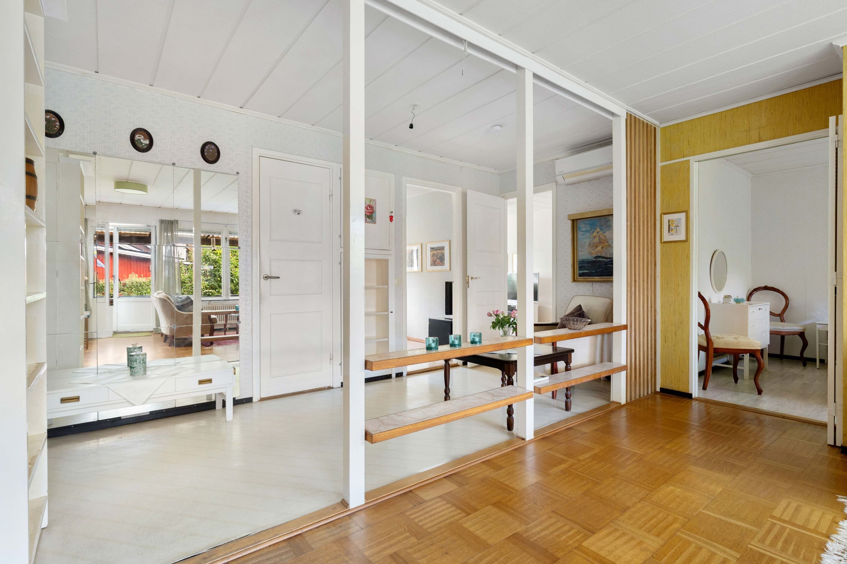 Vidare finns två sovrum i bra storlek. Badrummet har äldre standard men en praktisk disposition. Allt är smidigt samlat på ett plan – lättillgängligt och bekvämt för både små och stora familjer.