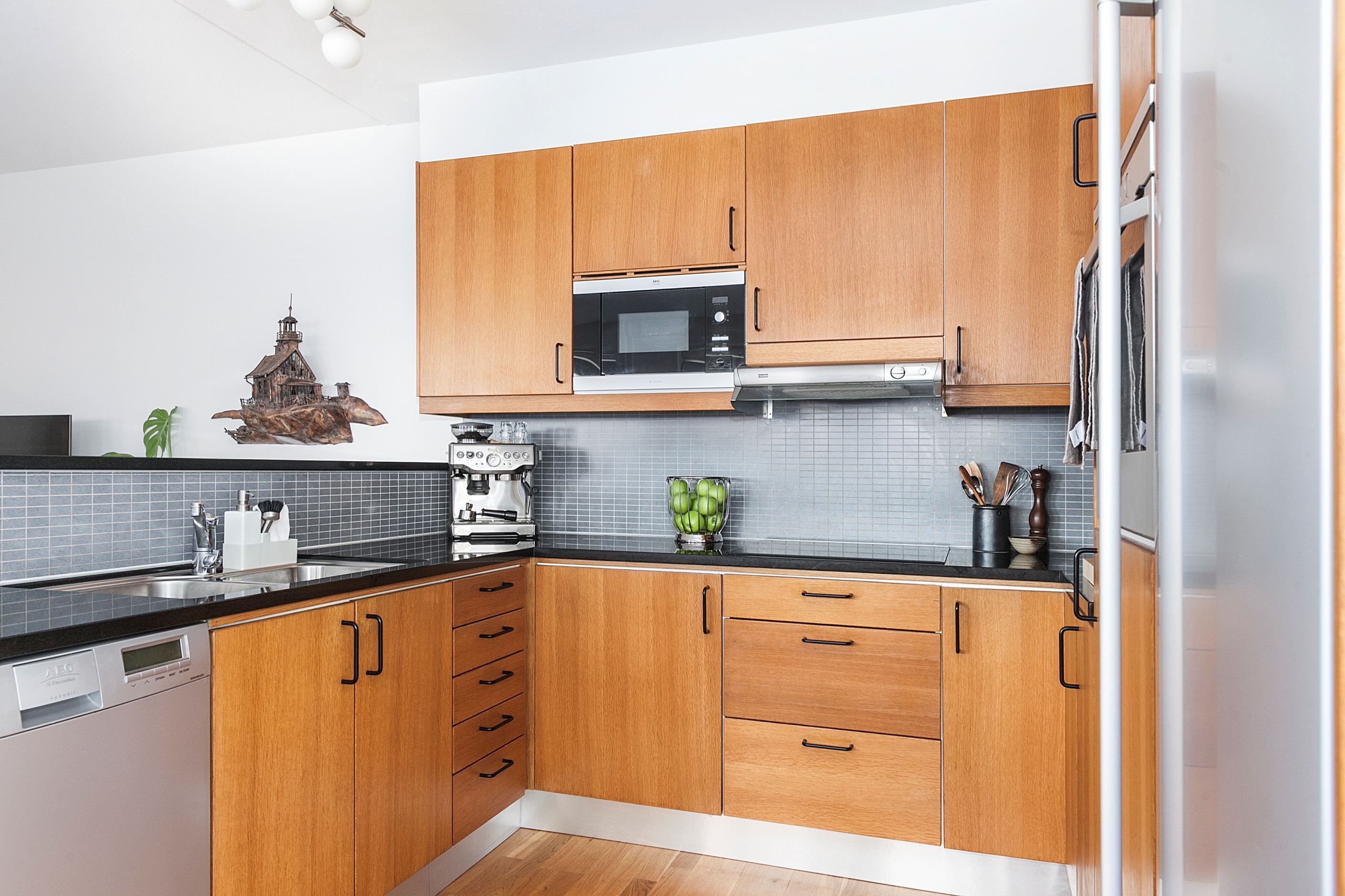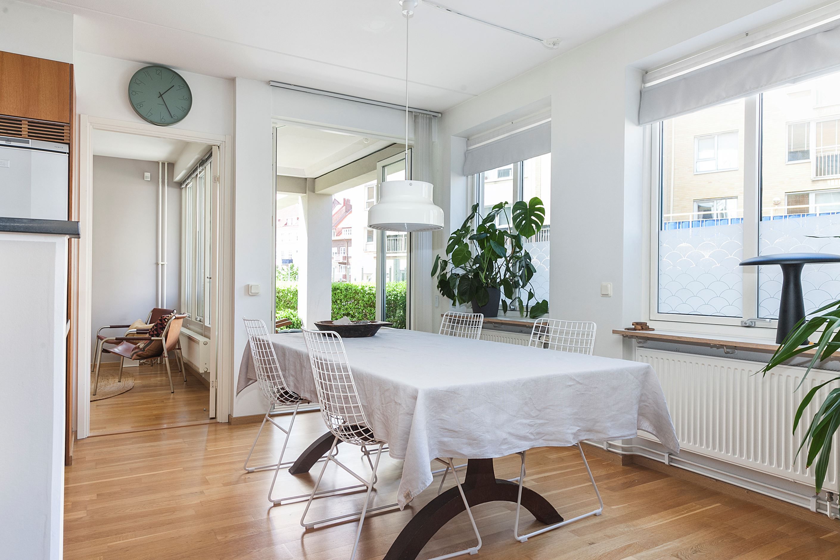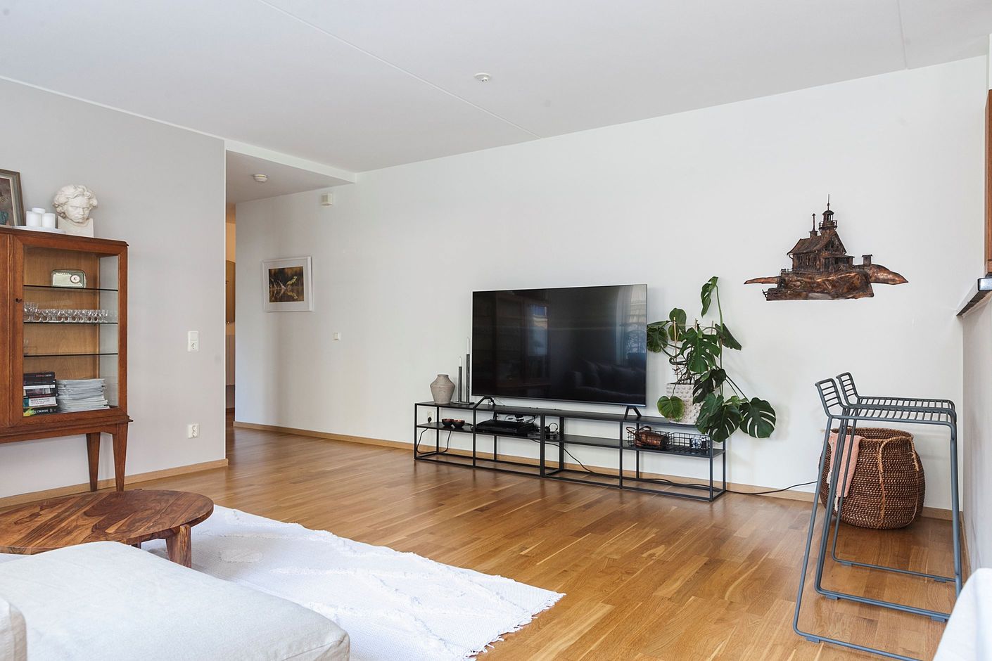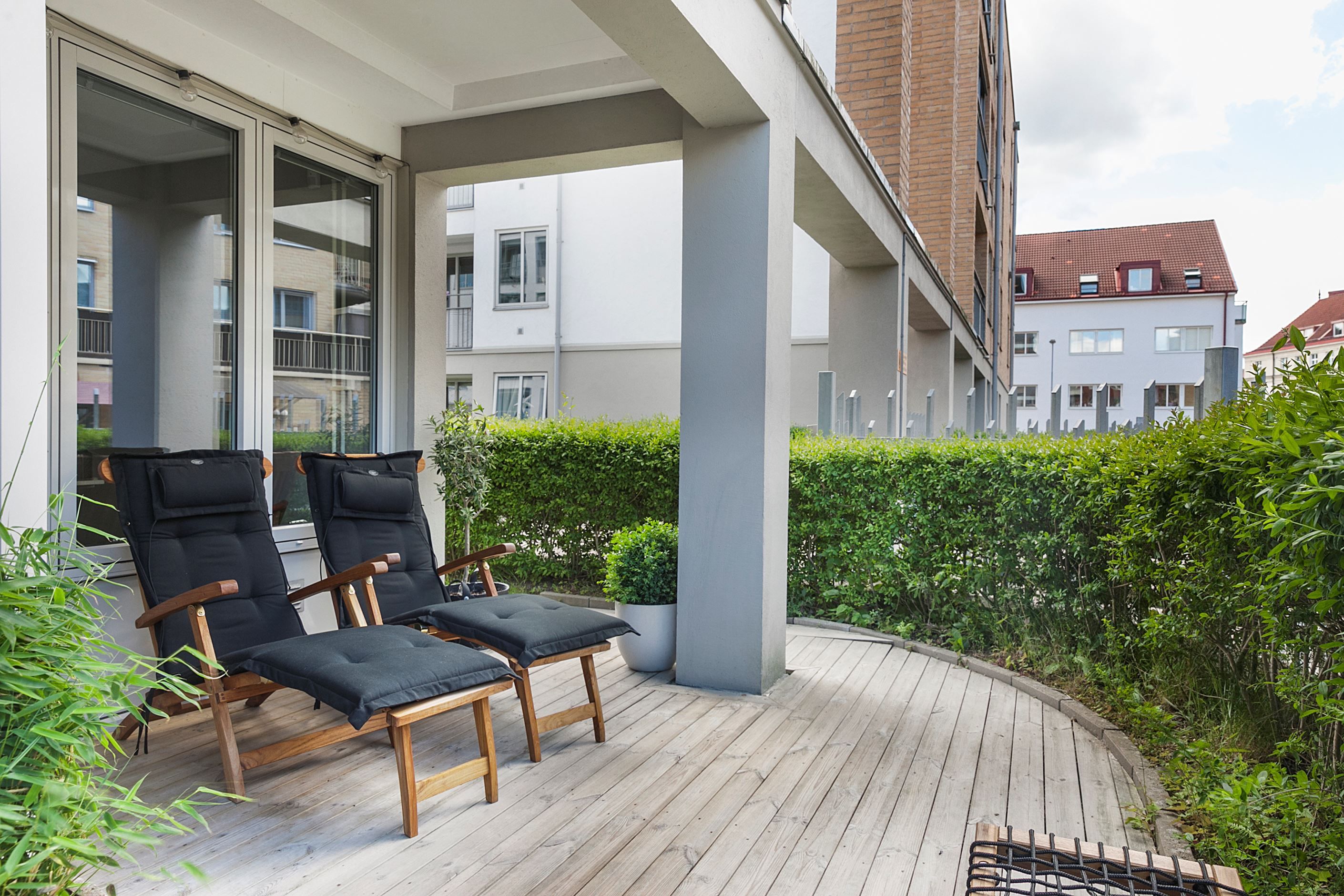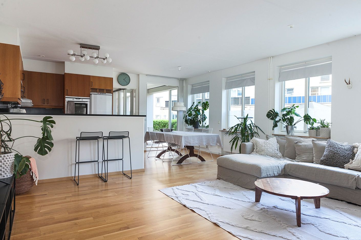 Två ljusa sovrum, ett luftigt vardagsrum öppet mot det härliga köket med bland annat en påkostad bänkskiva i granit, samt egen rymlig uteplats. Bostaden har allt man kan tänka sig och lite till.