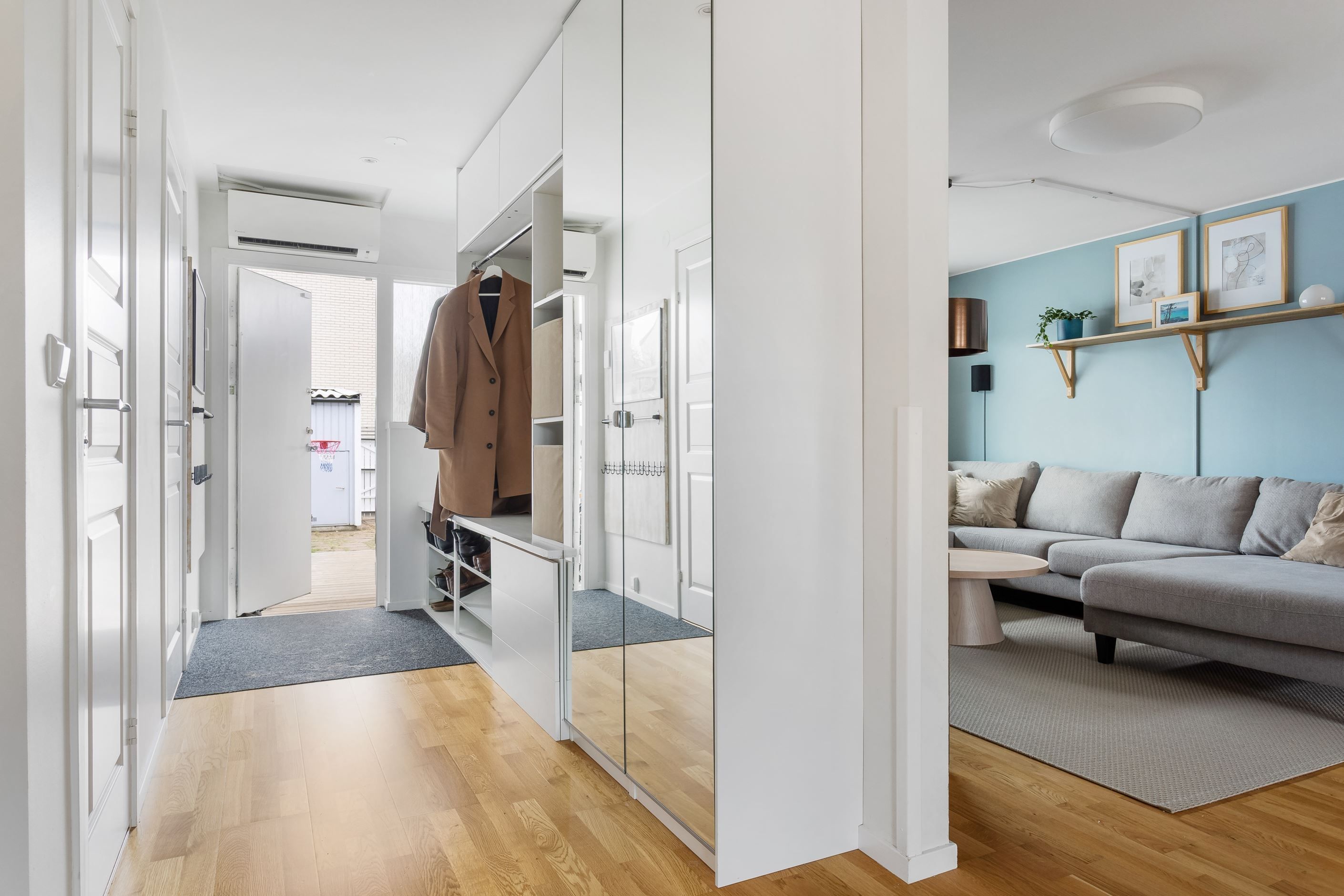 På entréplanet finns dessutom en helt nyrenoverad wc samt en extra uteplats i soligt läge, bekvämt belägen direkt utanför hallen.