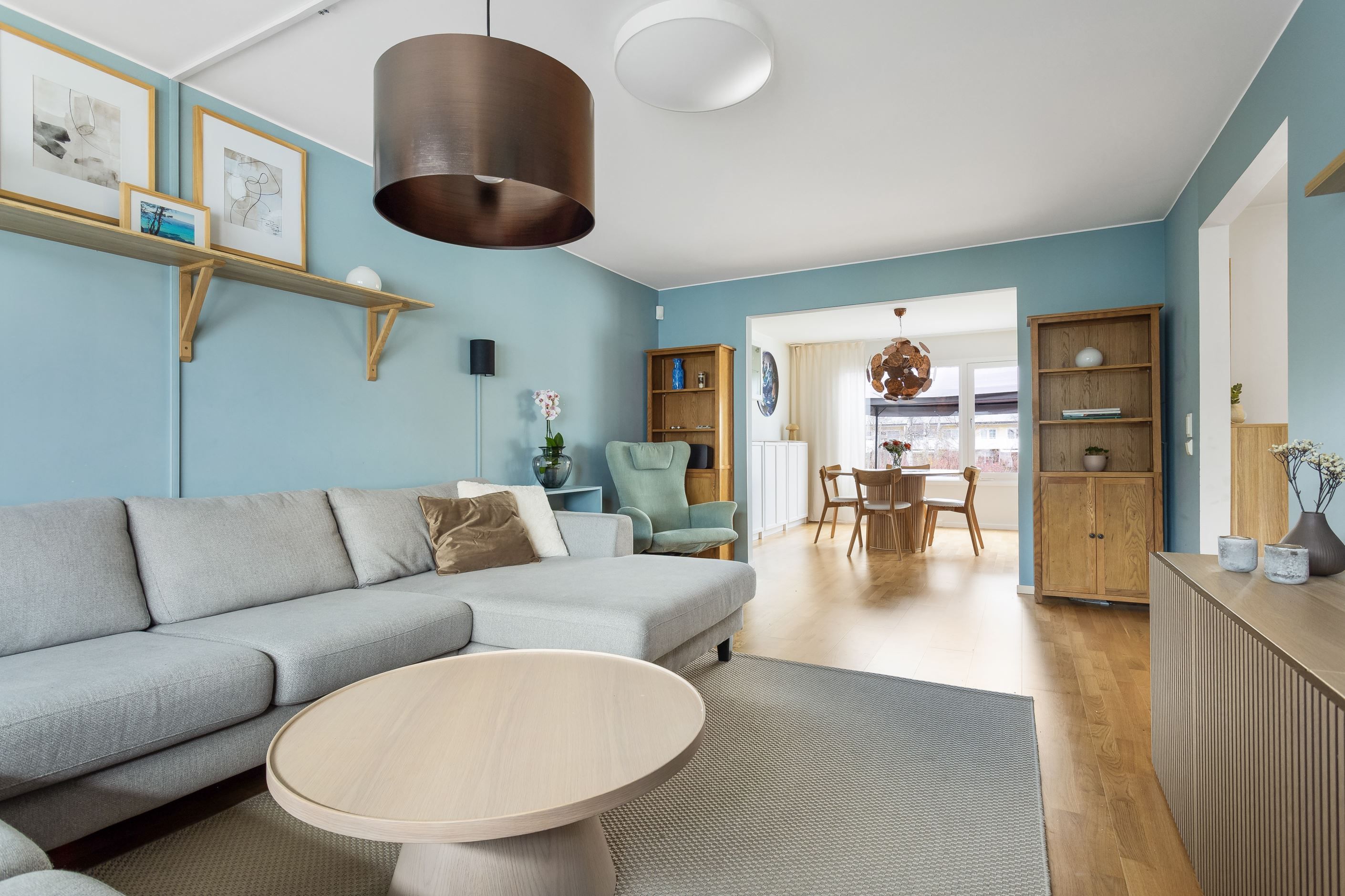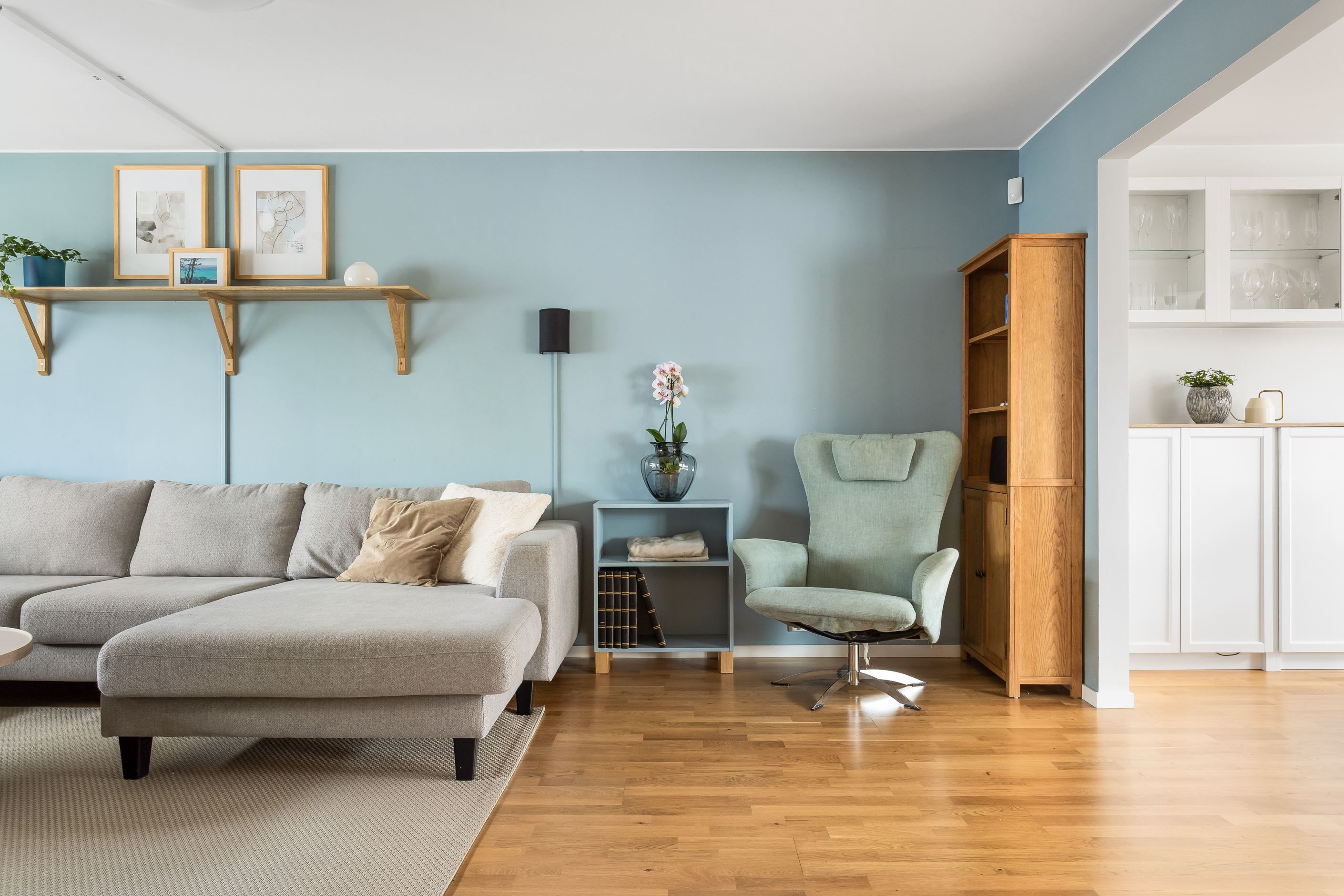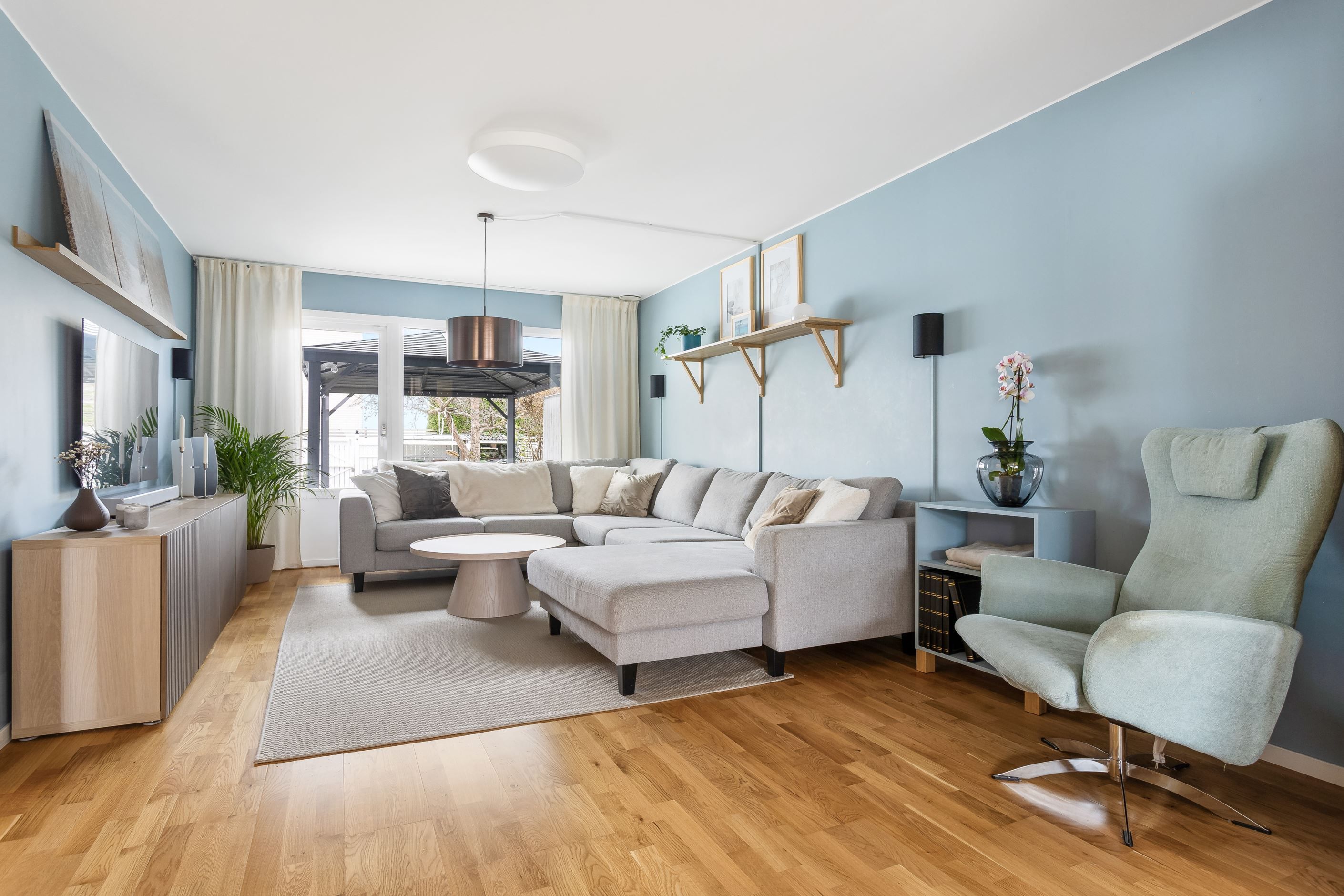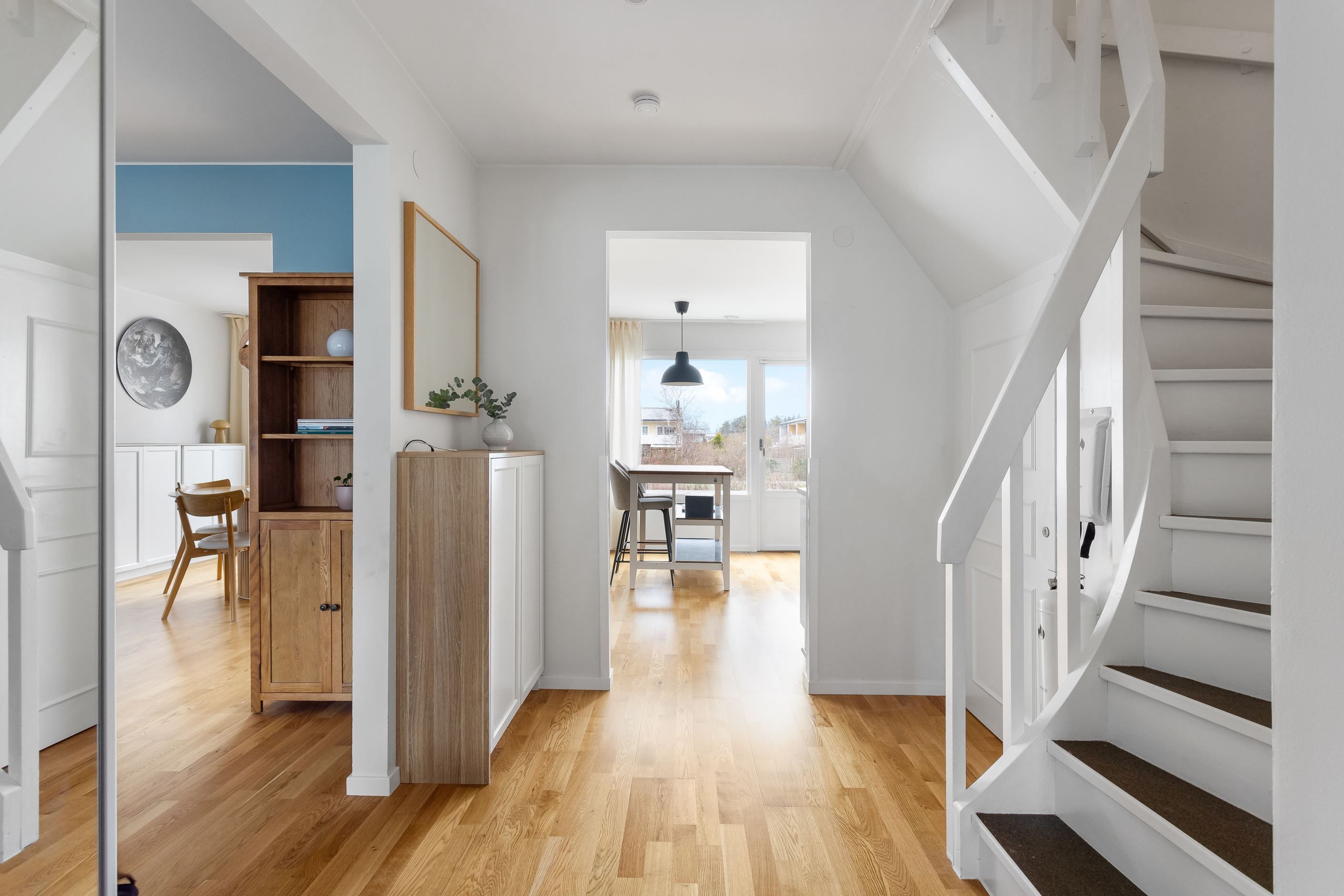 På entréplan möts du av goda sociala sällskapsytor där kök, matplats och vardagsrum samspelar i en öppen planlösning. Här släpper även de stora fönsterpartierna in ett härligt ljus, som ger hemmet en varm och trivsam känsla.