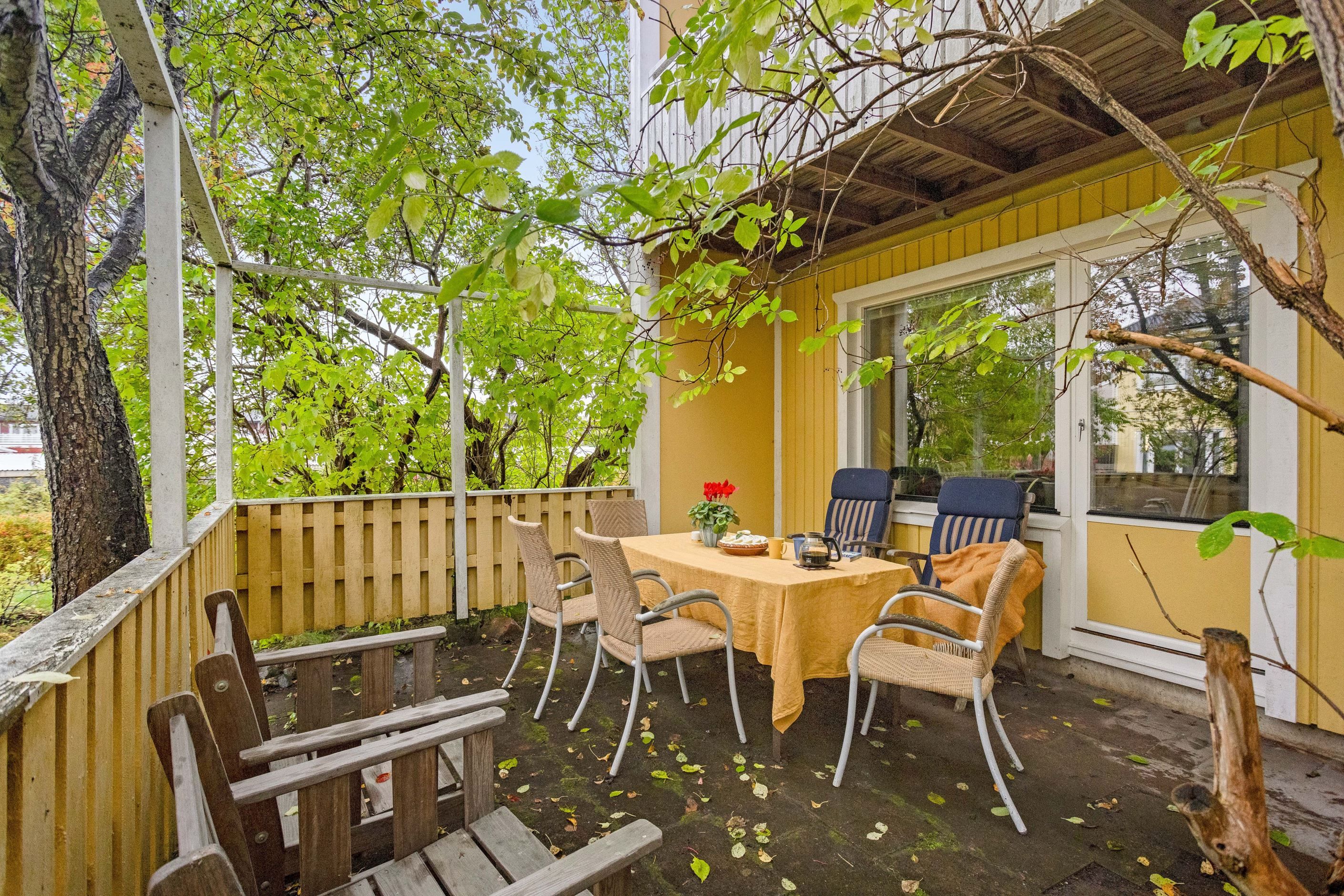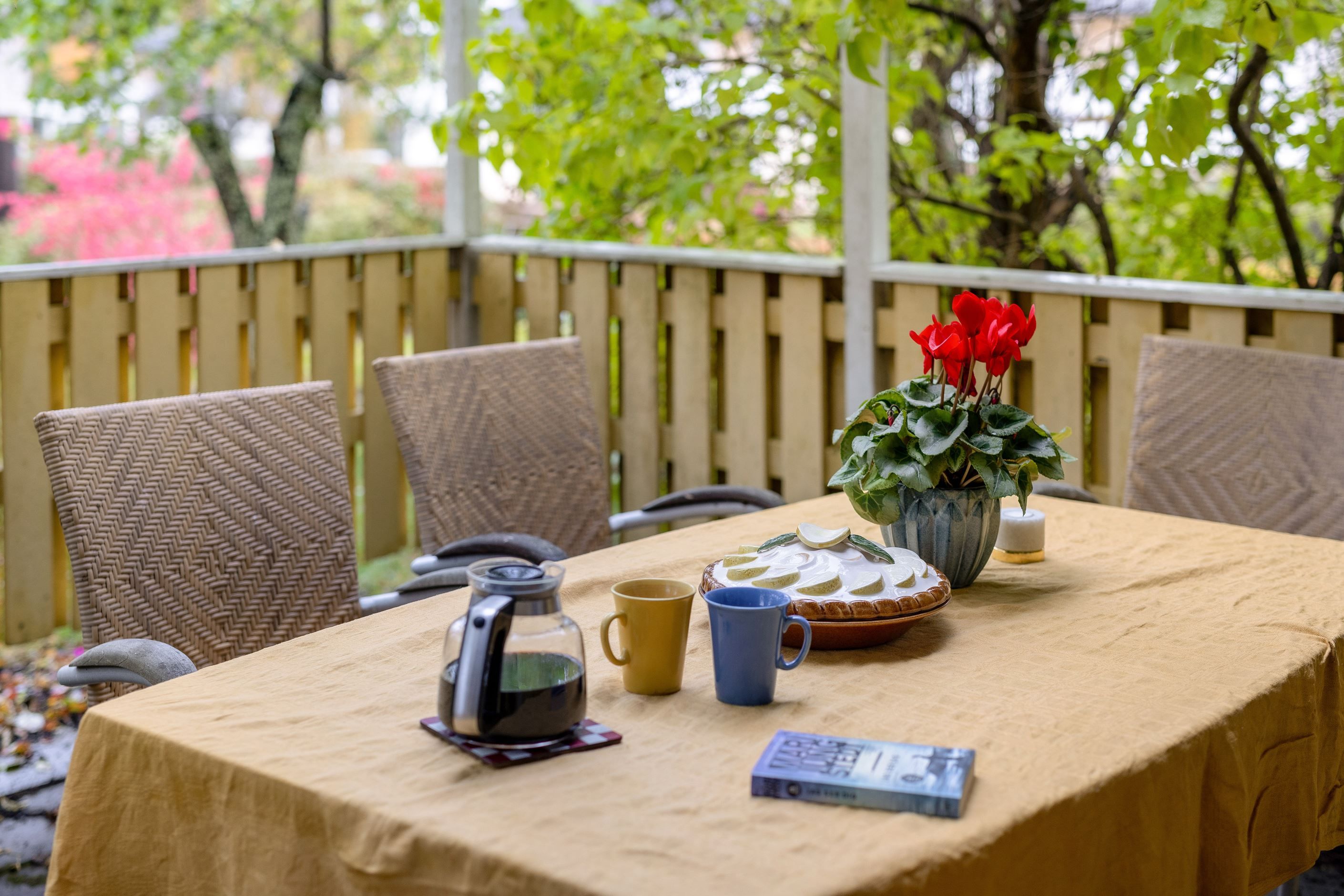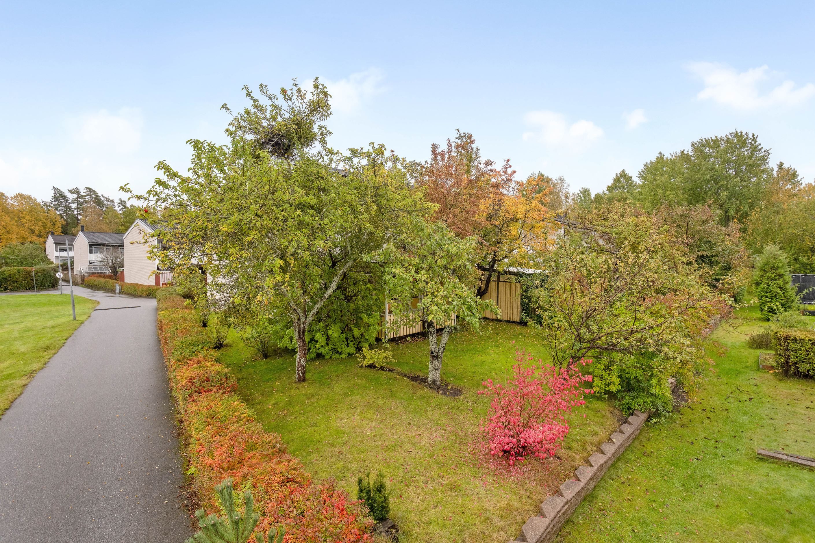 Utomhus väntar en trivsam och lättskött trädgårdstomt i sydvästläge som omgärdar huset tack vare det fina gavelläget. Här kan familjen njuta av soliga dagar, lek och avkoppling. På framsidan finns dessutom ett praktiskt förråd med gott om plats för cyklar, redskap och säsongsförvaring.