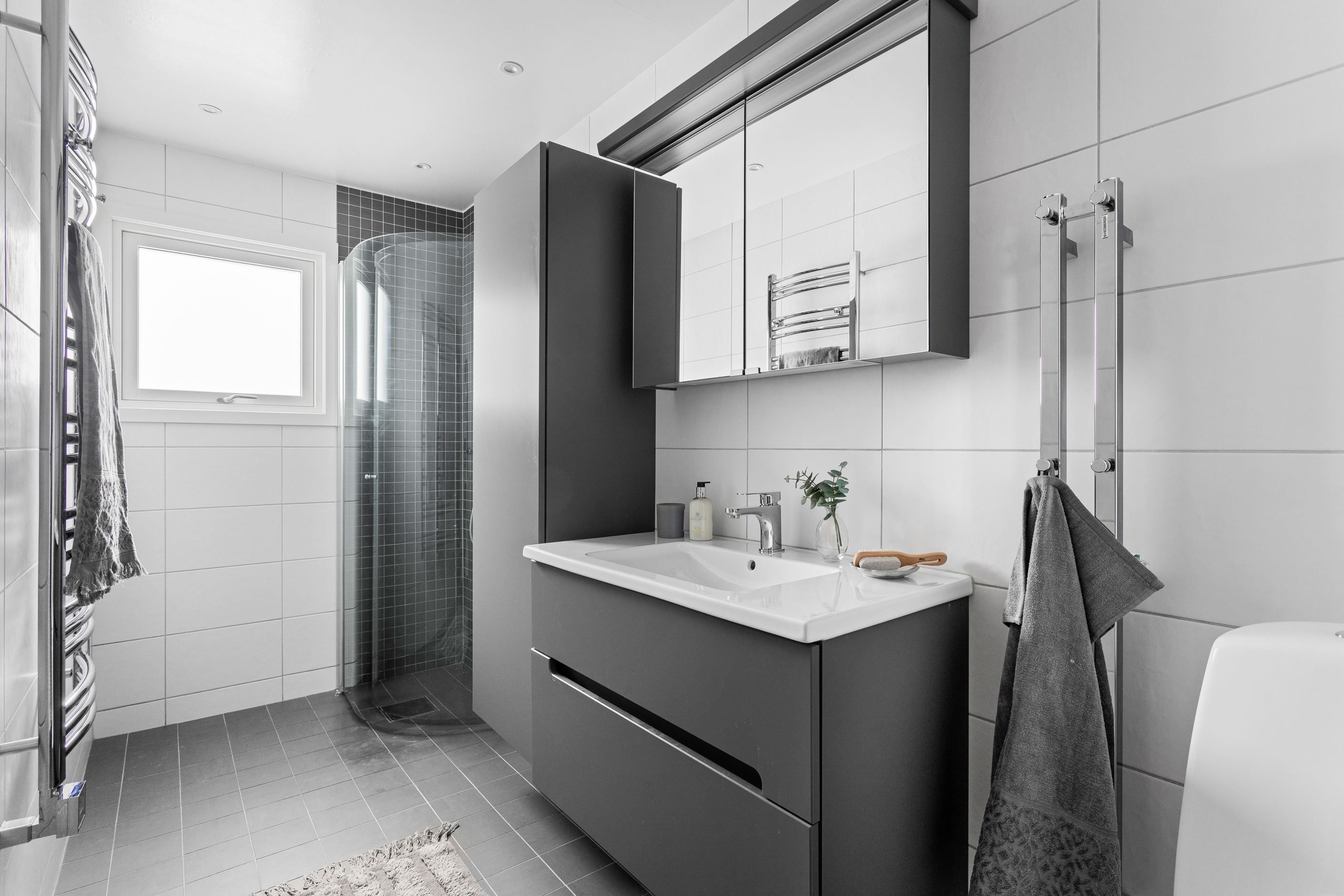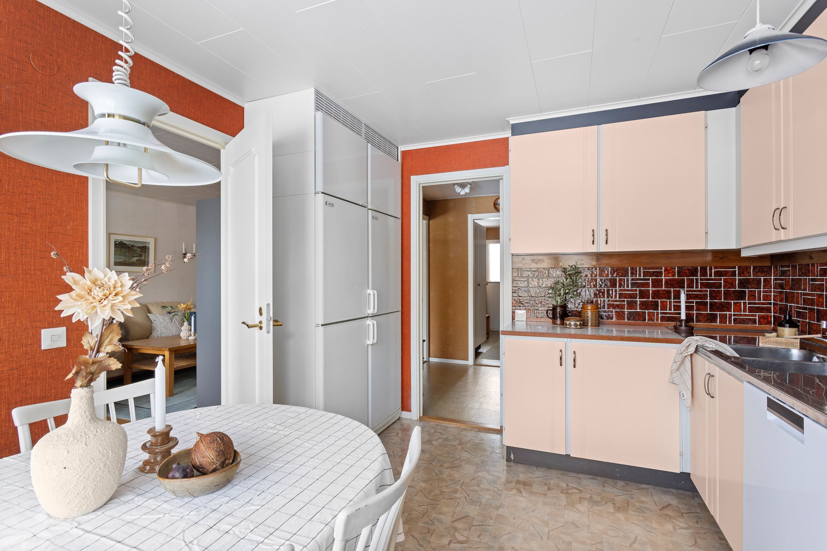 Huset erbjuder en funktionell hall med god förvaring och smakfullt renoverad tvättstuga med central dammsugare samt en modern gäst-wc bredvid. Vidare in i huset ligger ett kök i vinkel med matplats för ca 4- 6 personer som med fördel kan öppnas upp mot vardagsrummet för att skapa en större öppnare yta. Från köket nås den soliga trädgården i gavelläge – en härlig uteplats i väster med plats för både lek, odling och grillkvällar.