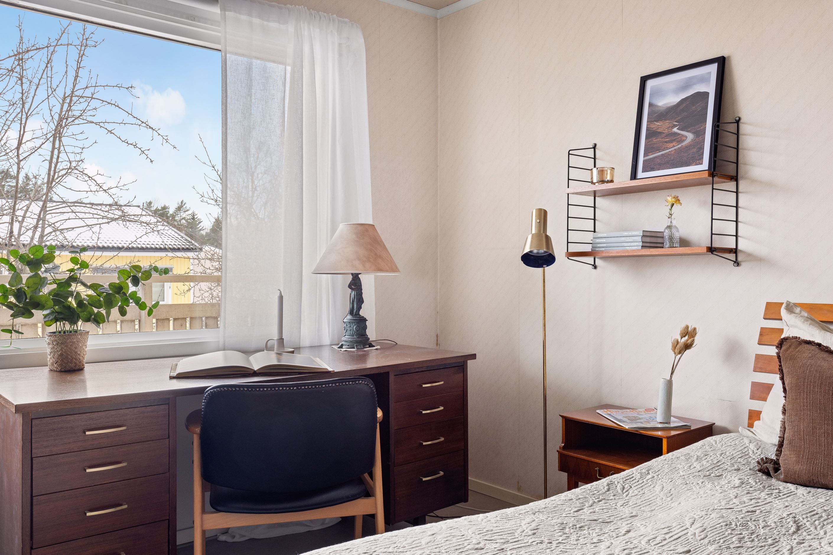 På övre plan finner ni tre rymliga sovrum och ett modernt renoverat badrum med dusch. På samma våningsplan finns det även två klädkammare som erbjuder gott om förvaringsmöjligheter. Båda klädkammare går att nyttjas som kontorsrum eller hobbyrum om så önskas.