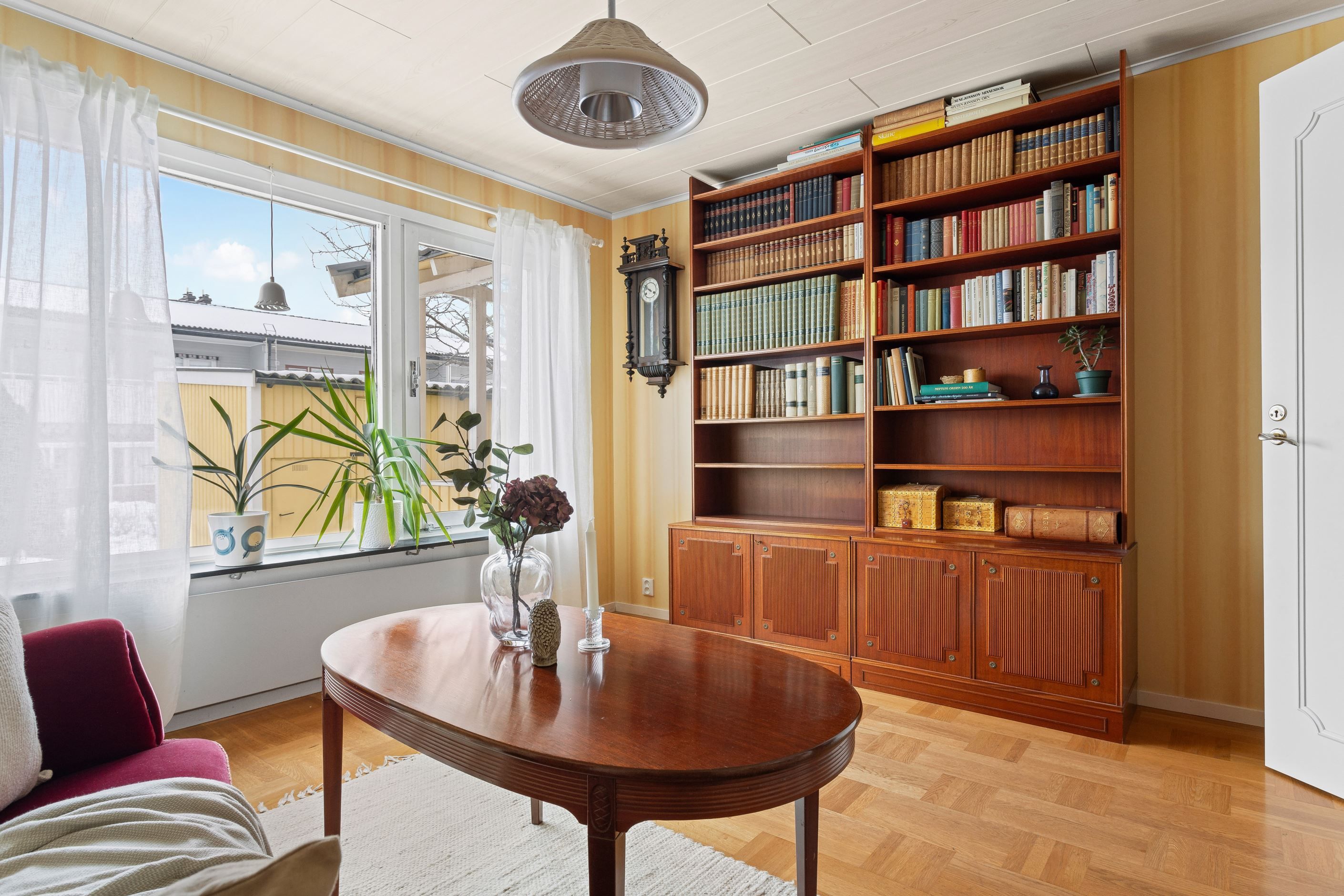 På entréplanet finns även ett rymligt vardagsrum med generösa fönsterpartier som släpper in rikligt med ljus. I anslutning till vardagsrummet finns ett extra rum som passar utmärkt som kontor, gästrum eller tv-rum.