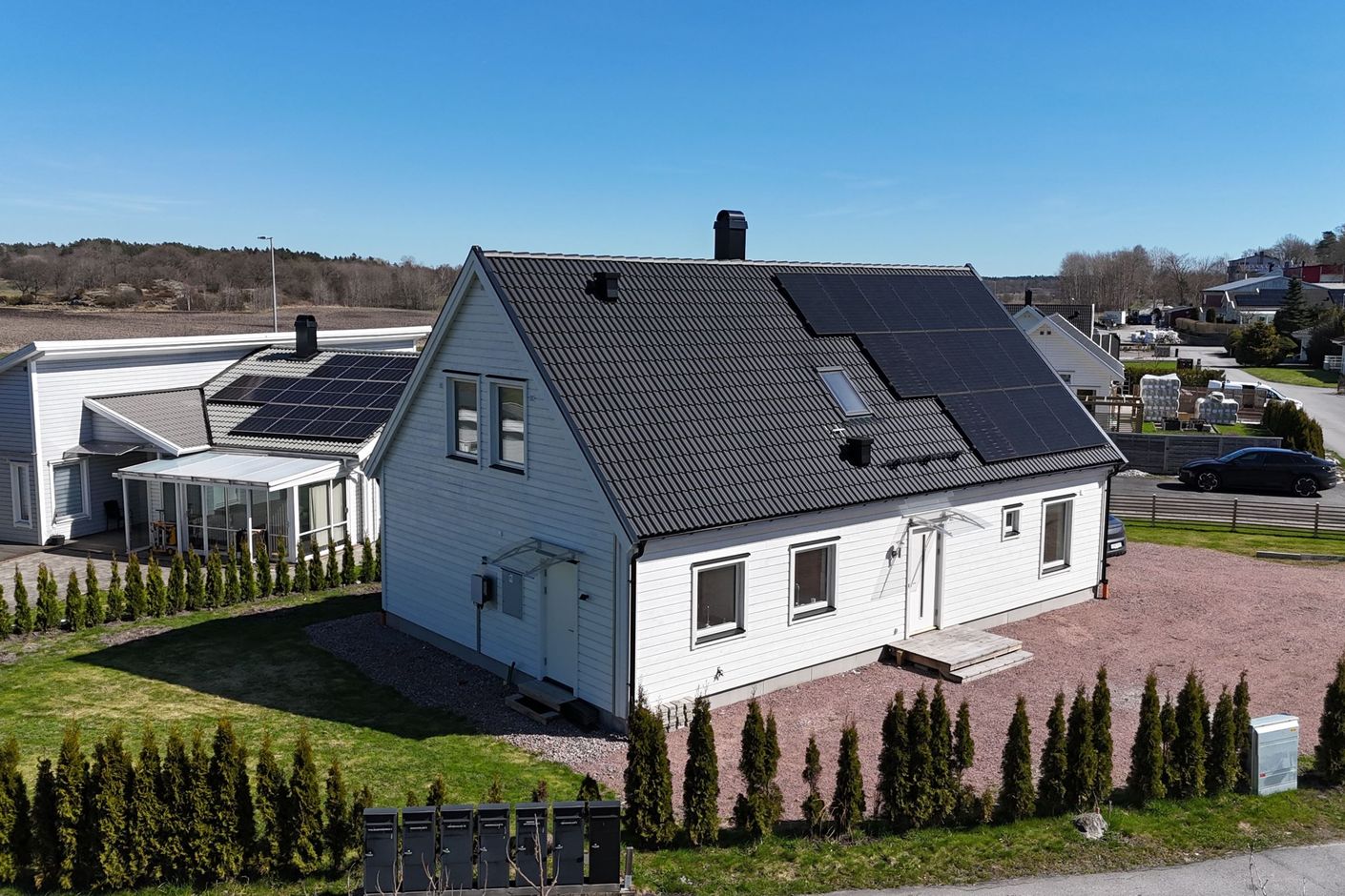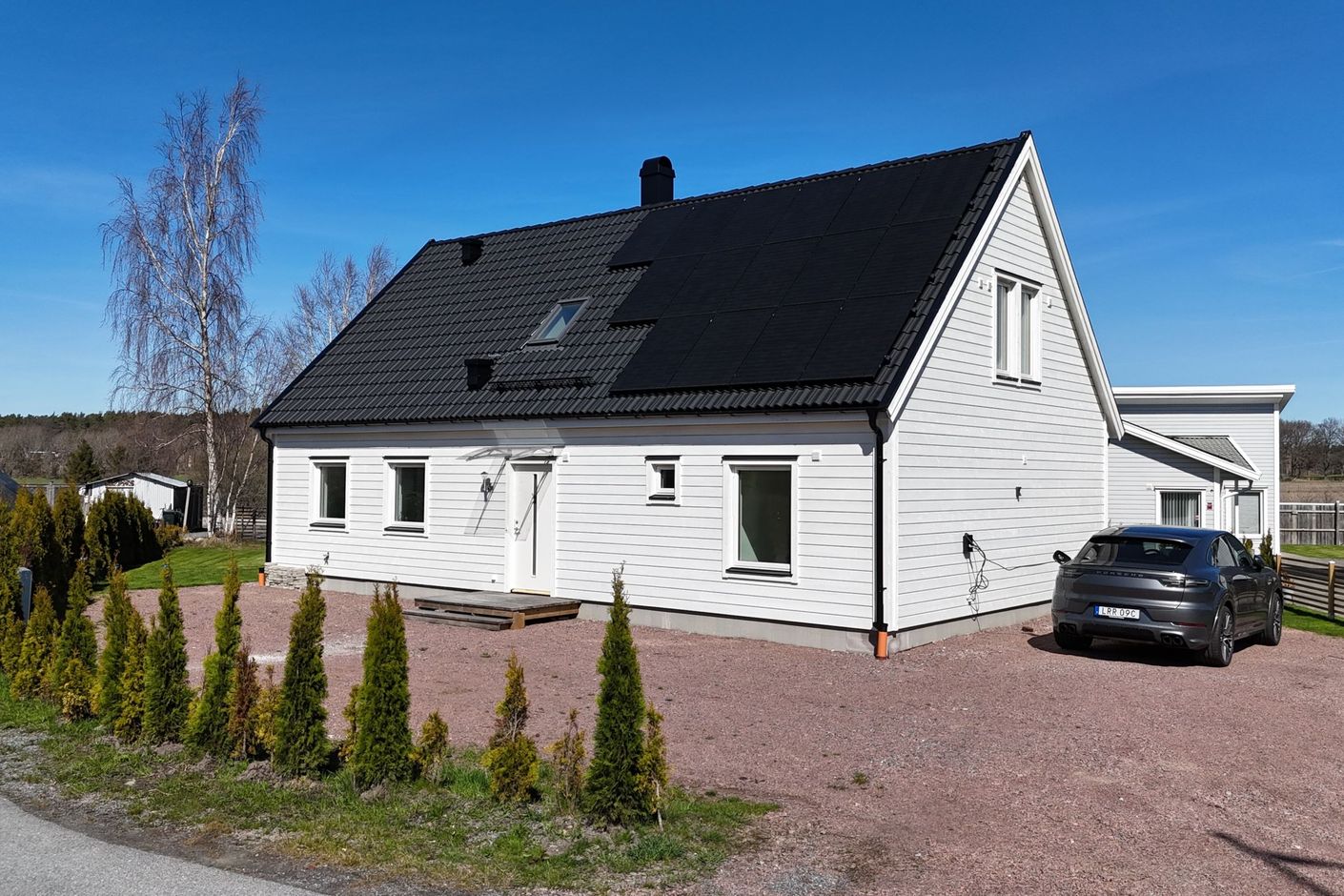 Här bor du i ett helt nybyggt hem där du får möjligheten att bli första ägare. Tomten är plan och lättskött med uppfart som rymmer flera bilar. Dessutom finns både elbilsladdare och solceller installerade – ett hållbart och framtidssäkrat boende.