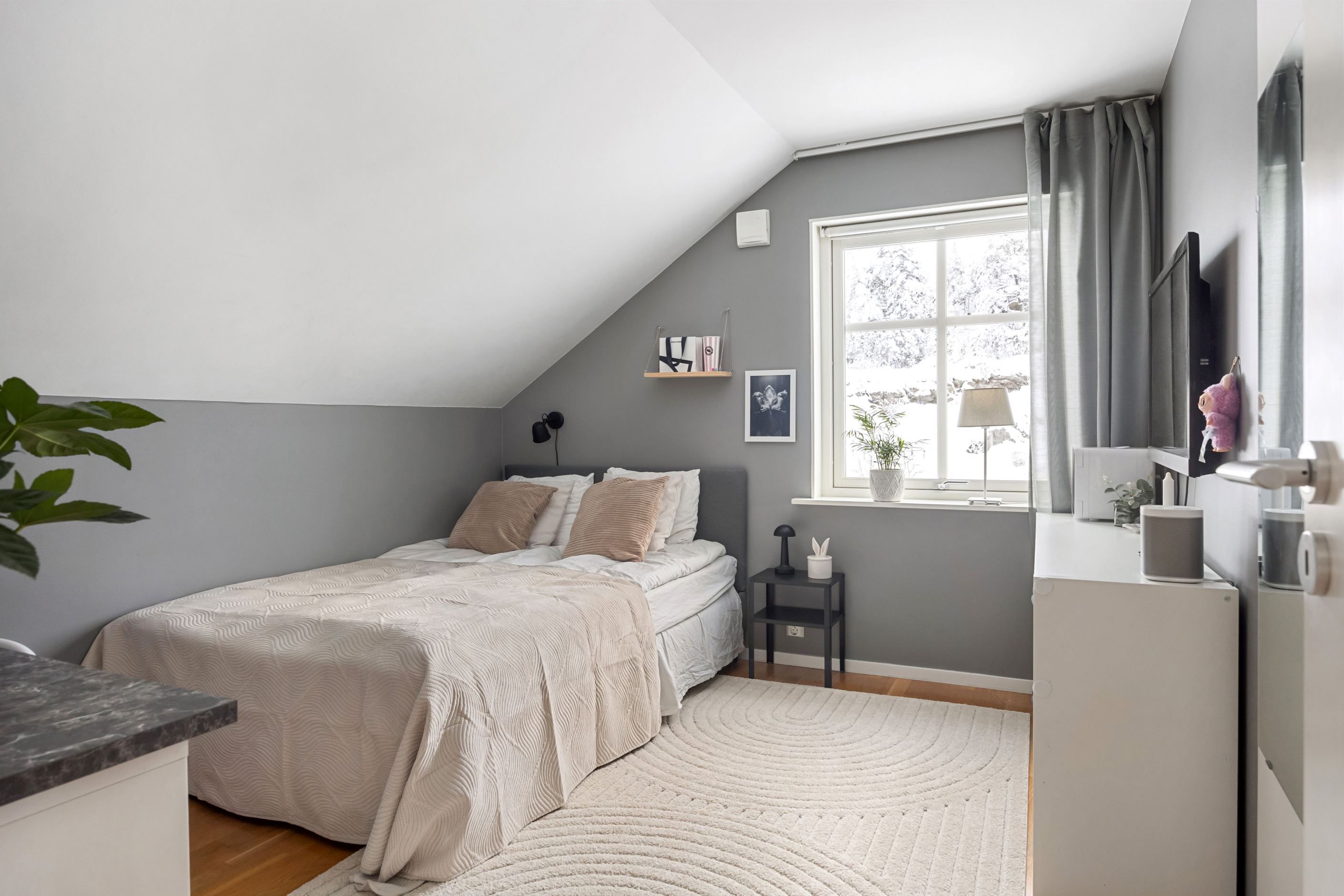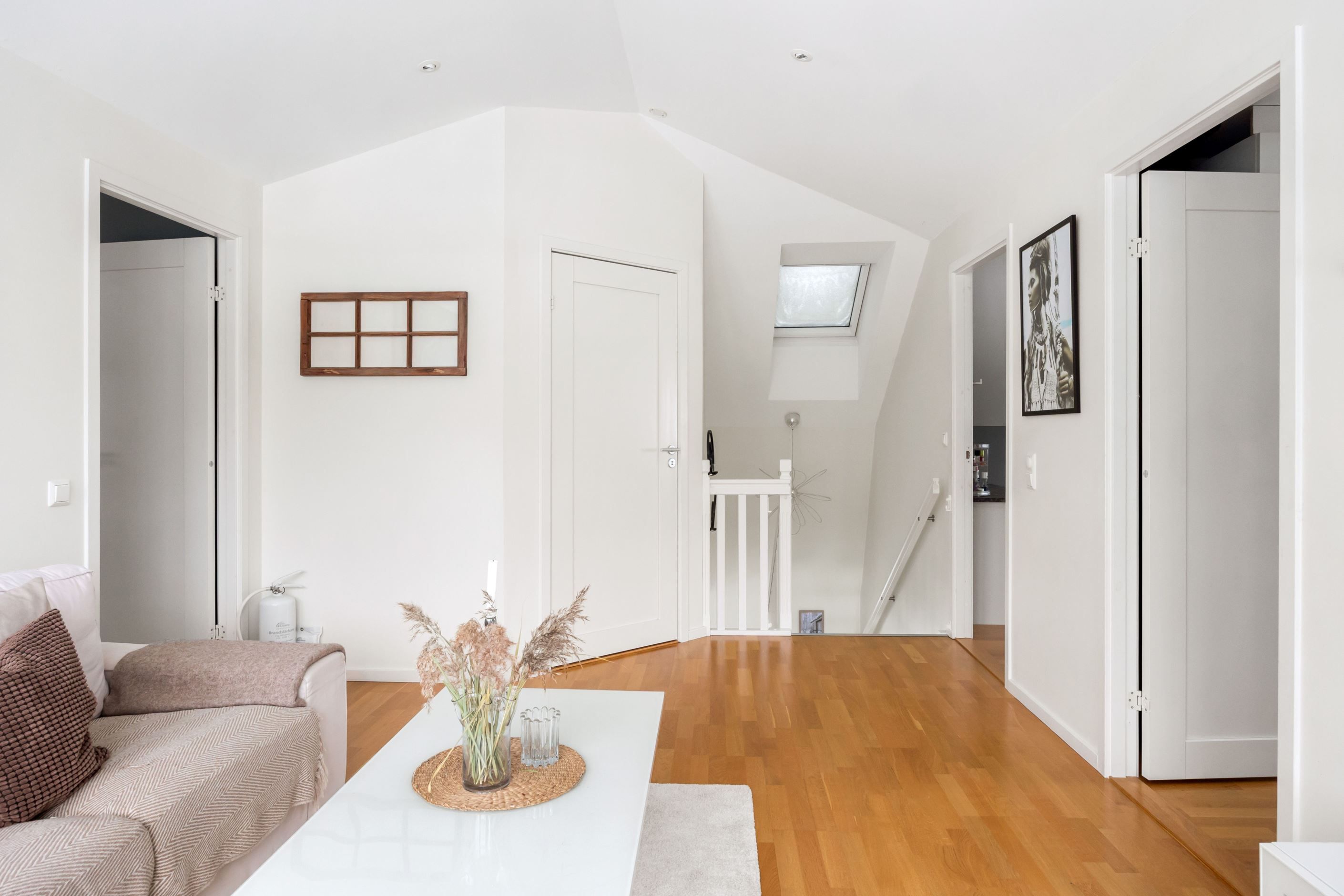 Övervåningen erbjuder tre rogivande sovrum med goda förvaringsmöjligheter. Master bedroom utmärker sig med en rymlig walk-in closet som erbjuder en praktisk och lyxig lösning för klädförvaring. Vidare finns ett allrum som passar utmärkt som tv-hörna, lekyta eller extra arbetsplats, med utgång till en trevlig balkong. På våningsplanet finns även ett rymligt badrum med dusch och badkar.