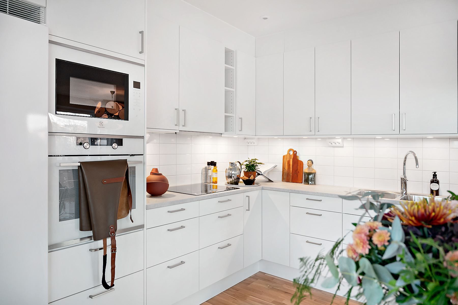 När du köper en nybyggd bostad av oss på Peab får du vara med och sätta stilen i ditt nya hem. Det är en lyxig känsla att flytta in i en nybyggd bostad. Allt är orört och alla bekvämligheter finns på plats. Interiören skapar den hemtrevliga känslan man vill ha i sitt drömhem. För att hjälpa dig att hålla den röda tråden i bostaden har vi valt produkter som passar ihop utseende- och designmässigt. Vi har lagt stor omsorg på fina materialval. I standardutförandet är inredningen klassiskt vit med ekparkett på golven. I köket finns moderna vitvaror på plats. Utöver detta har vi tagit fram ett tillvalsprogram där du bland annat kan uppgradera dina vitvaror, byta köksluckor, bänkskivor och välja bland olika färger på kakel och klinkers.