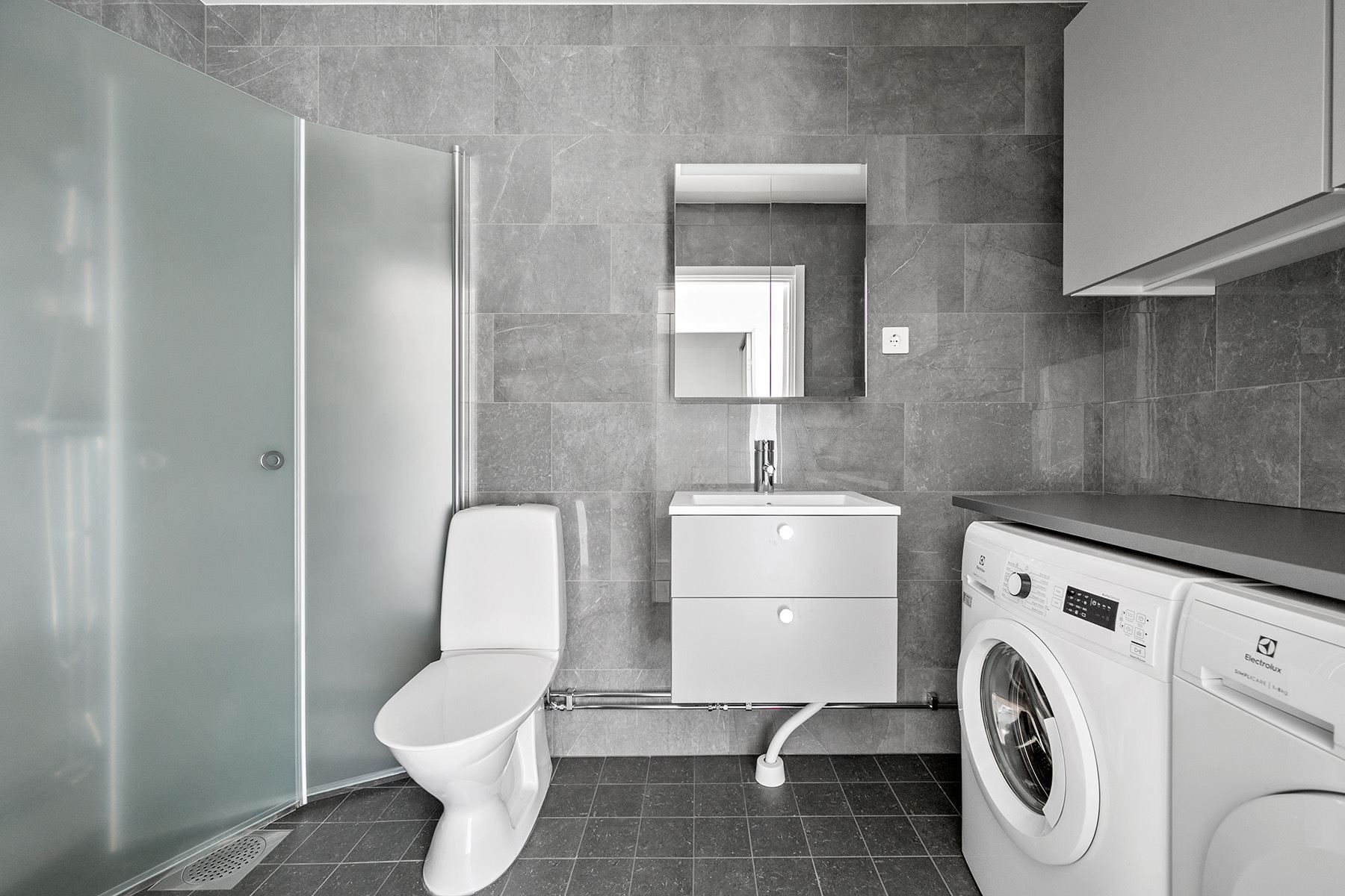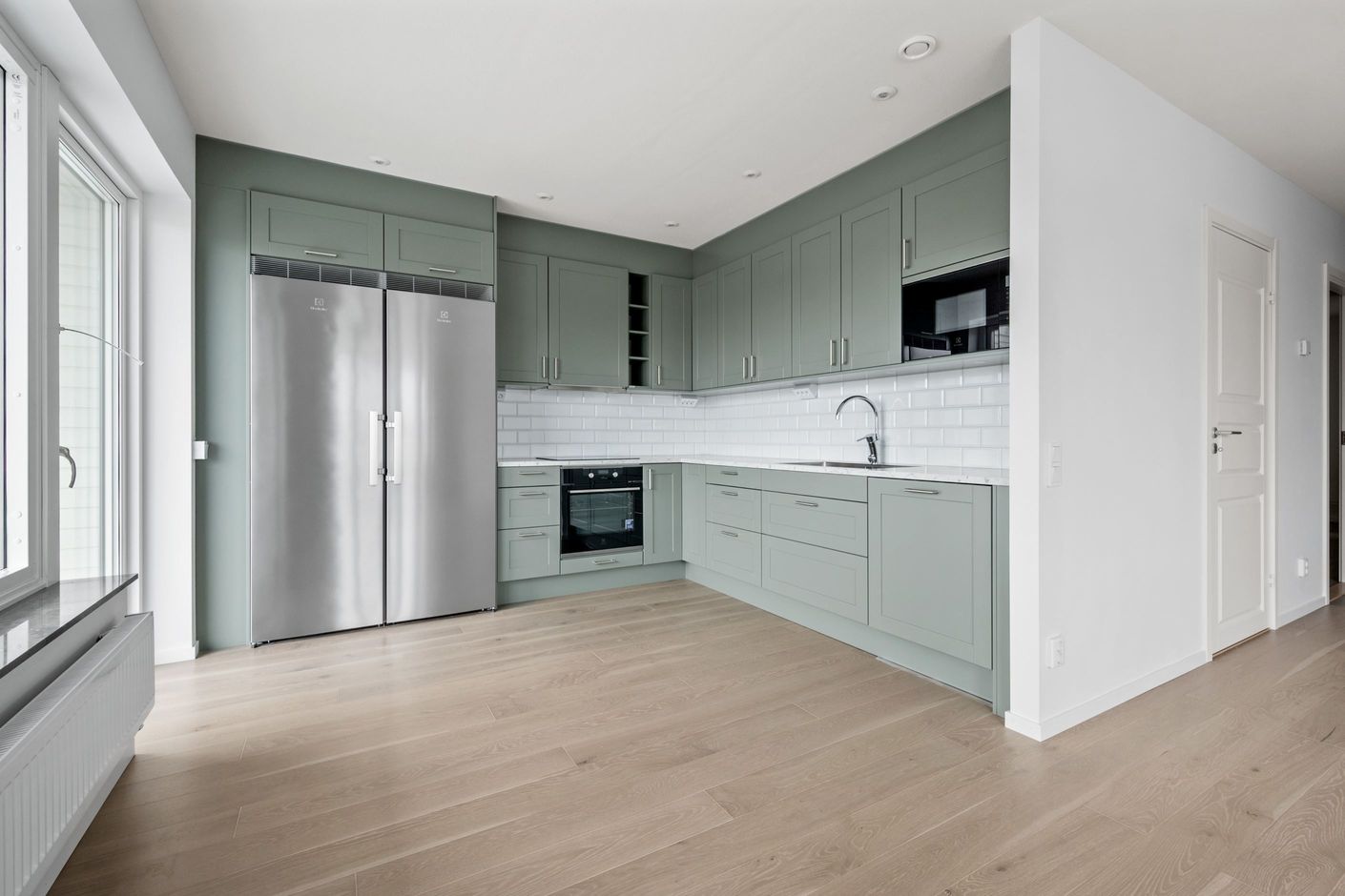 Det är en lyxig känsla att flytta in i en nybyggd bostad. Allt är orört och alla bekvämligheter finns på plats. Interiören skapar den hemtrevliga känslan man vill ha i sitt drömhem. För att hjälpa dig att hålla den röda tråden i bostaden har vi valt produkter som passar ihop utseende- och designmässigt. Vi har lagt stor omsorg på fina materialval. I standardutförandet är inredningen klassiskt vit med ekparkett på golven. I köket finns moderna vitvaror på plats.