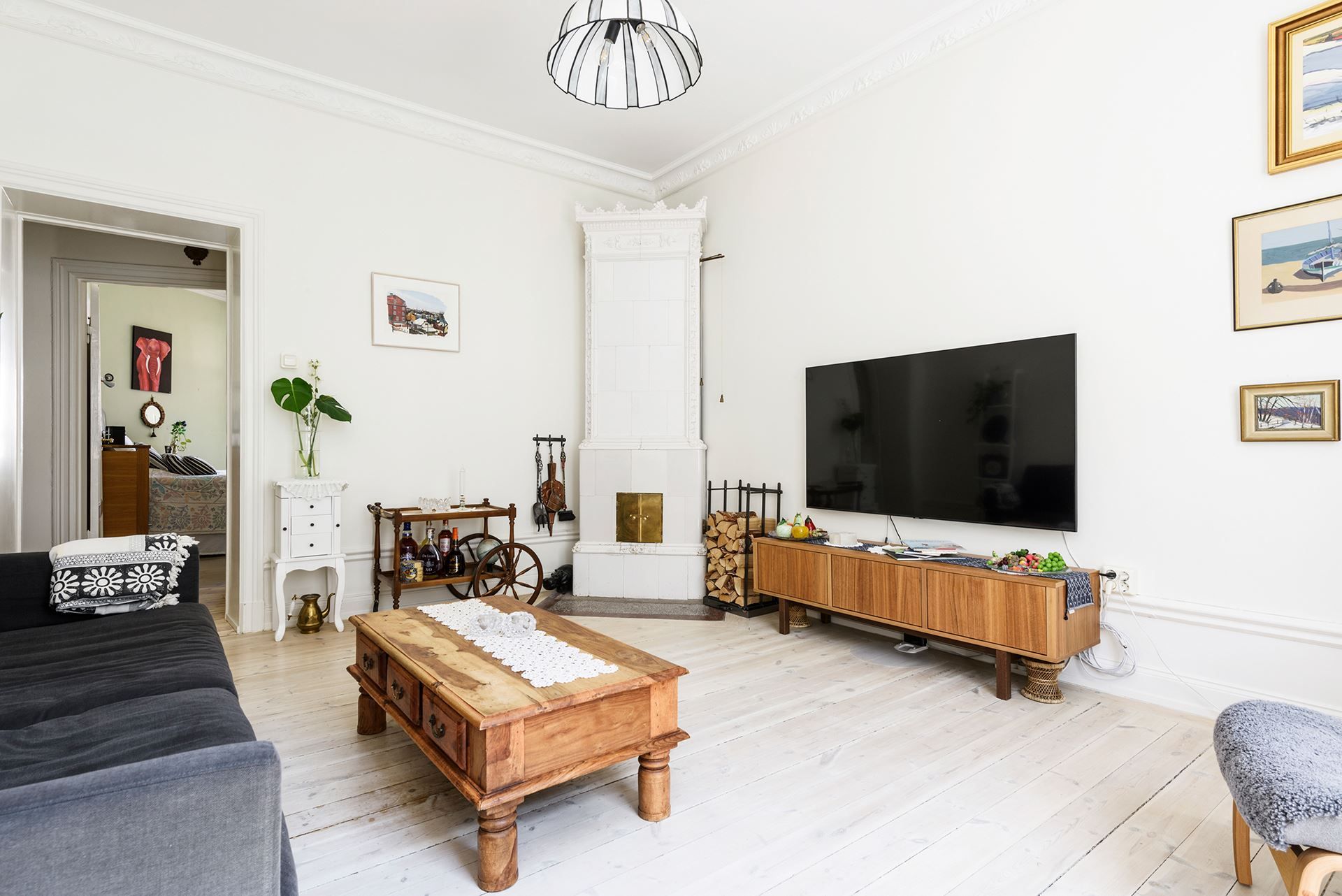 Nu finns tillfälle att förvärva denna trevliga sekelskiftestvåa med balkong på toppadress. Ett fantastiskt hem med härliga sällskapsytor som bjuder in till umgänge, trivsamt kök med matplats och ett stort sovrum beläget mot den tysta gården. I denna bostad får ni alla de tidstypiska detaljerna från sekelskiftet som ni kan önska er i form av fungerande kakelugn, gedigna trägolv, generös takhöjd över 3 meter med stuckatur samt stora fönsterpartier med djupa och speglade nischer. Balkongen ligger med utgång från köket och erbjuder härlig förmiddagssol. Lägenheten har också ett nyrenoverat duschrum samt en klädkammare med tvättmaskin.
