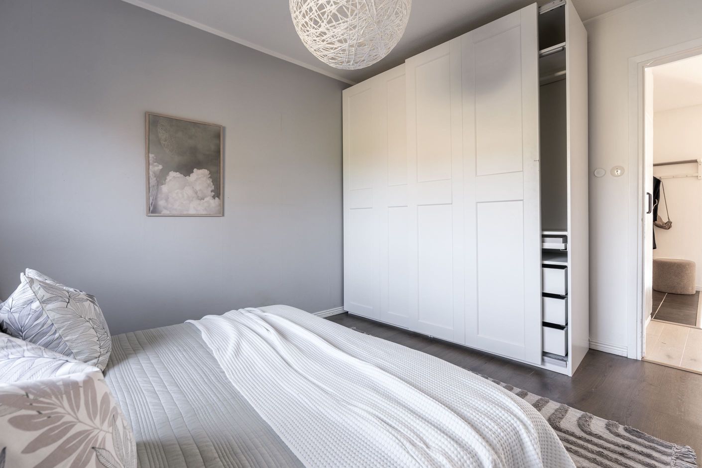 Förvaringsmöjligheterna är utmärkta med klädkammare i hallen samt med ett rymligt källarförråd. Vilket gör det enkelt att hålla ordning och reda.