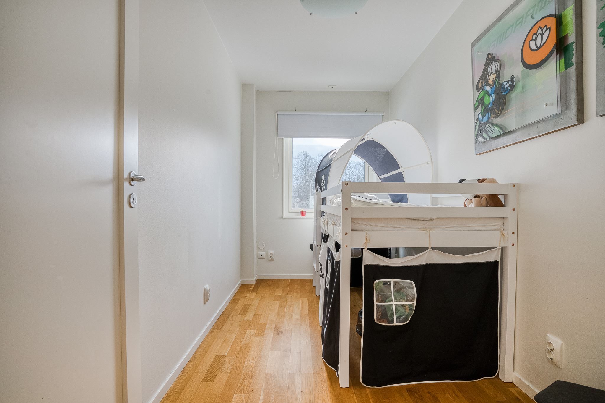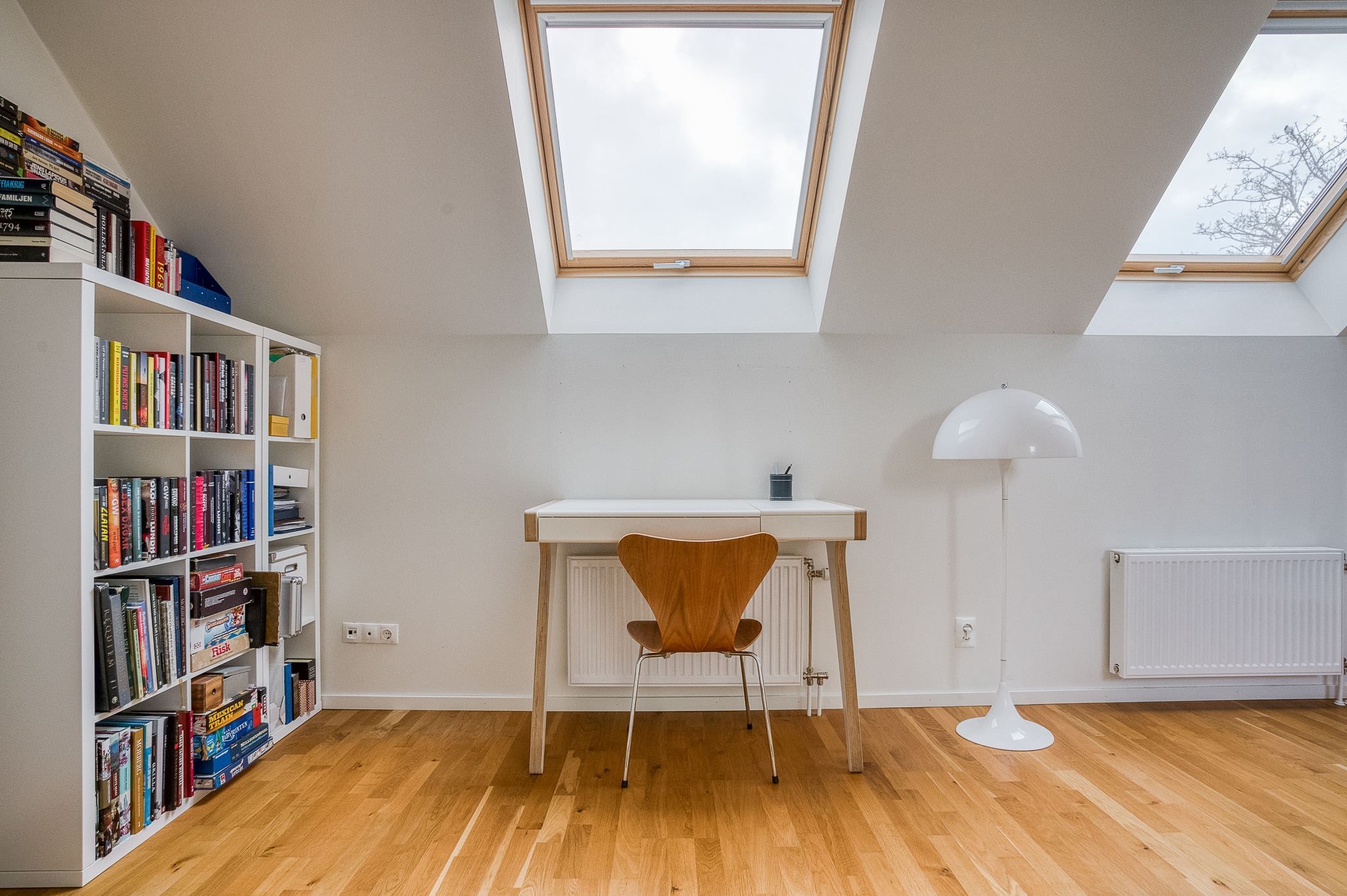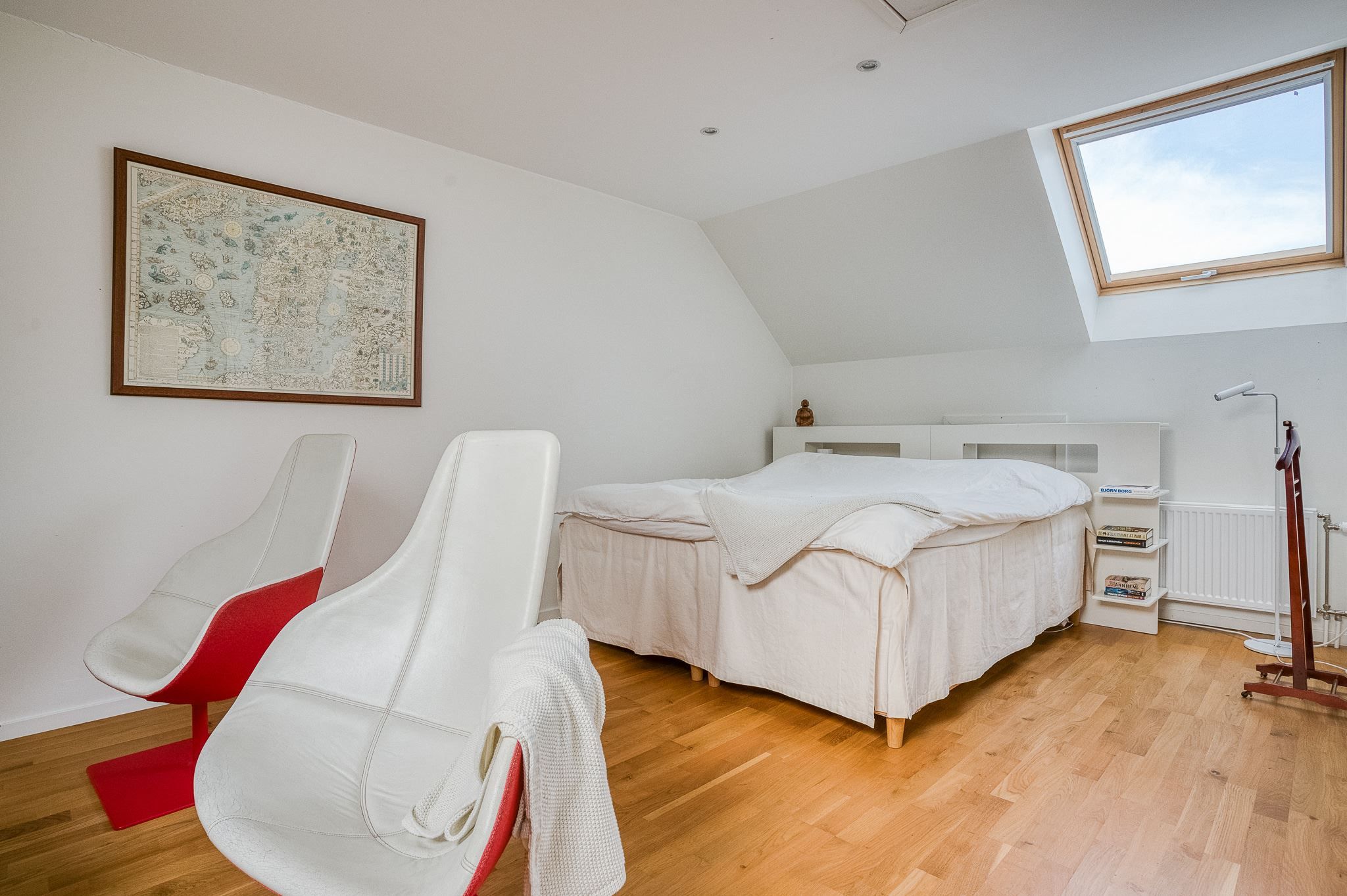 Överst väntar ett riktigt wow-rum om hela 32 kvm – en flexibel och luftig yta med utsikt mot himlen. Här ryms med lätthet både soffgrupp och säng, perfekt som master bedroom, tonårsdel eller kombinerat sovrum och allrum. Dessutom finns gott om förvaring i anslutande utrymme som passar utmärkt som walk-in-closet eller förråd. Mycket gott om förvaringsutrymme på alla tre våningsplan, samt golv på ”kallvinden” och förvaringsbod på tomten.