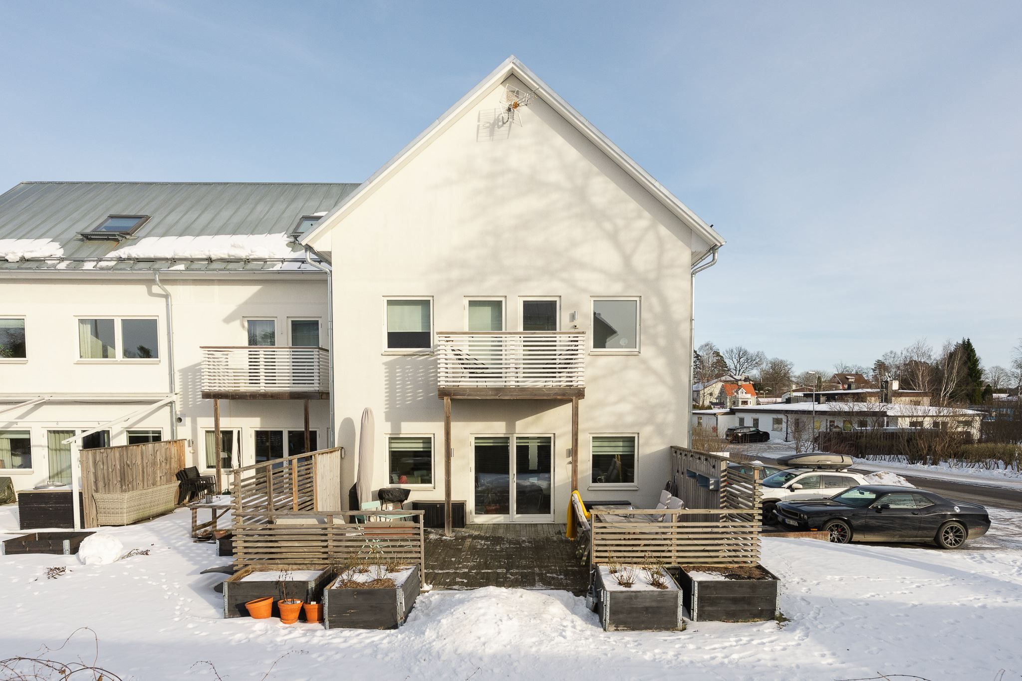 Föreningens robotgräsklippare sköter gräsmattan och precis utanför huset finns parkeringsplats med laddstolpe – smidigt och bekvämt. I närområdet finns flera förskolor samt Österskärsskolan, vilket gör läget idealiskt för barnfamiljen. Ett modernt och bekymmersfritt boende med genomtänkt planlösning och närhet till både natur och kommunikationer.
