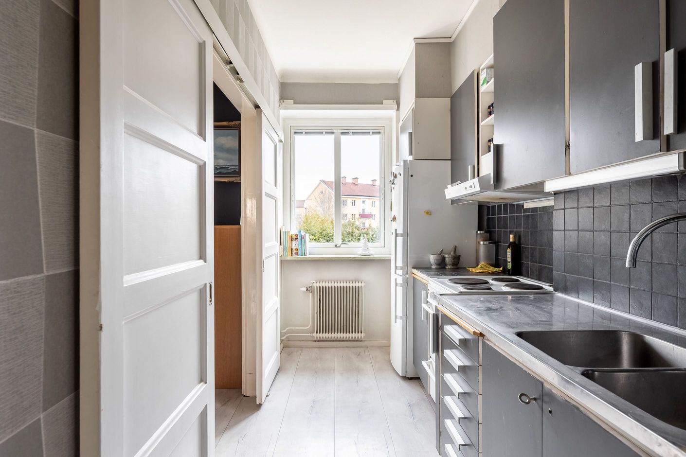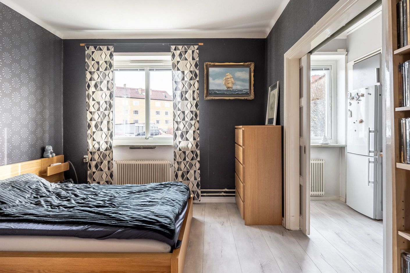 Denna tvårummare på Tungatan ligger mycket centralt men ändå lugnt och avskilt på en gata med lite biltrafik. Ett kvarter bort finns närmsta mataffär och ner till centrum är det en kort promenad på 10 minuter. Lägenheten ligger på första våning, endast ett fåtal trappsteg upp vilket gör den bekväm och lättillgänglig samtidigt som man slipper insynen från fönster som en lägenhet på första våning vanligtvis kan ge. Fina detaljer från byggåret är bevarade så som trägolvet i vardagsrummet och skjutdörrarna in till sovrummet.
