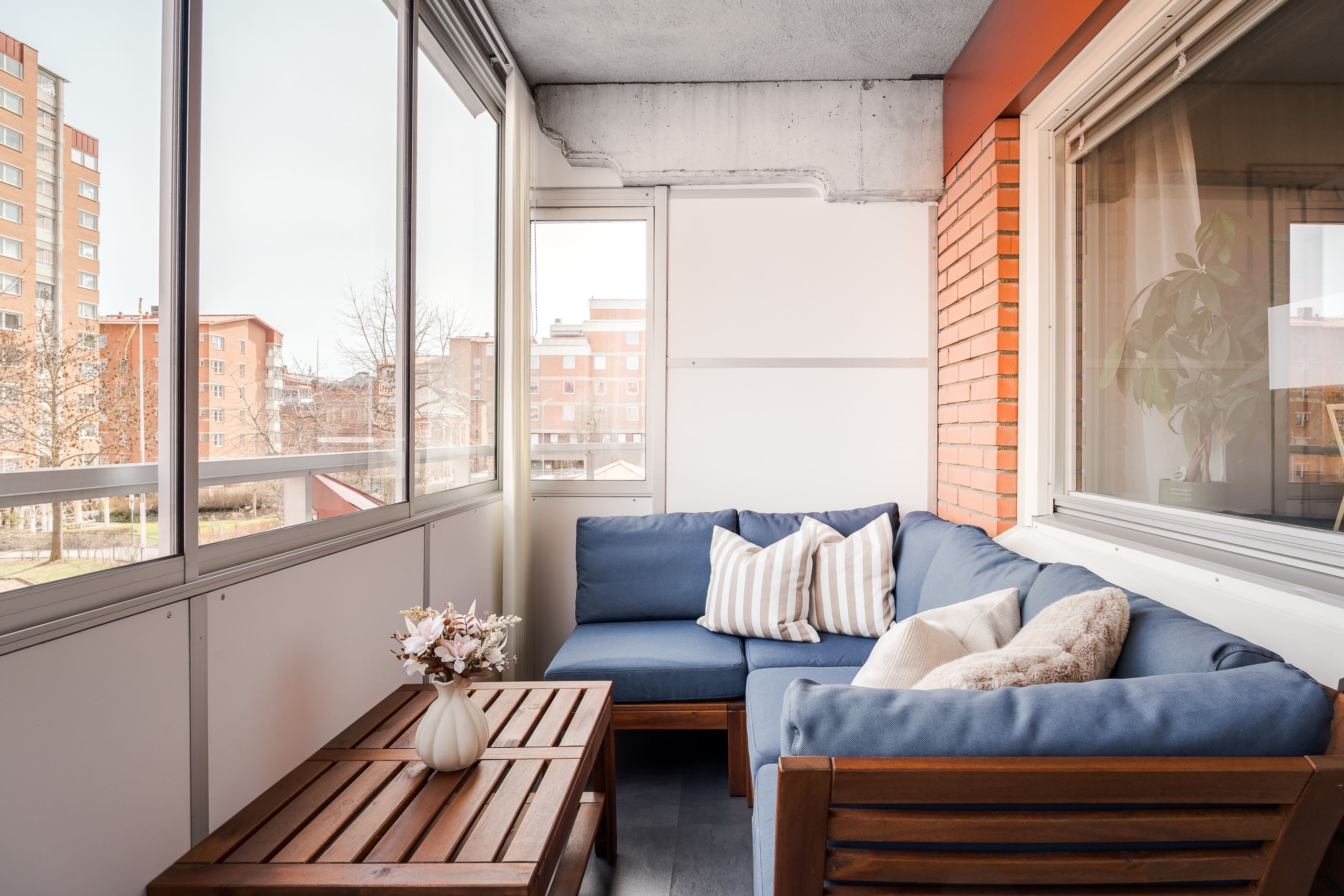 Vardagsrummet är ljust och har plats för både soffa och matgrupp. Härifrån når du den inglasade balkongen som blir en extra yta att använda stora delar av året. Köket är modernt och har gott om förvaring samt plats för matbord vid fönstret. Sovrummet är rymligt och ger plats för både säng och förvaring. Badrummet är elegant renoverat i tidlösa materialval med dusch, kommod, tvättdel och praktiska lösningar som gör vardagen enkel och bekväm.
