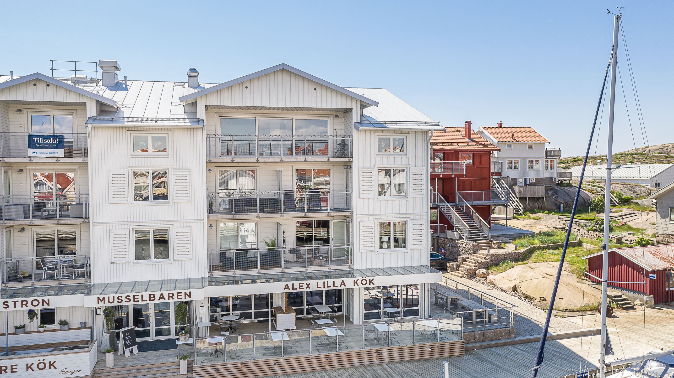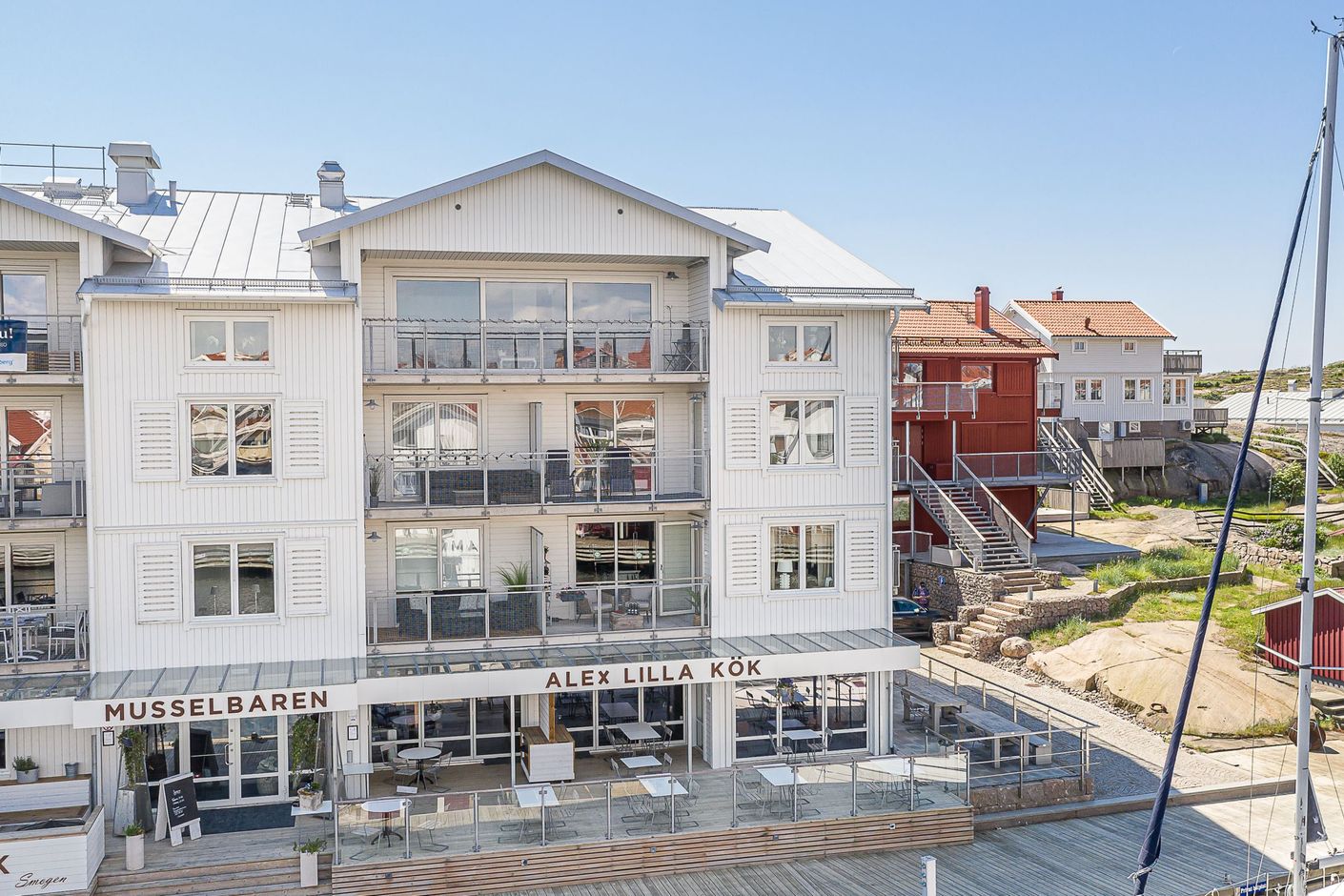 Här bor ni i unik miljö och med närhet till allt som kan önskas av den svenska Västkusten och pittoreska Smögen och dess vackra miljö! Närheten till salta klippbad, sandstrand och vackra promenadstråk blir ett faktum för den som väljer att bosätta sig här! På promenadavstånd nås också den omåttligt populära Smögenbryggan som om sommaren har ett gott utbud av butiker och restauranger. Sommartid tar ni er bekvämt över till både Smögenbryggan och Kungshamn med Zitabåten som har hållplats i närheten av lägenheten. För den som önskar hålla sig runt husknuten finns Musselbaren som erbjuder en härlig meny! För den golfintresserade ligger Sotenäs golfklubb på ca 20 minuters bilresa från Smögen. Ett perfekt boende för Dig som söker det lilla extra oavsett om ni söker fritidsboende eller åretruntboende.