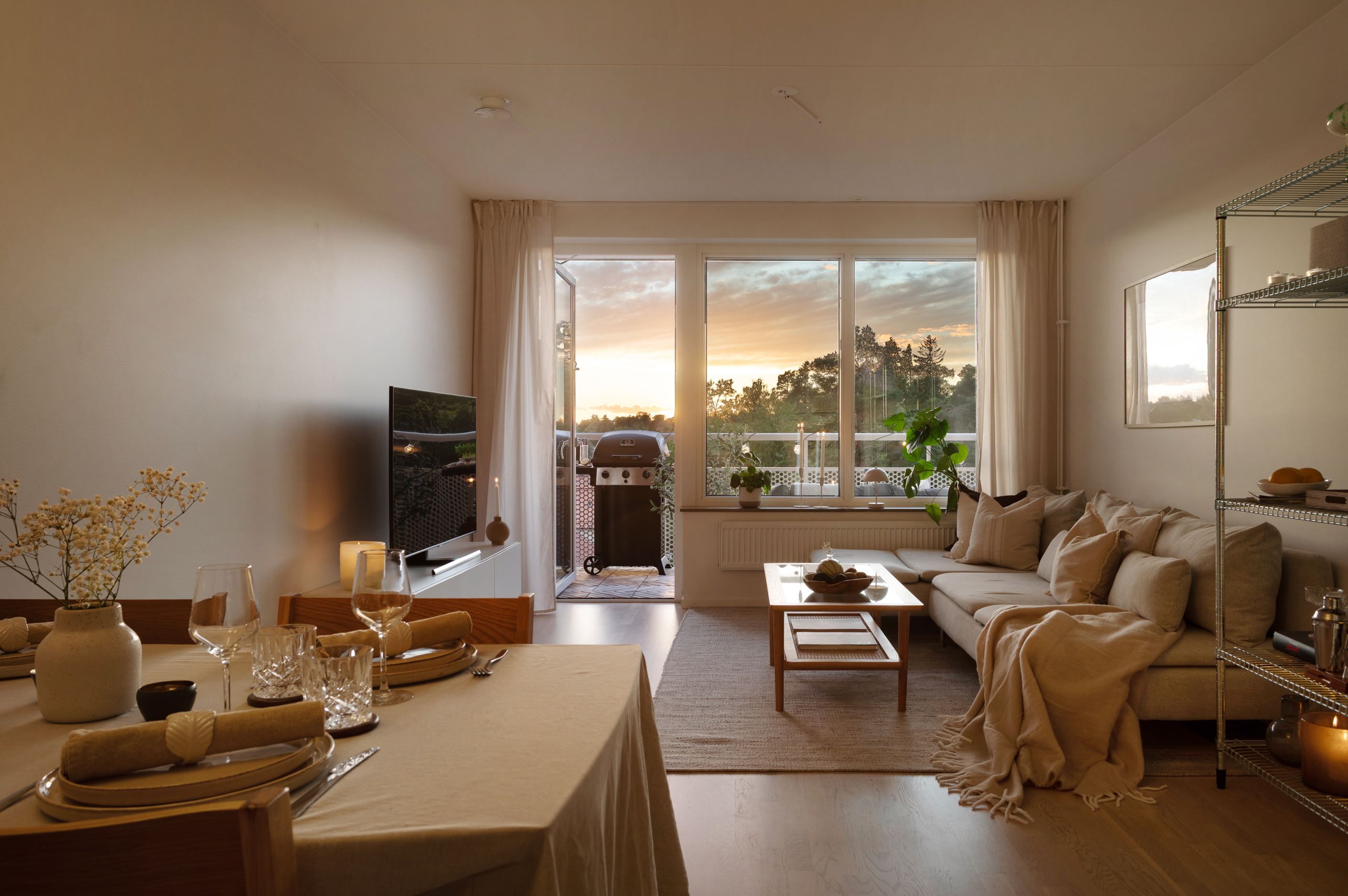 Bostaden bjuder på rikliga ljusinsläpp, vidsträckt utsikt och en luftig atmosfär med exklusiva materialval och tidlös design. Vardagsrum och kök i öppen planlösning ger en härlig social yta, rogivande sovrum inbjuder till vila. Genomgående ljus ekparkett i alla rum förutom det helkaklat badrummet med kombimaskin och golvvärme som ger extra vardagslyx. Generösa förvaringslösningar i bostaden och ett tillhörande källarförråd gör detta hem både bekvämt och praktiskt. Perfekt för såväl singelhushållet som för paret!