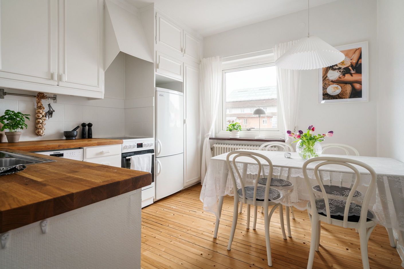 Här finner ni en välplanerad och charmig bostad med nåtade och slipade trägolv, ljusa väggar, goda förvaringsmöjligheter, balkong med inglasning från 2020, ljust kök, källar och vindsförråd mm.