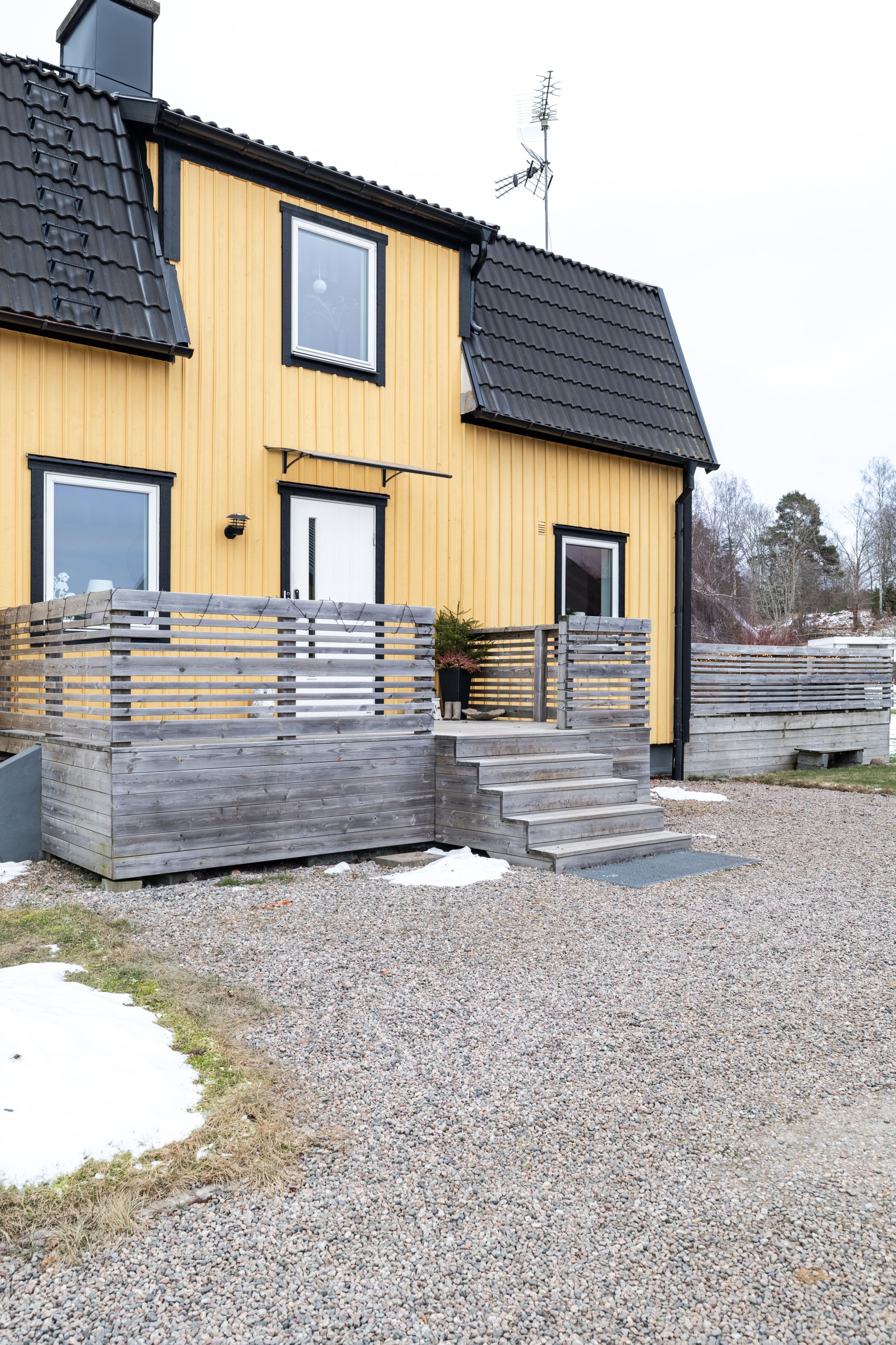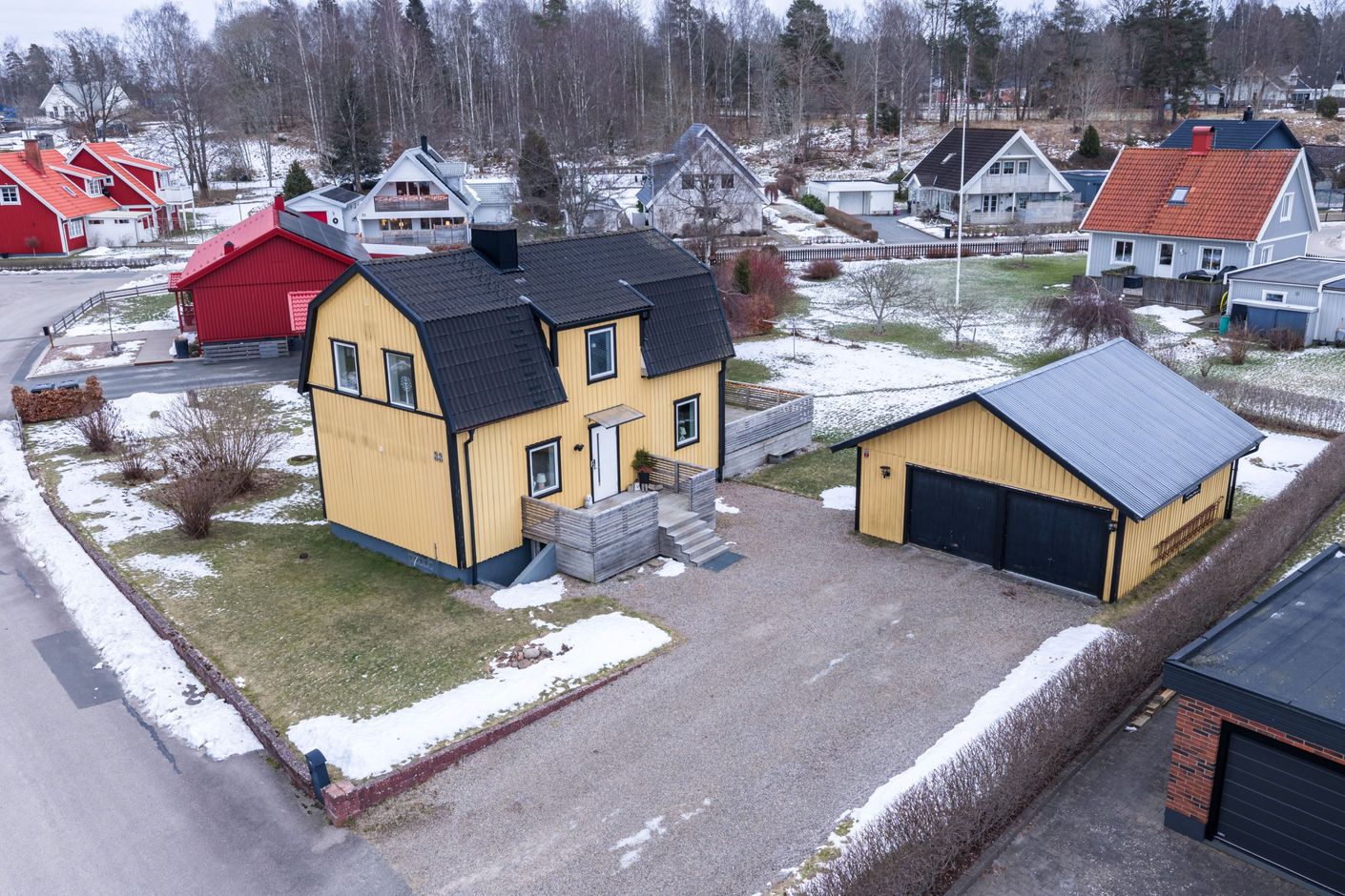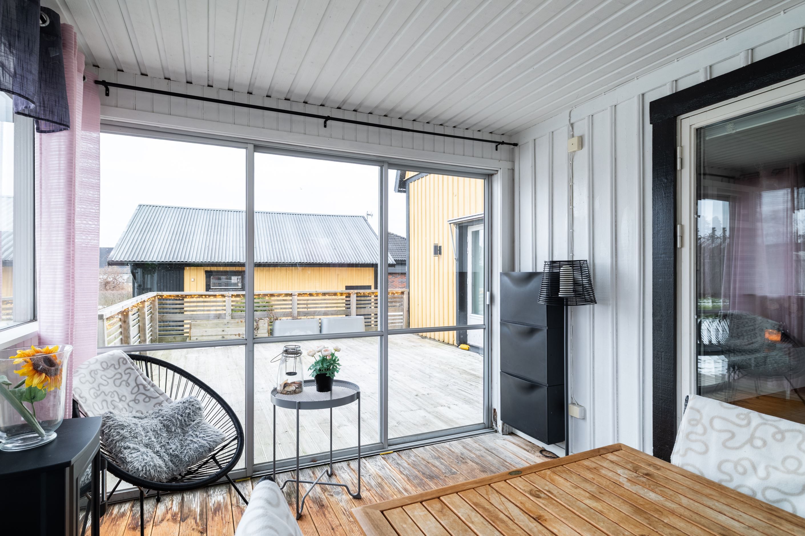 Tomten erbjuder goda lekytor för barn och en trivsam utemiljö. I närområdet finns lekplats och pulkabacke, vilket ytterligare förstärker områdets barnvänliga karaktär. Fastigheten har även garage, trädäck och inbyggd altan, vilket bidrar till både funktion och helhetskänsla. Taket lades om 2009 och huset har därefter vårdats väl.