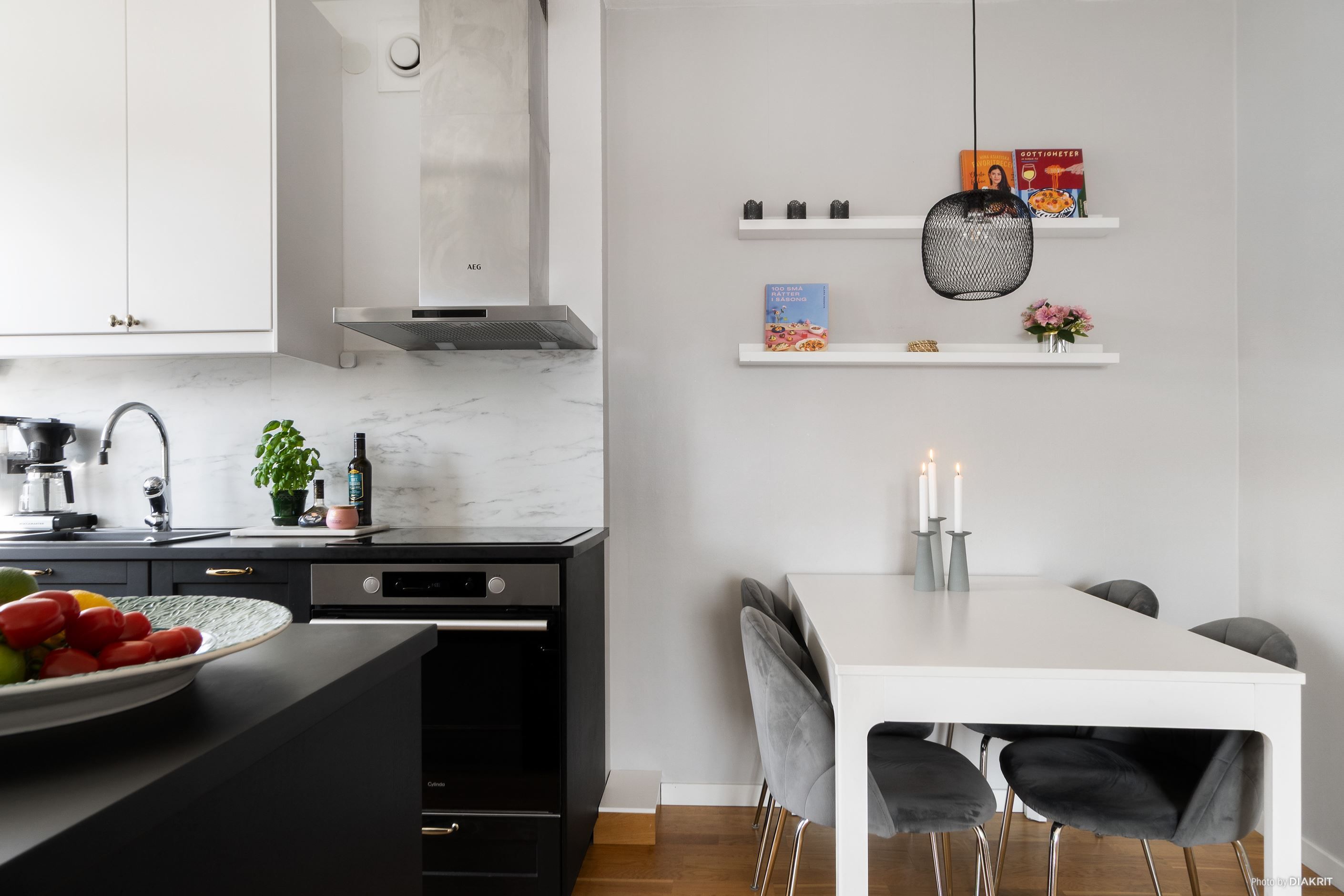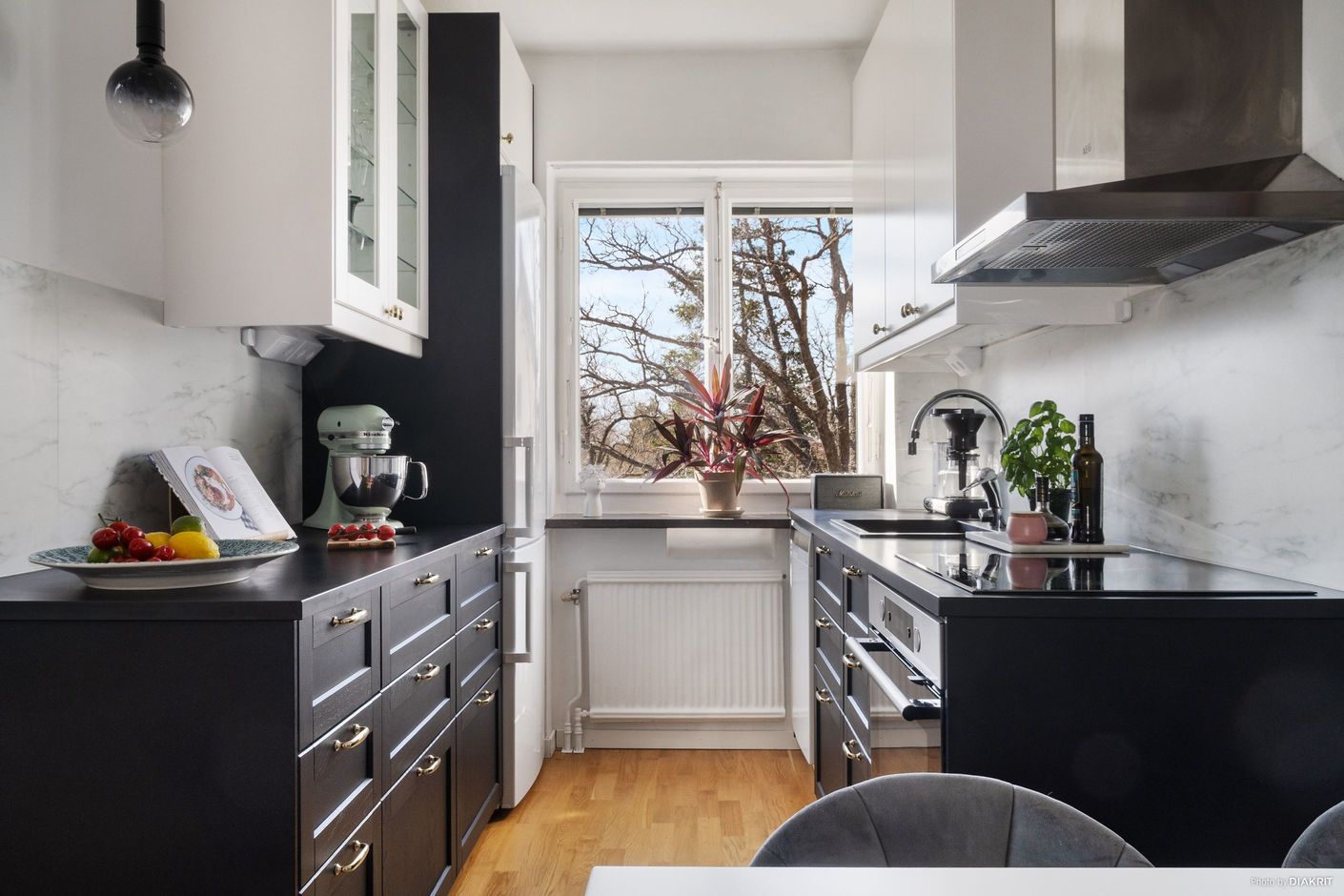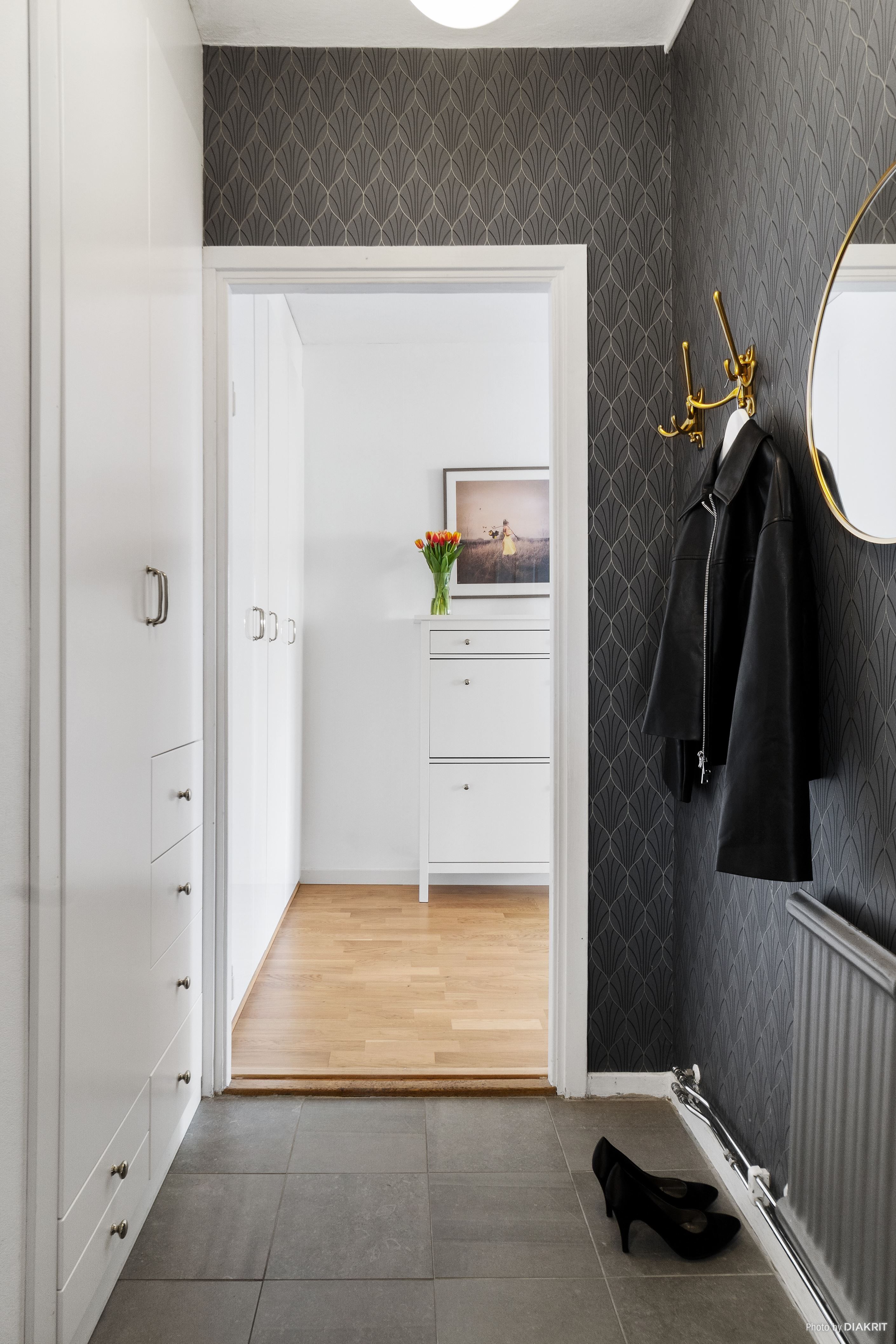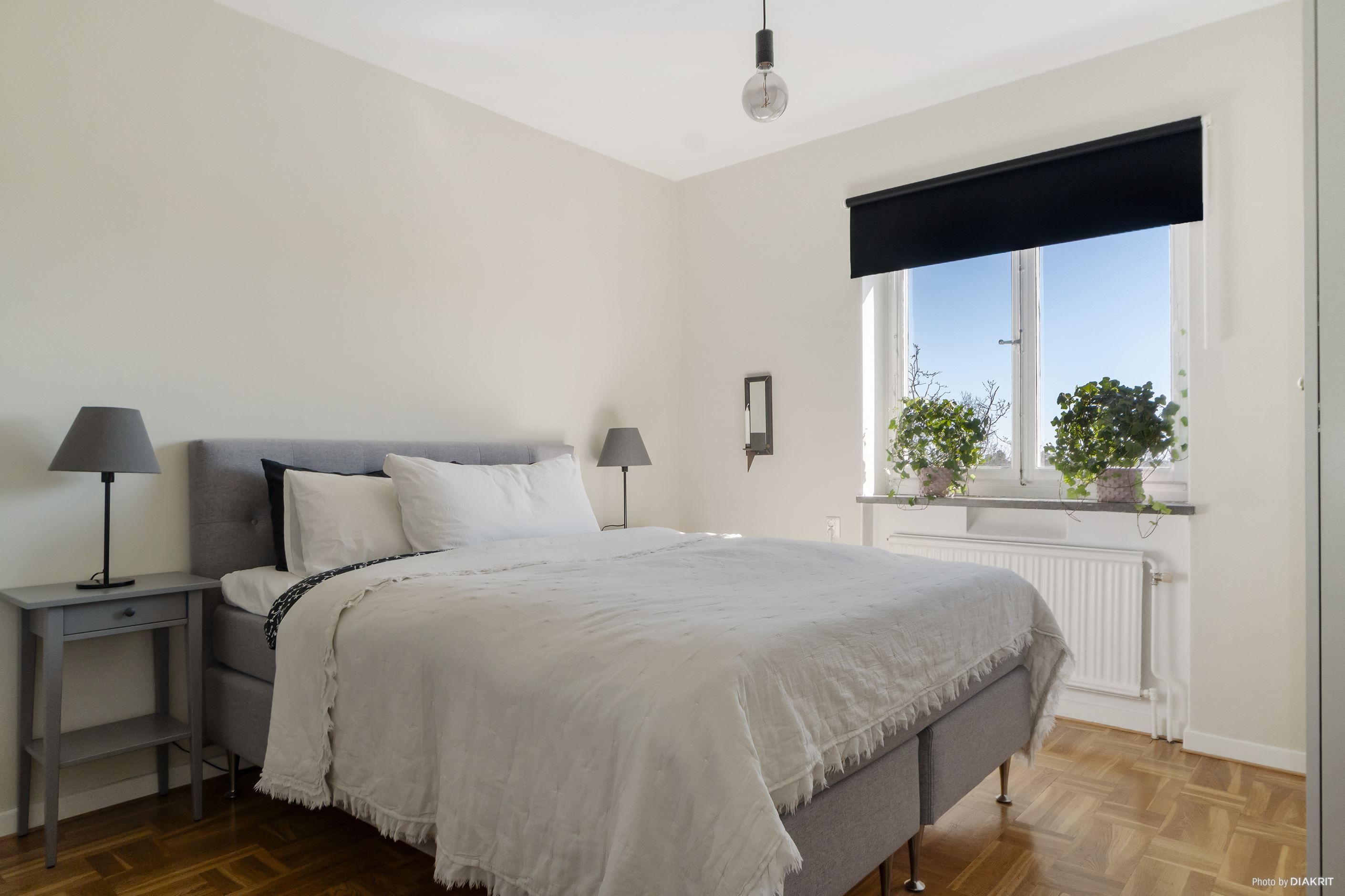 Lägenheten har genomgående fina ytskikt med parkettgolv samt ljust målade väggar och vackra fondtapeter, vilket ger en känsla av stilfullhet och rymd. Vardagsrum med utgång till solig södervänd balkong med härlig utsikt. Vardagsrummet är idag avdelat, vilket ger lägenheten ett litet extrarum. Detta har nuvarande ägare tidigare haft nytta av som en extra sovplats (en 120 cm säng går in) och nu som kontor. Praktiskt kök, renoverat 2019, med snygg inredning i vitt och svart. Rymlig matplats invid köket, där även gäster får plats. Fint sovrum med gott om plats för dubbelsäng samt bra förvaring i garderober. Dusch/wc med kaklade väggar och klinkergolv samt tvättmaskin.