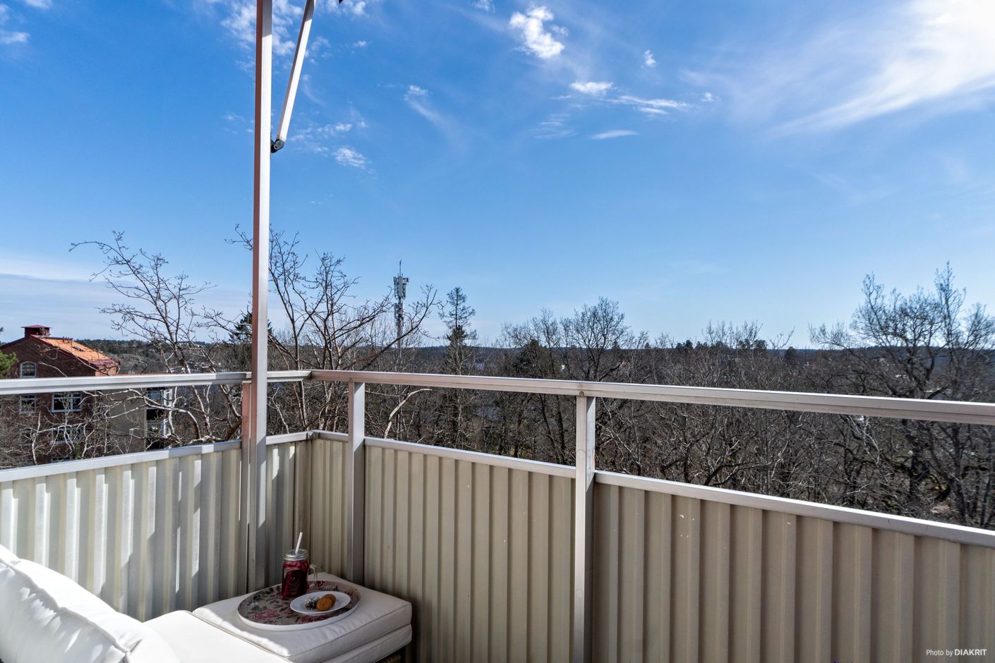 Stilren hörnlägenhet med balkong mot söder i högt, fritt och insynsskyddat läge!