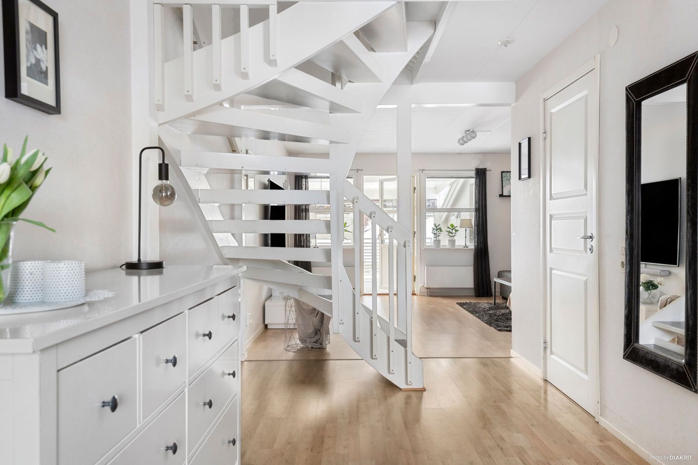 Bostaden om 99 kvm är fördelad på två plan och erbjuder 4 rum varav 3 sovrum, perfekt för barnfamiljen, paret som önskar extra utrymme eller för dig som vill ha ett hemmakontor. Planlösningen är genomtänkt med sociala ytor på entréplan och den mer privata delen en trappa upp. För att inte nämna uterummet som blir en naturlig samlingsplats under stora delar av året.