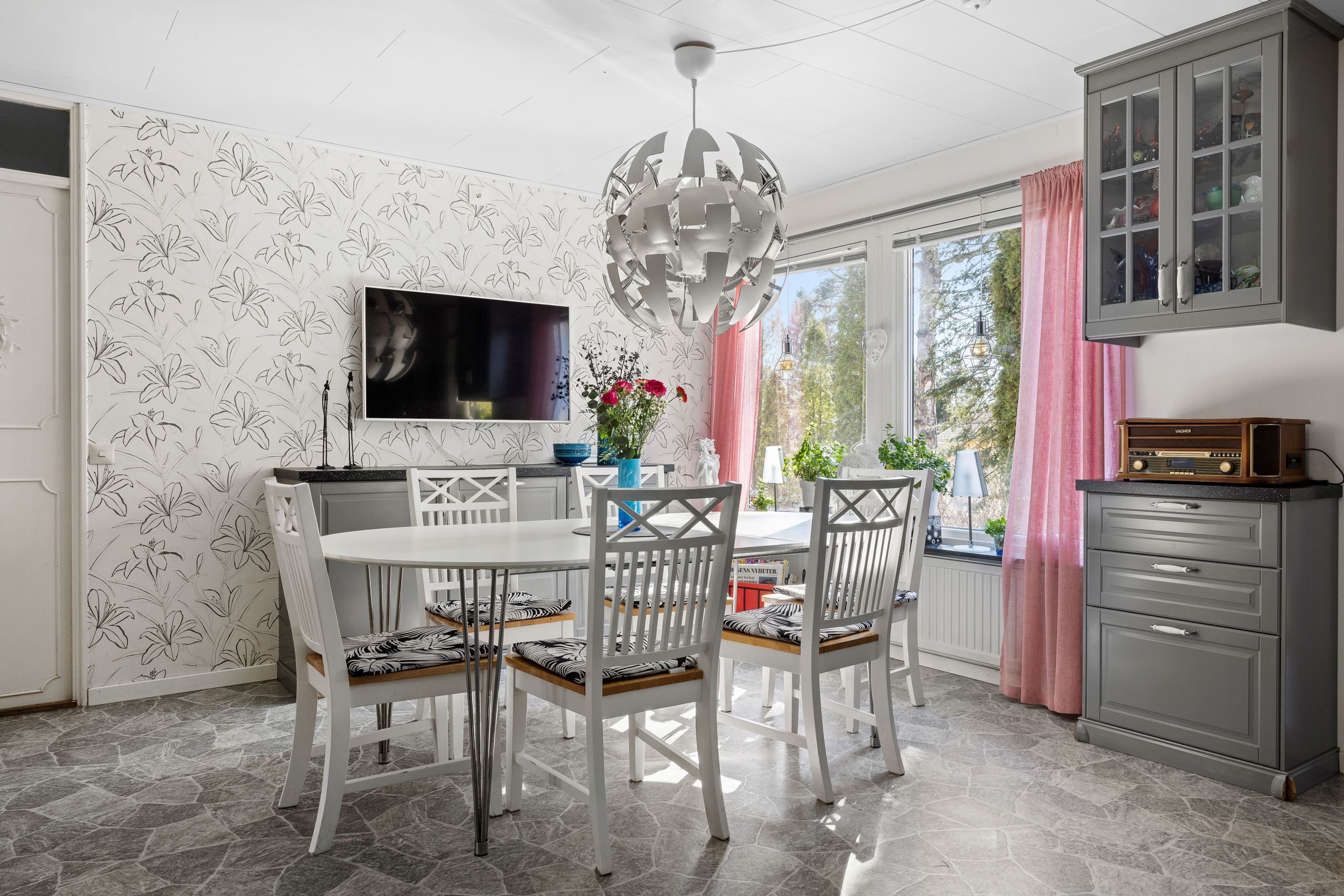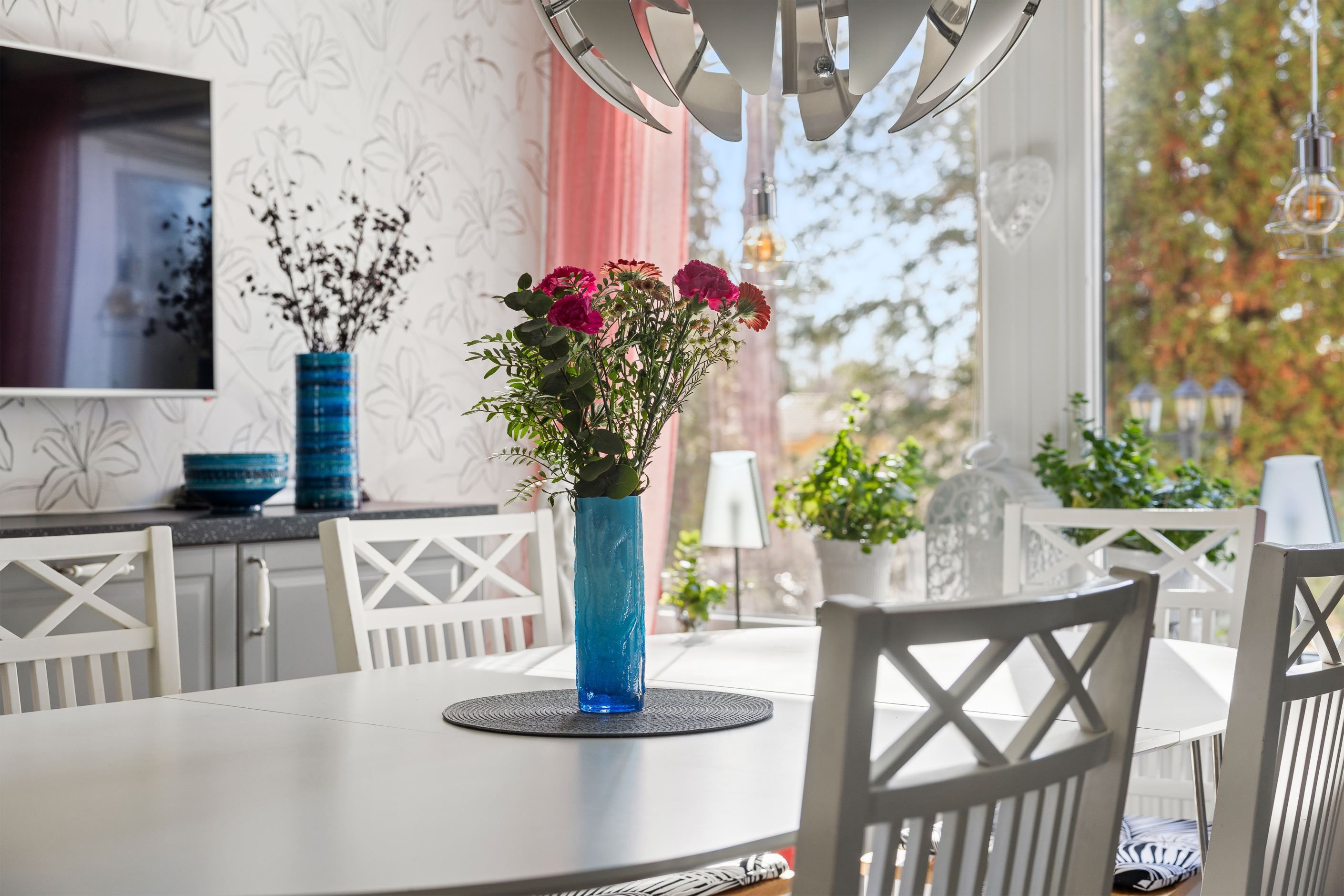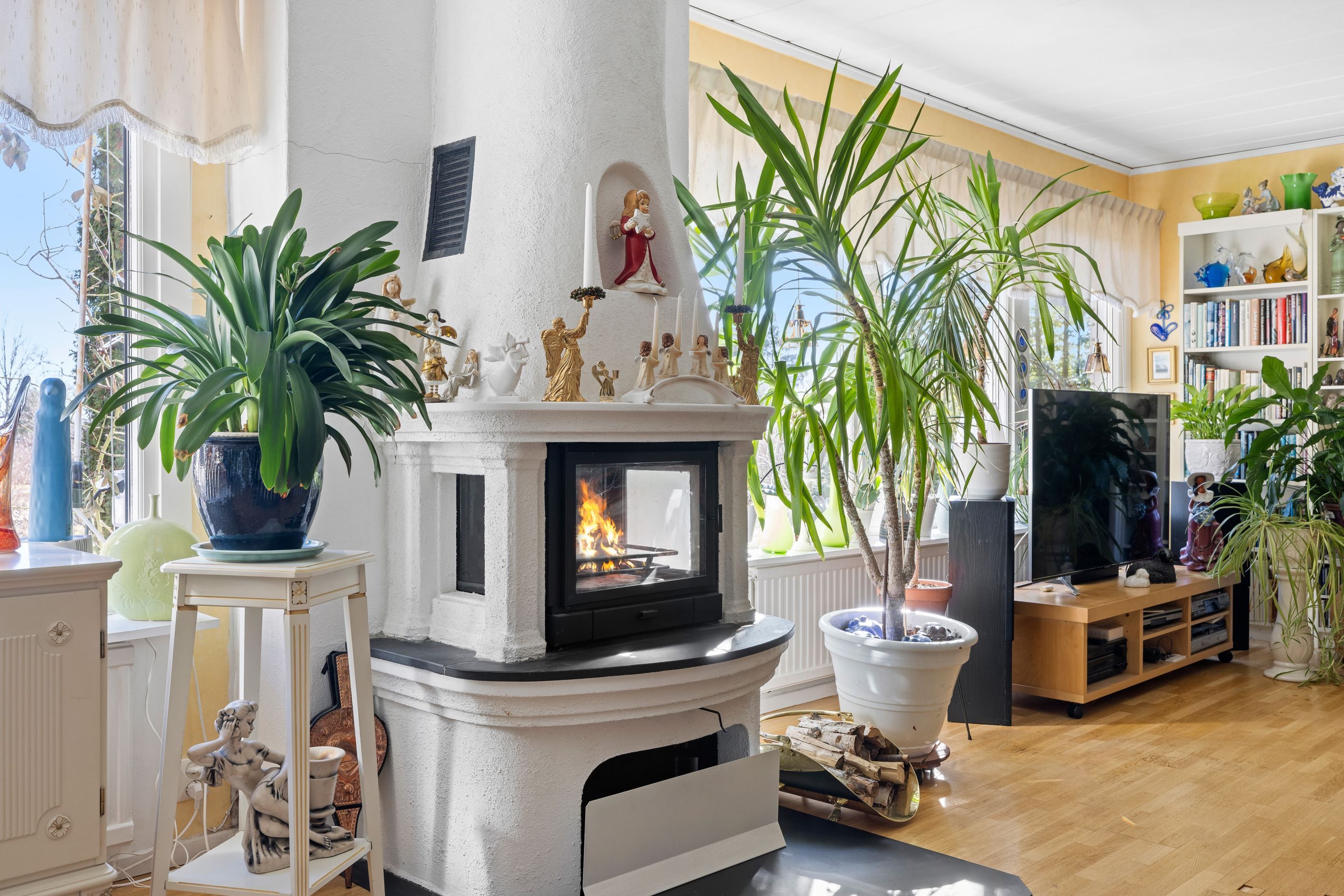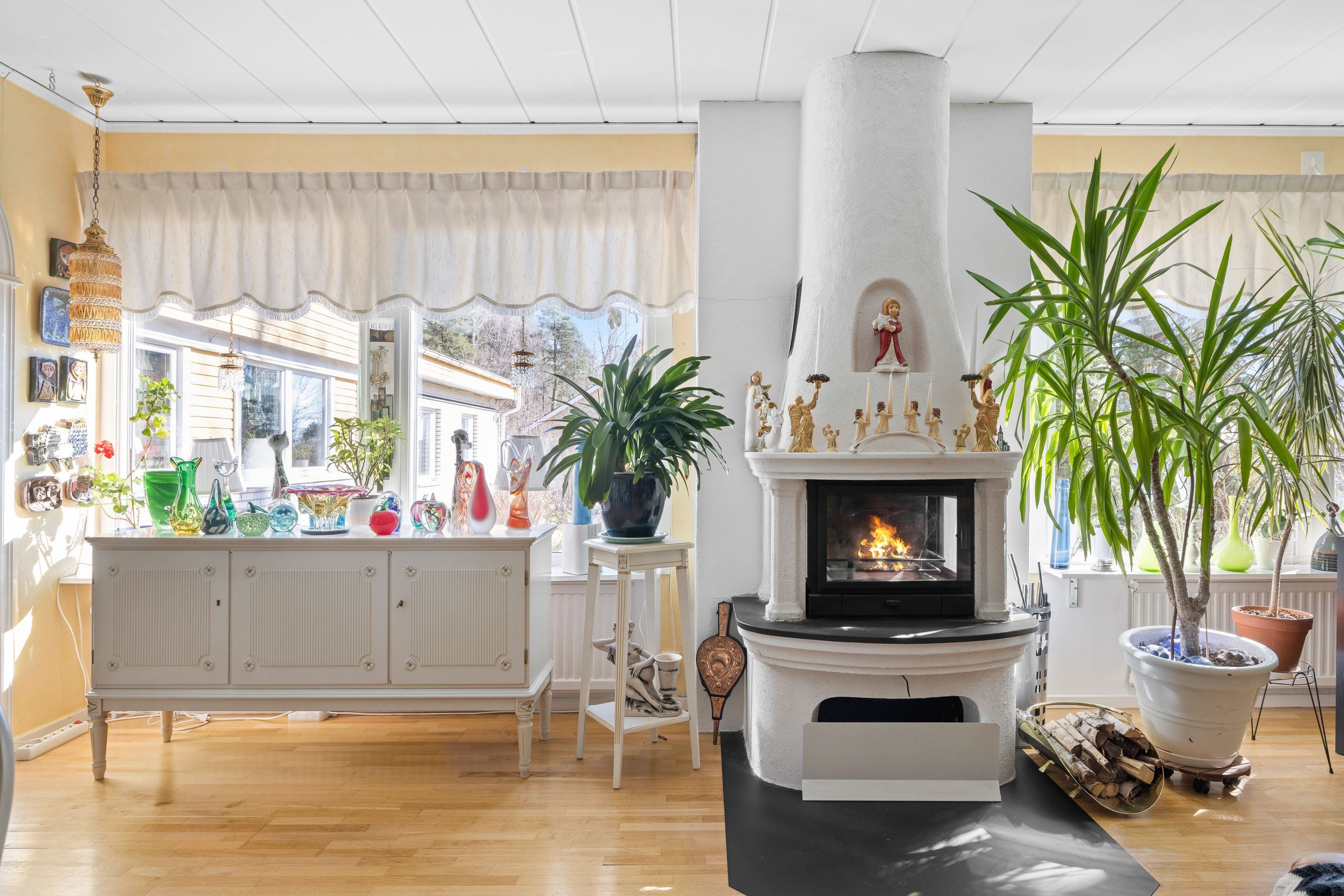 Bostaden präglas av ljus, rymd och flexibilitet med flera sovrum, generösa sällskapsytor och en naturlig koppling mellan kök och matplats. Vardagsrummet bjuder in till umgänge och har utgång mot uteplatsen – en perfekt plats för sommarens middagar och skön avkoppling. I vardagsrummet finns en härlig och värmande eld-stad för kalla höst och vinterkvällar.
