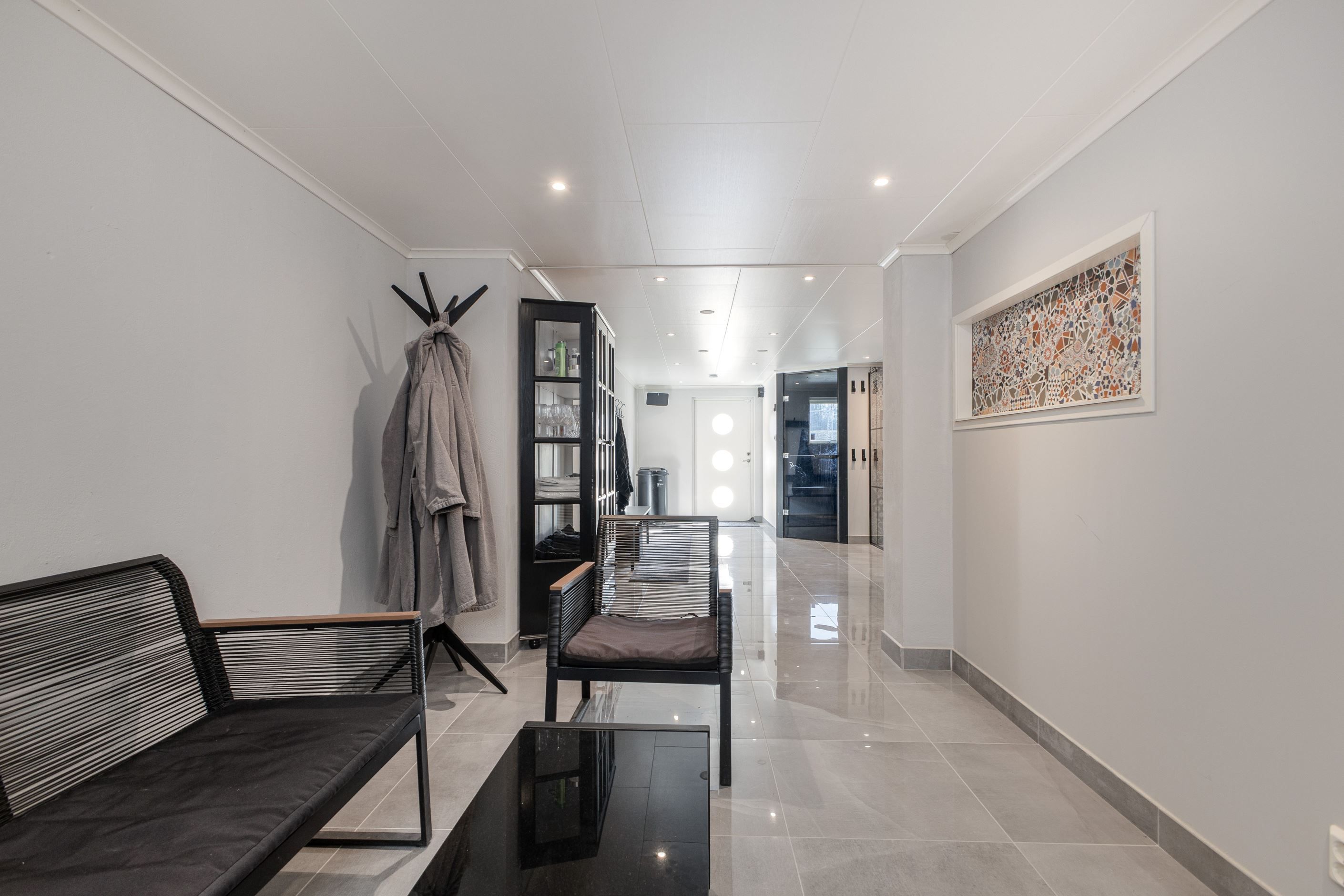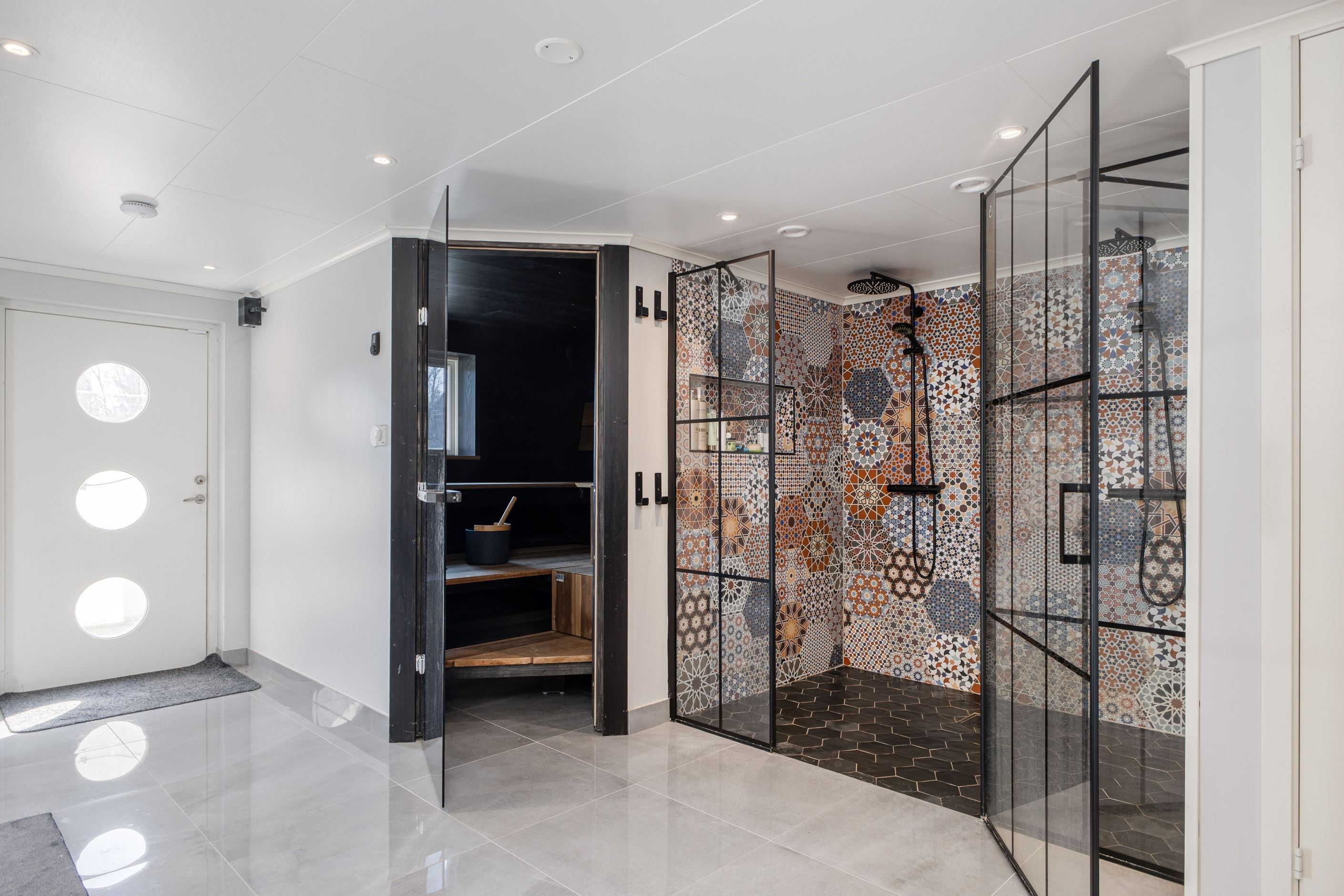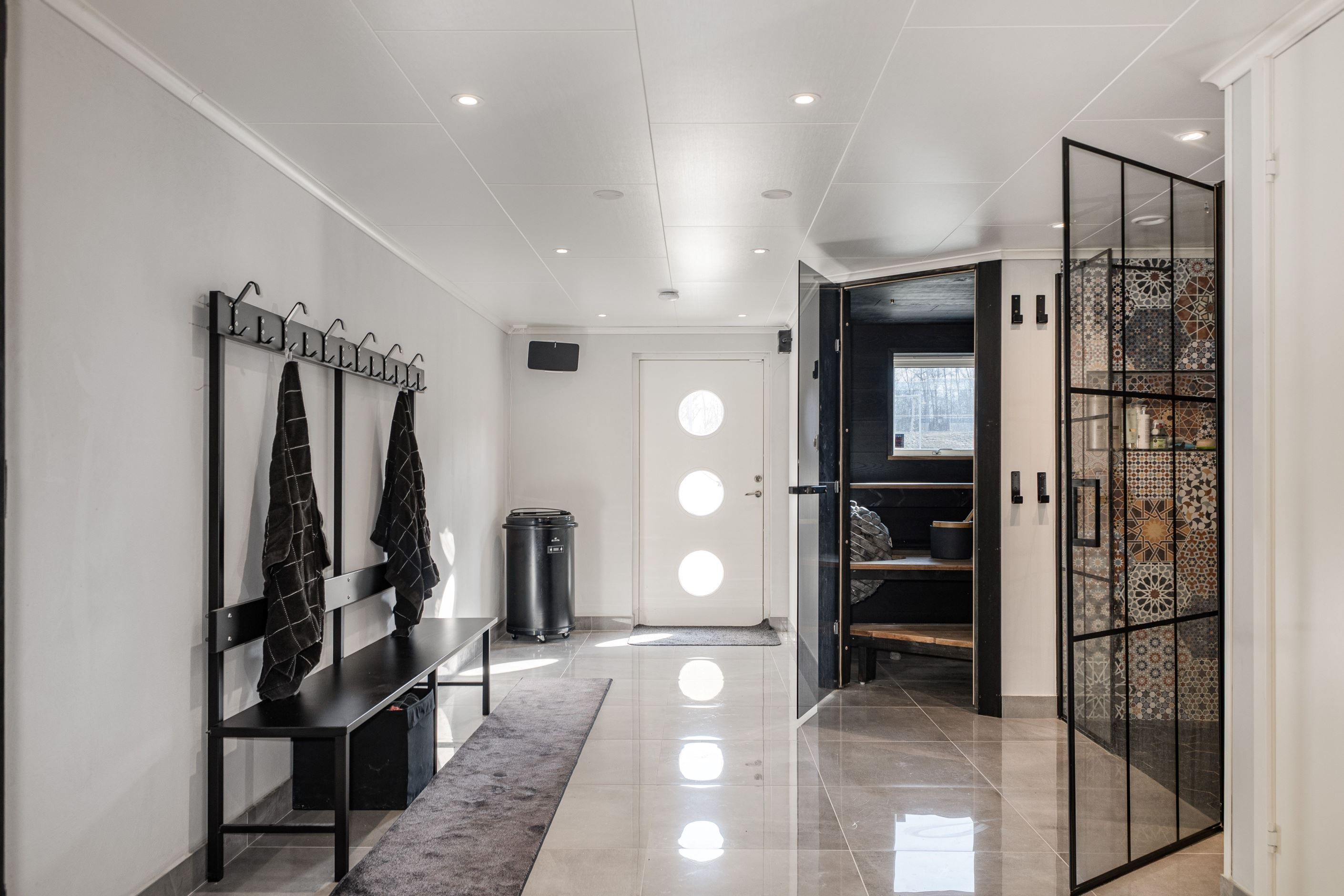 Redan när du kliver in möts du av ett lugn och en känsla av omtanke i varje detalj. Ljuset flödar genom bostaden och fångas upp av generösa sällskapsytor där kök och vardagsrum smälter samman i en naturlig helhet. Här finns utrymme för långa middagar, skratt och vardagsliv som får ta plats. Ryggåstaket öppnar upp rummet och skapar en härlig rymd, medan fönster i flera väderstreck låter dagsljuset vandra genom hemmet från morgon till kväll. Det isolerade uterummet blir snabbt en favoritplats där elden sprakar under kyligare dagar och skjutdörrarna öppnas upp mot altanen när sommaren gör sig påmind. Och när dagen går mot sitt slut väntar spaavdelningen, där bastuns värme, de generösa duscharna och den rofyllda loungemiljön bjuder in till avkoppling och återhämtning - som ett eget retreat i hemmet.