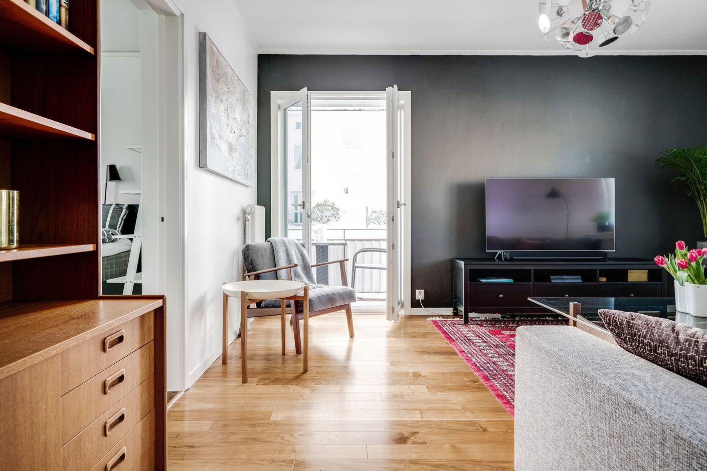 I den natursköna sydöstra utkanten av Borås ligger denna välbevarade lägenhet, på en lugn gata med låga flerfamiljshus och villor. På första våning i ett charmigt 40-talshus finner du två rum och kök fördelade på 51 kvadratmeter. Fina ytskikt och fullt utrustat och inrett med allt som kan tänkas att behövas till den moderna vardagen. En gavel-lägenhet med fönster i hela tre olika väderstreck. Bostaden är yteffektiv och varje kvadratmeter är väl genomtänkt. Kulörtemat med sobra färger är genomgående i bostaden, detta tillsammans med stora fönsterpartier i vardera rum skapar en luftig och ljus känsla. Genom dubbla glasdörrar tar du dig ut på balkongen där du kan njuta av solen hela dagen!
