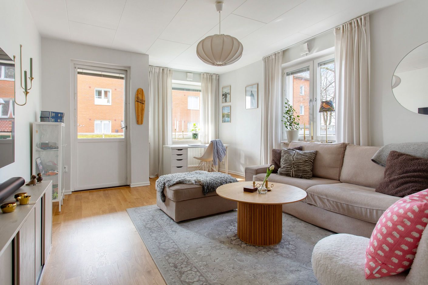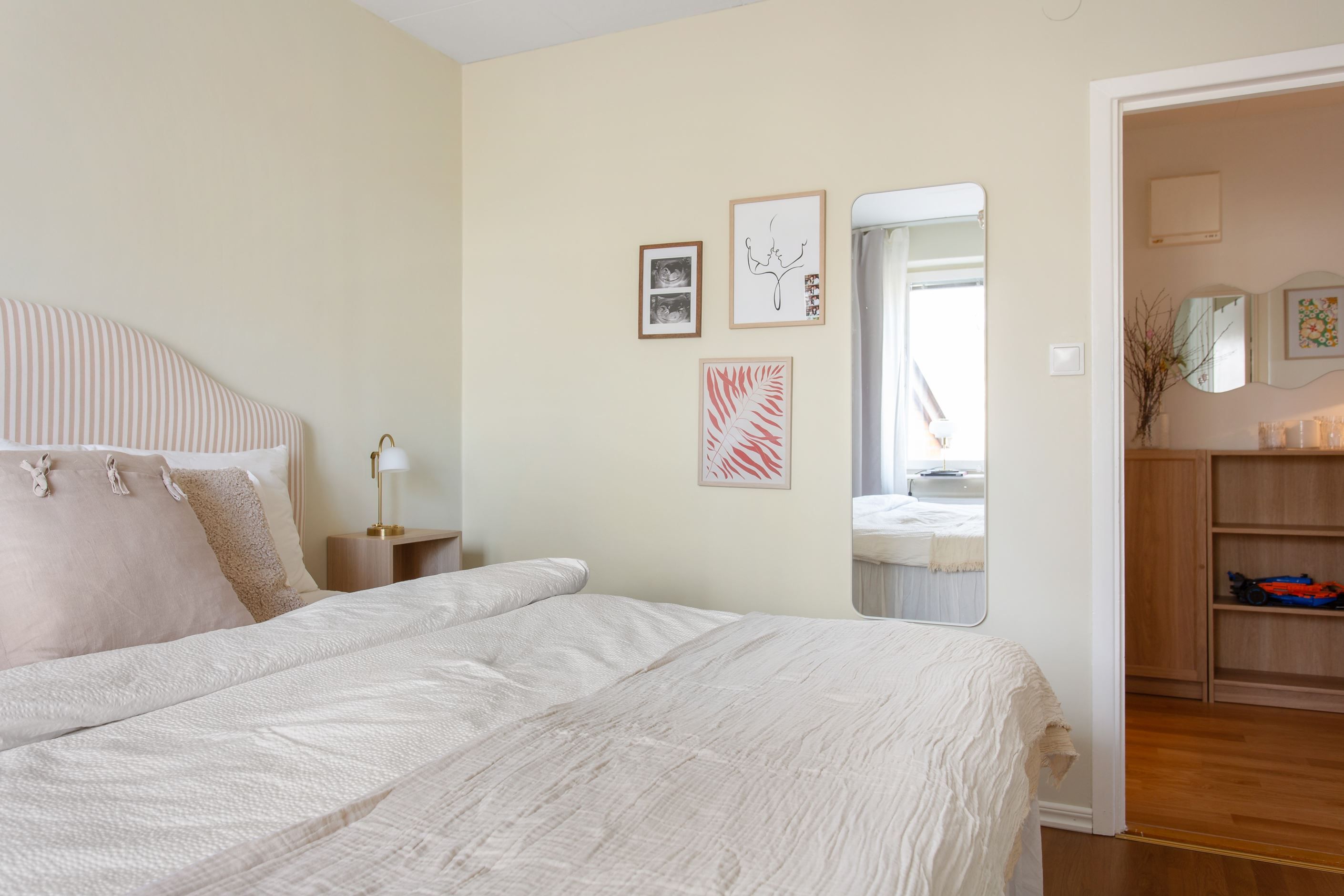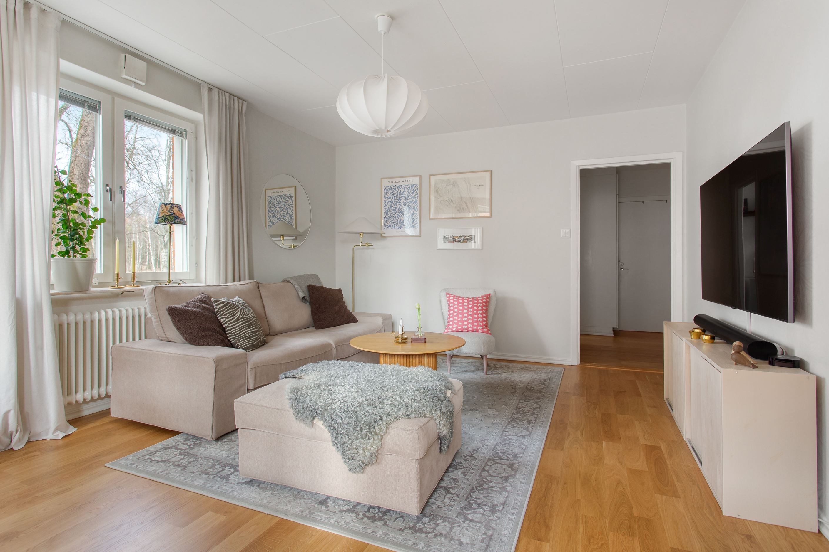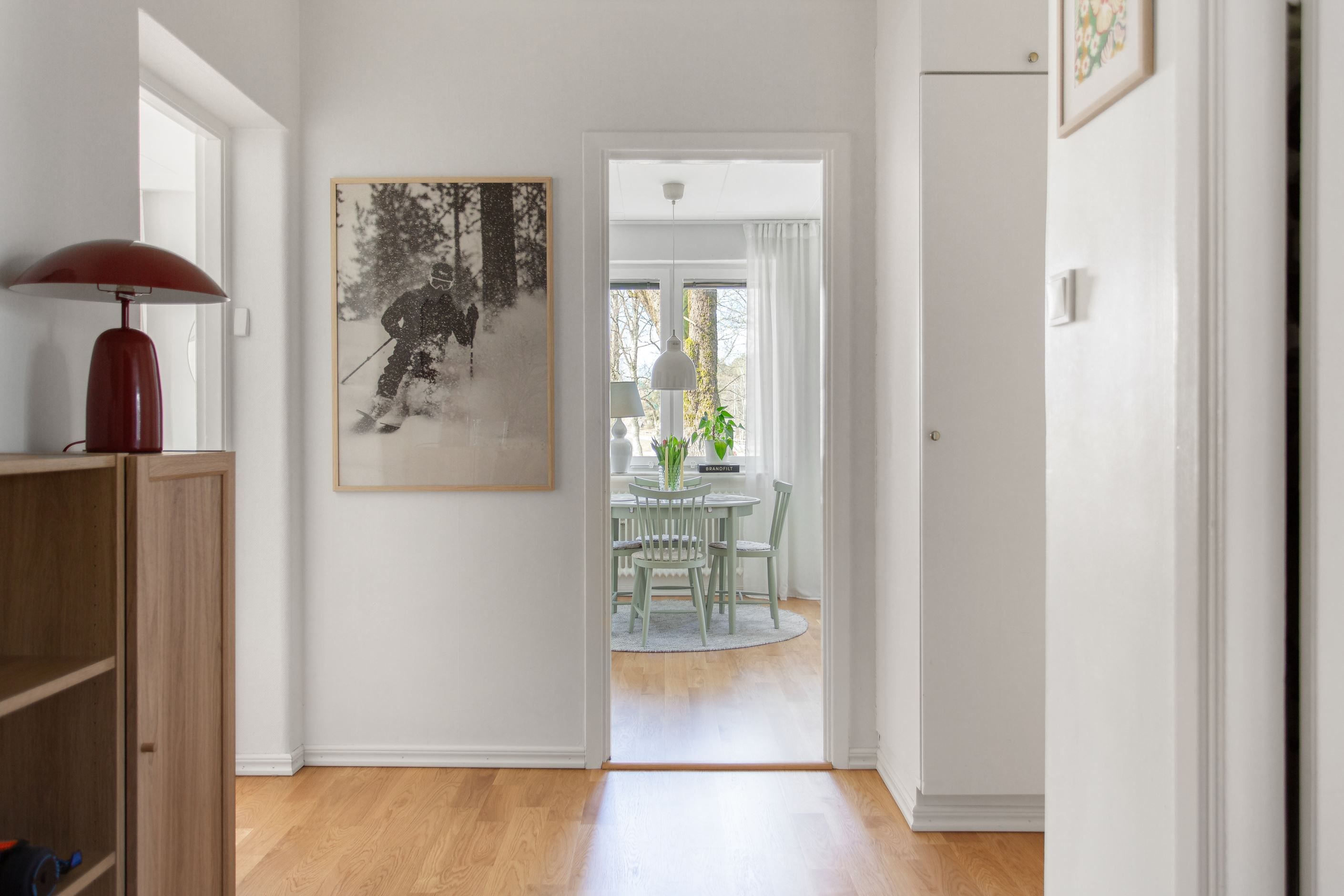 Bostaden präglas av ljusa och luftiga ytor där ett enhetligt golv löper genom hall, kök, matrum och vardagsrum som skapar en harmonisk helhet. Det trivsamma köket (2016) erbjuder både god förvaring och generösa arbetsytor med ett praktiskt matrum intill, medan det rymliga vardagsrummet bjuder in till sociala tillställningar. Här finns även ett badrum utrustat med tvättmaskin samt ett rogivande sovrum med mycket goda förvaringsmöjligheter. Den välplanerade hallen erbjuder dessutom ytterligare förvaring i flera garderober.