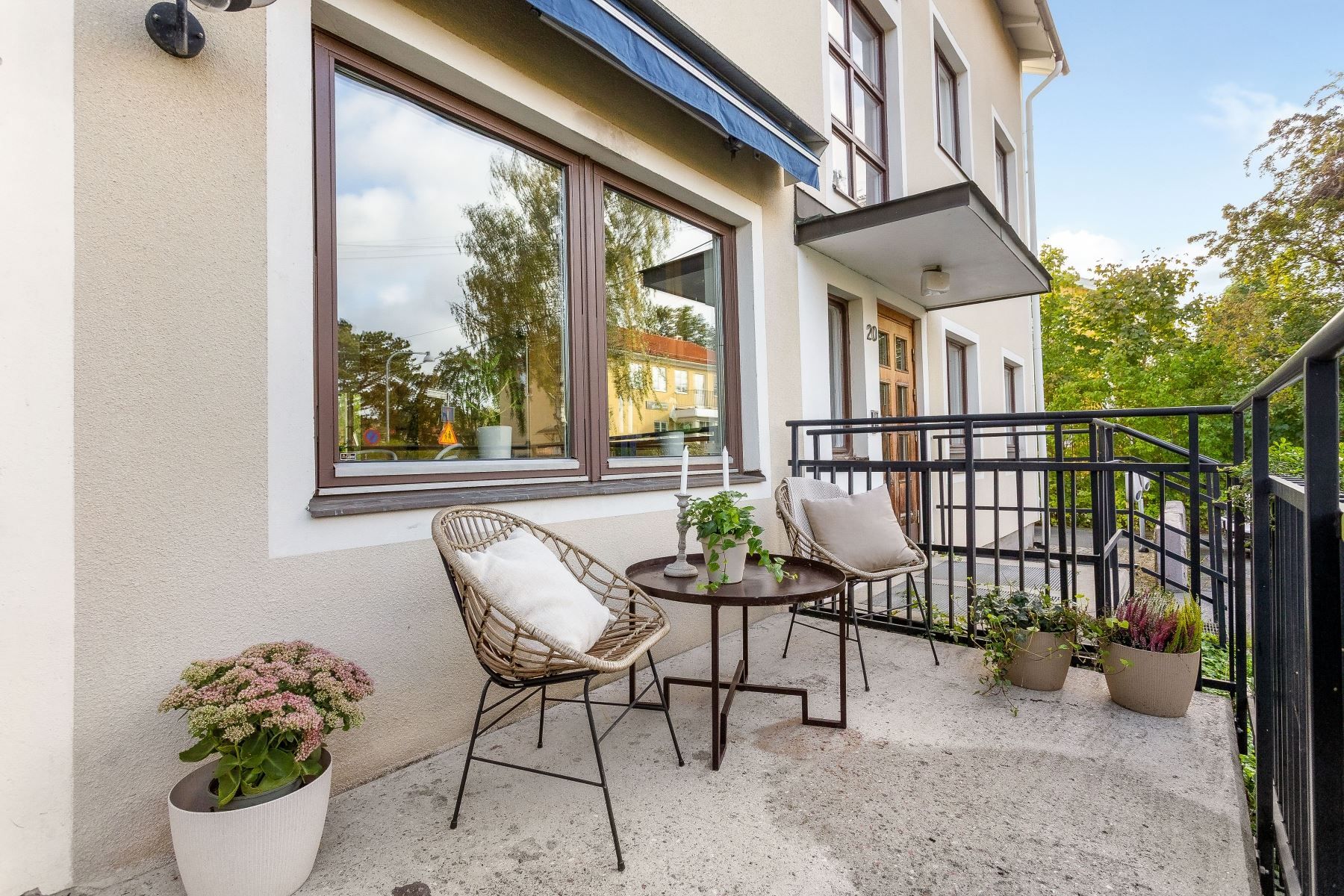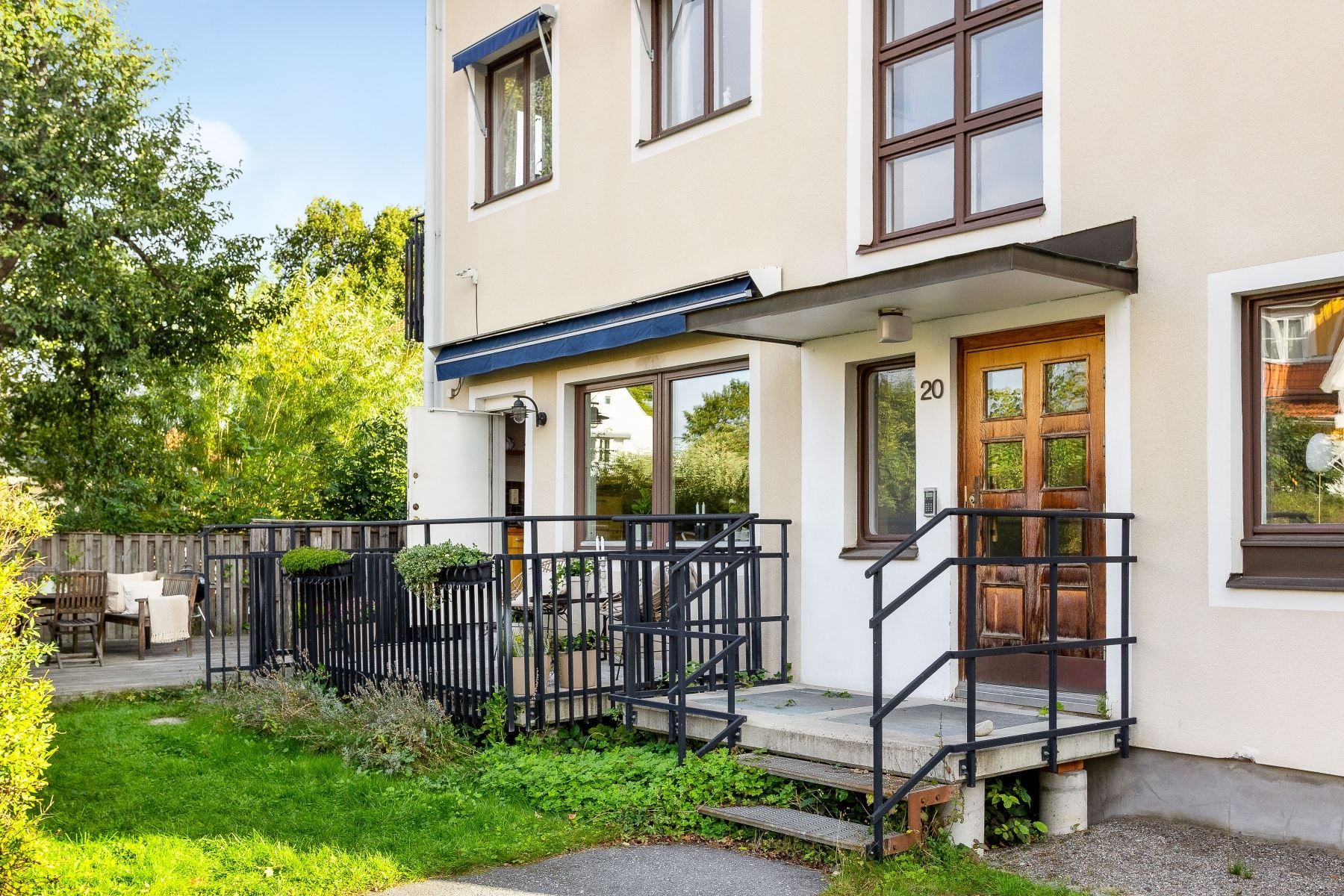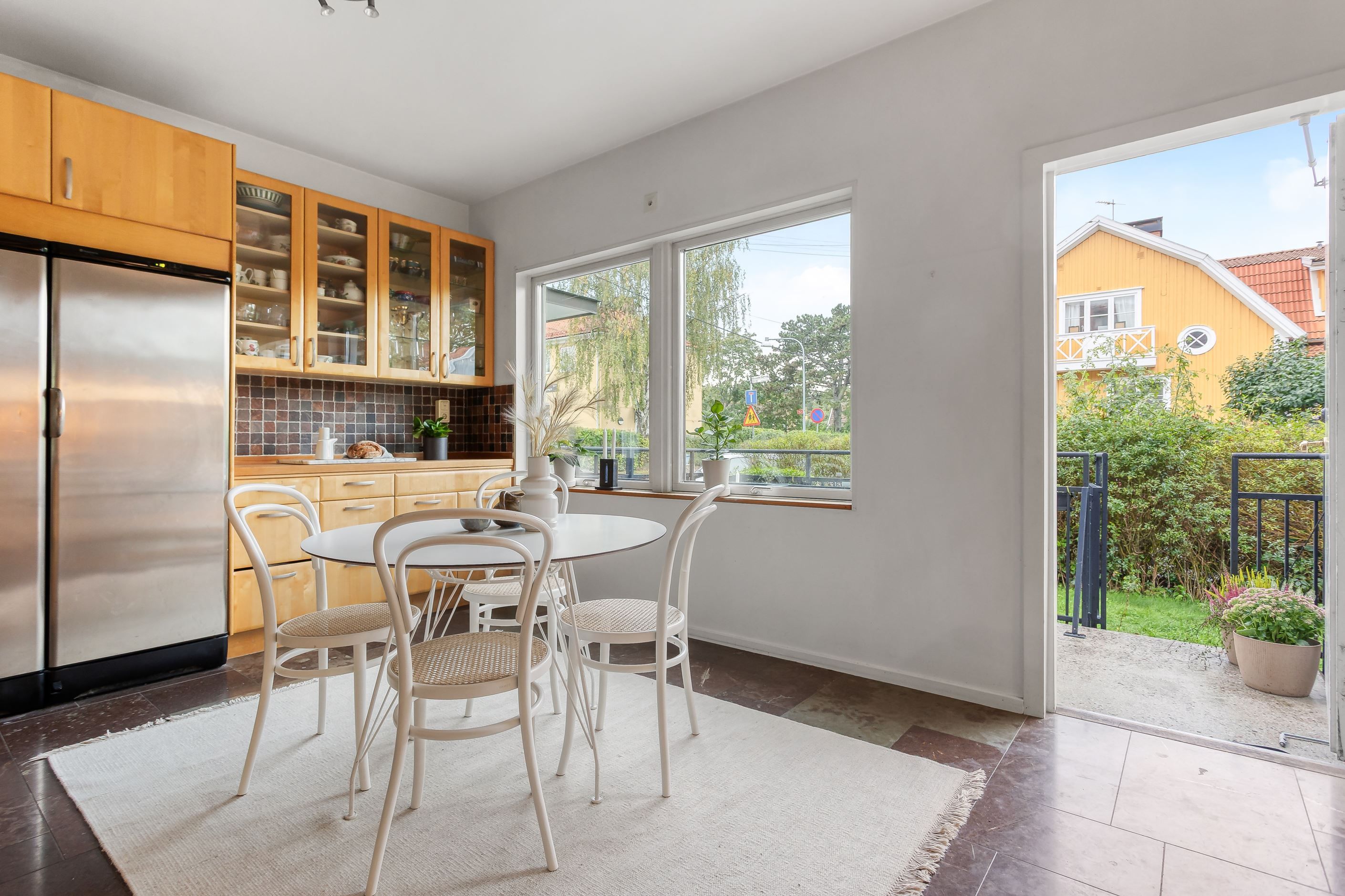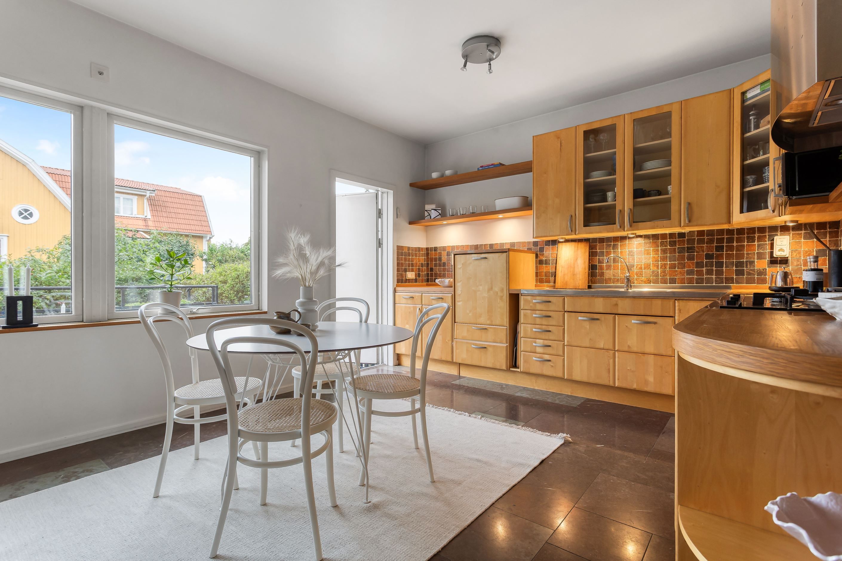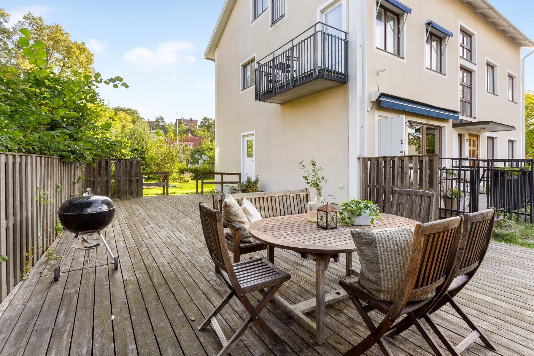 Välkommen till denna rymliga bostad med en totalyta om 148 kvm (108 + 40 kvm), fördelad på två plan och med tillgång till två stora uteplatser i olika väderstreck – perfekt för både sol och skugga under hela dagen.