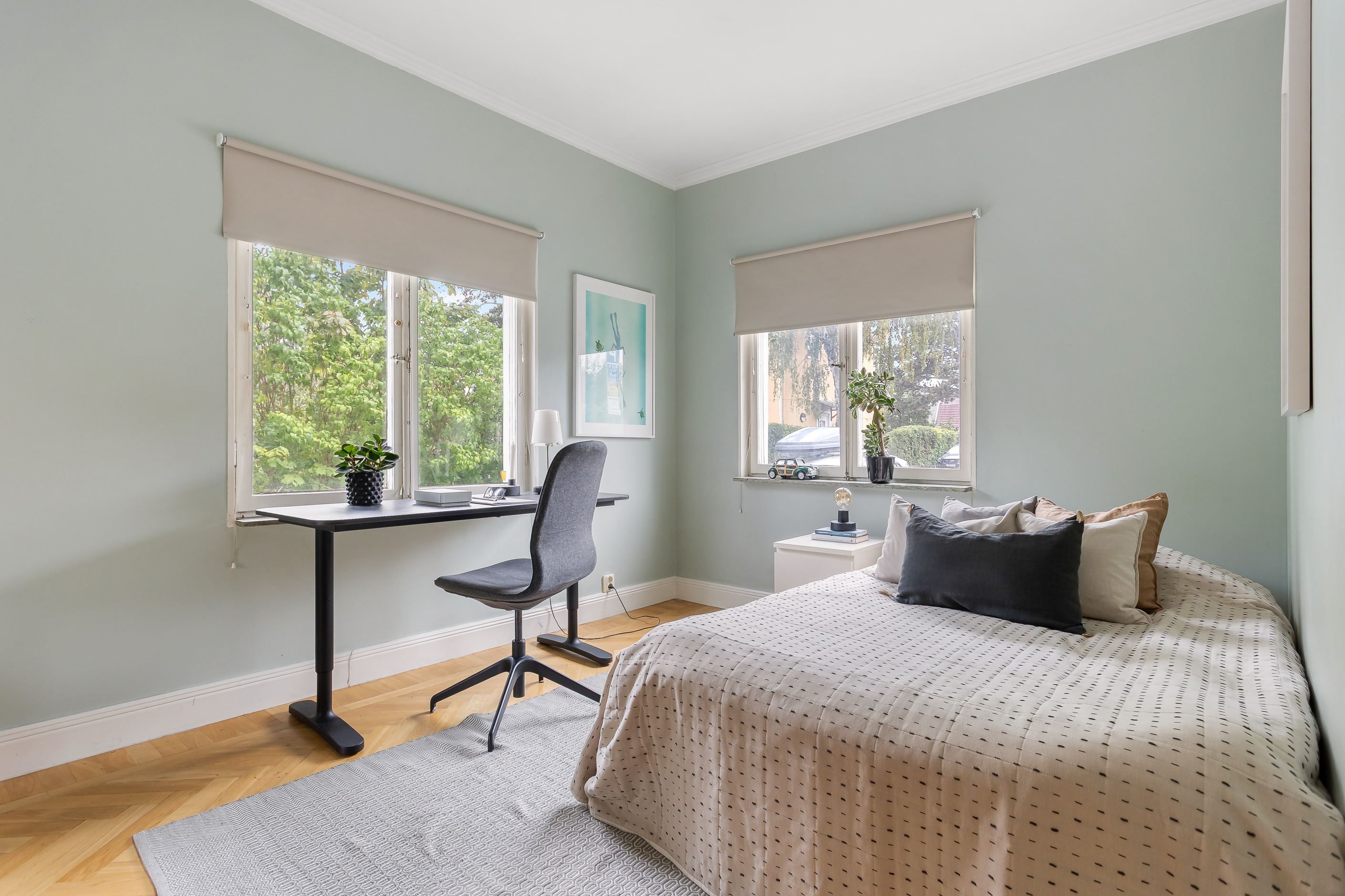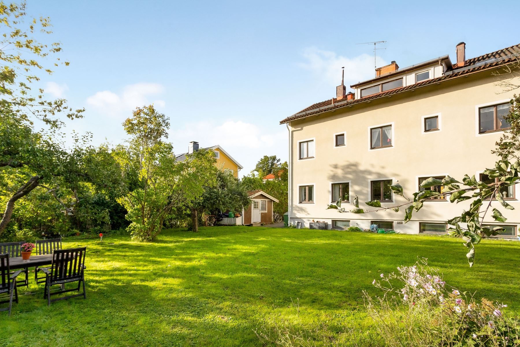 Bostaden präglas av tidstypiska originaldetaljer som stenfönsterbrädor och fiskbensparkett, samtidigt som planlösningen och de stora ytorna ger ett hem med både karaktär och funktionalitet. Här bor du ostört med minimal insyn, men ändå nära all den service och kommunikation du behöver. Stabil förening som äger marken. Föreningen har en tvättstuga, cykel- och barnvagnsförråd och en stor grönskande innergård som verkligen är något utöver det vanliga. Här finns det möjlighet att odla, sola eller avnjuta en trevlig grillmiddag på innergården.