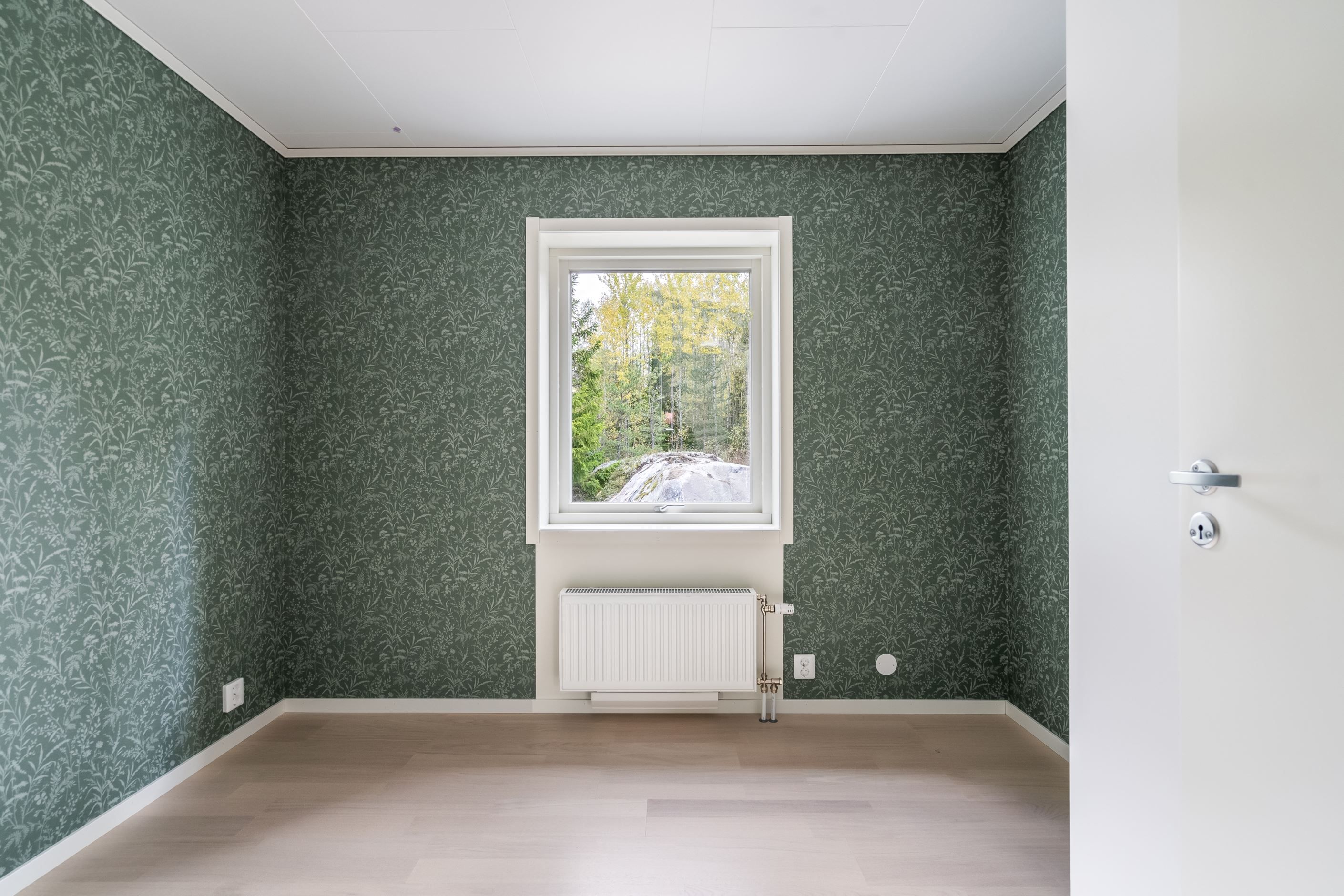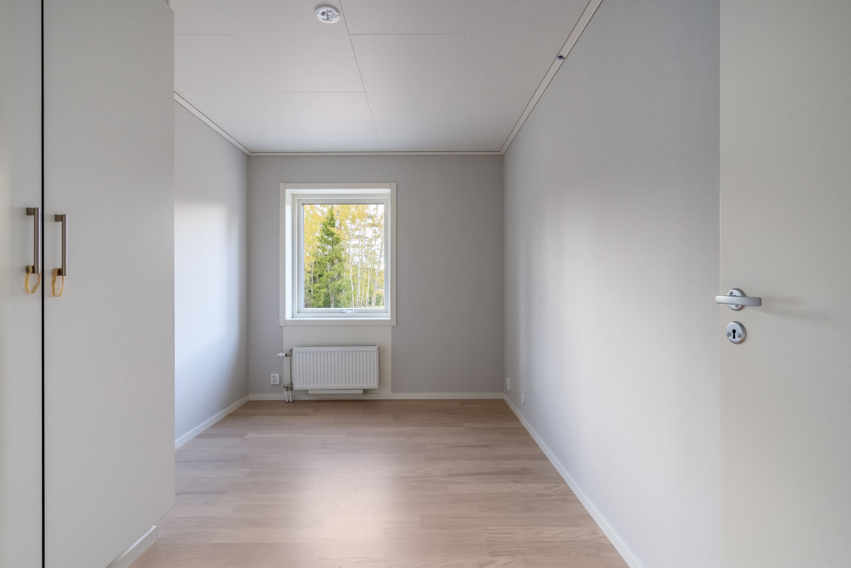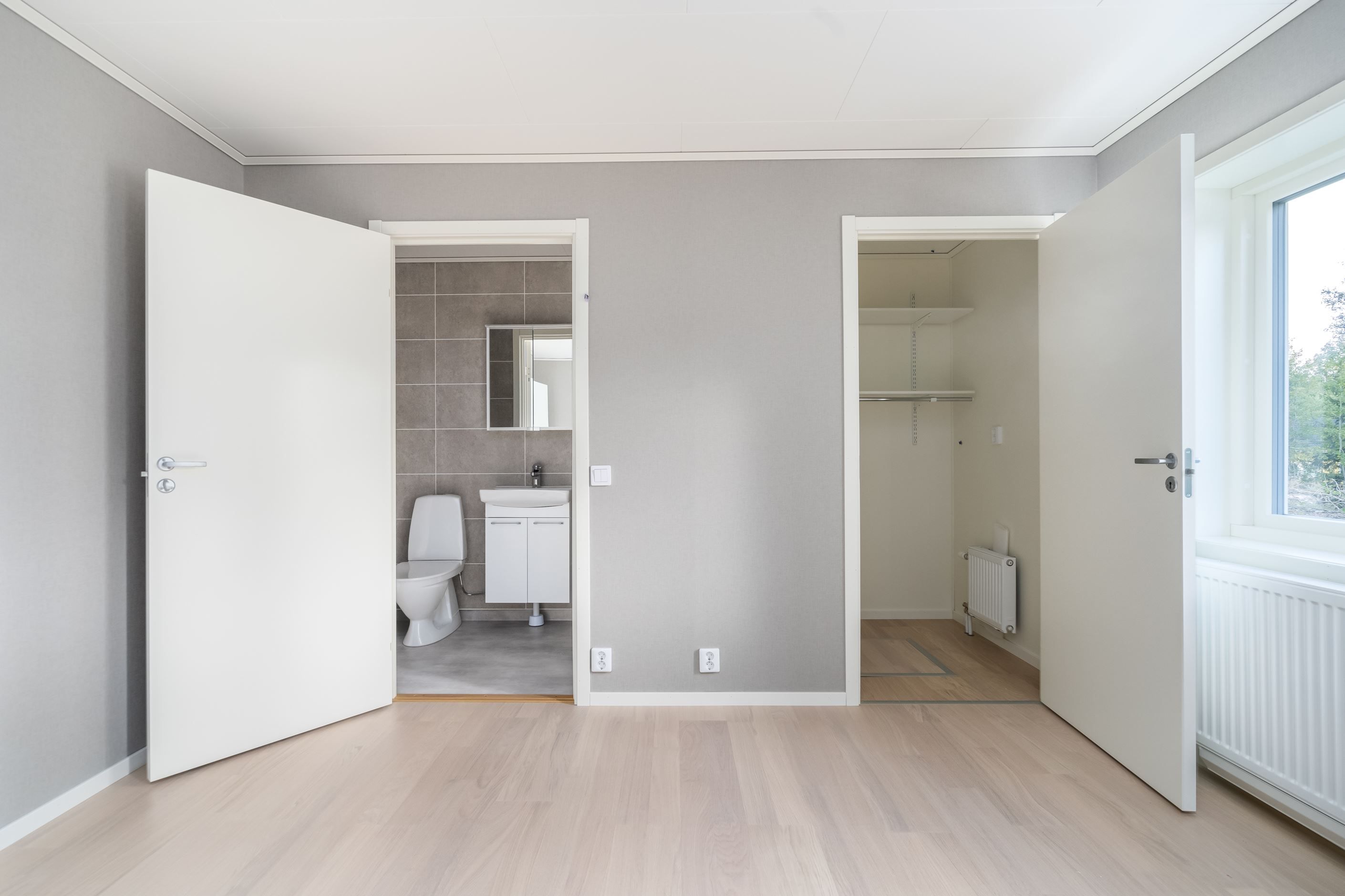 Bostaden har tre sovrum, varav det största erbjuder både en egen klädkammare och ett privat badrum. Det privata badrummet är utrustat med handfat med kommod, spegelskåp med belysning och förvaring, wc samt duschhörna med vikbara duschväggar. De två övriga sovrummen har goda förvaringsmöjligheter i form av rymliga garderober.