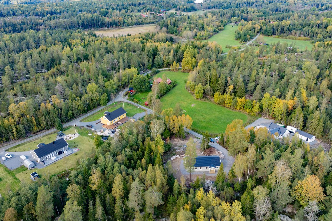 Här bor du lantligt och rofyllt, med skog, natur och vackra insjöar alldeles intill. Samtidigt är Stockholm City bara cirka 45 minuter bort med bil, och närmaste busshållplats nås på cirka 2 km via lugna vägar.