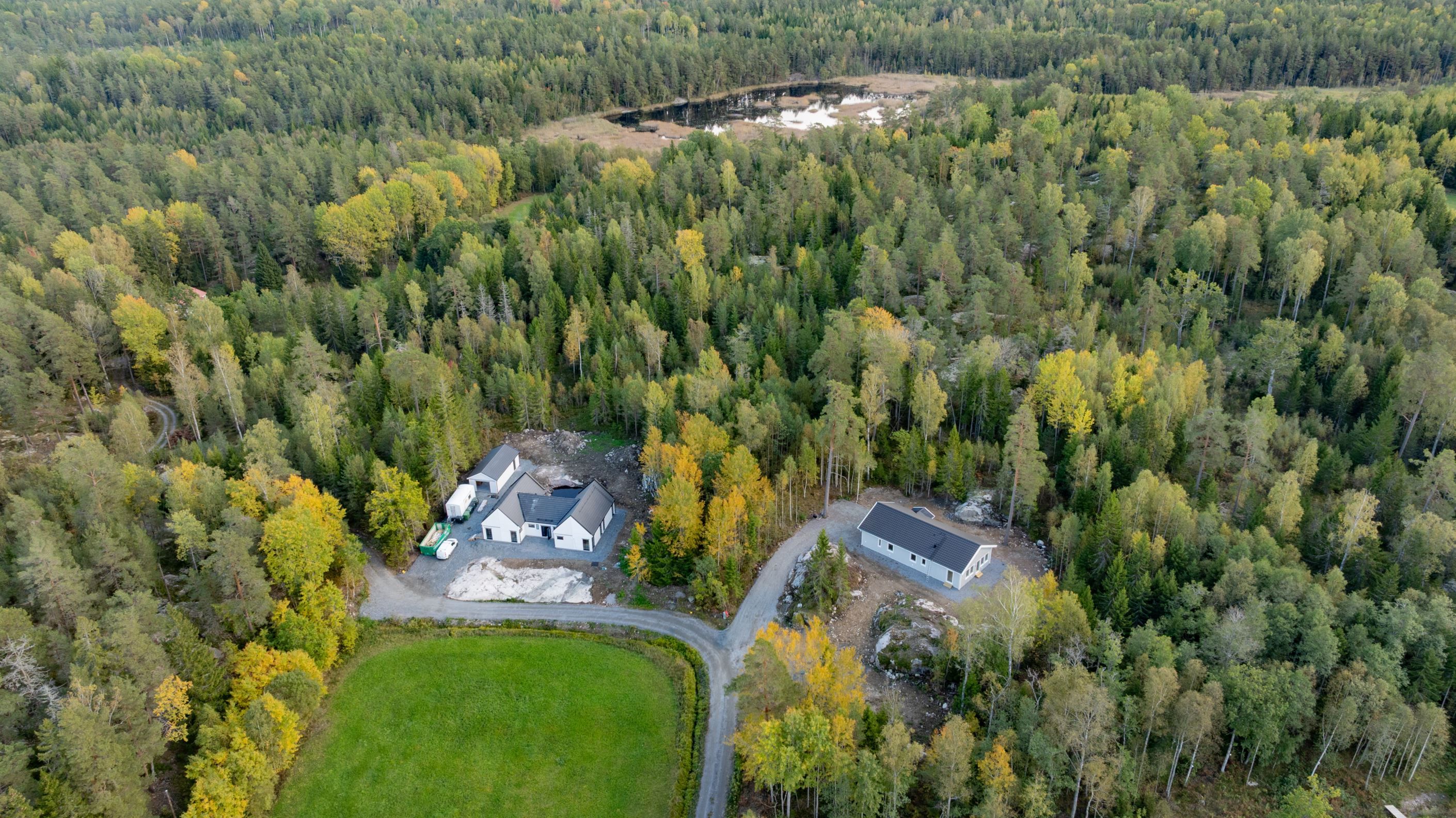 Den stora tomten om 2 147 m² levereras grovplanerad med grusad infart, och ger fina förutsättningar för en plan, grön gräsmatta – perfekt för lek, bollspel eller bara lugna stunder utomhus.