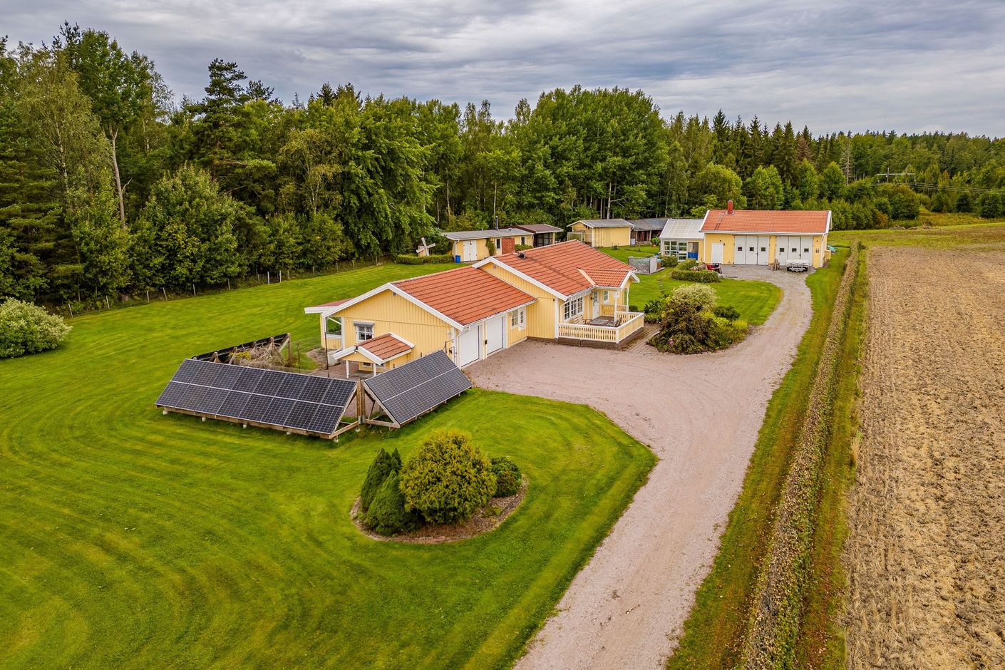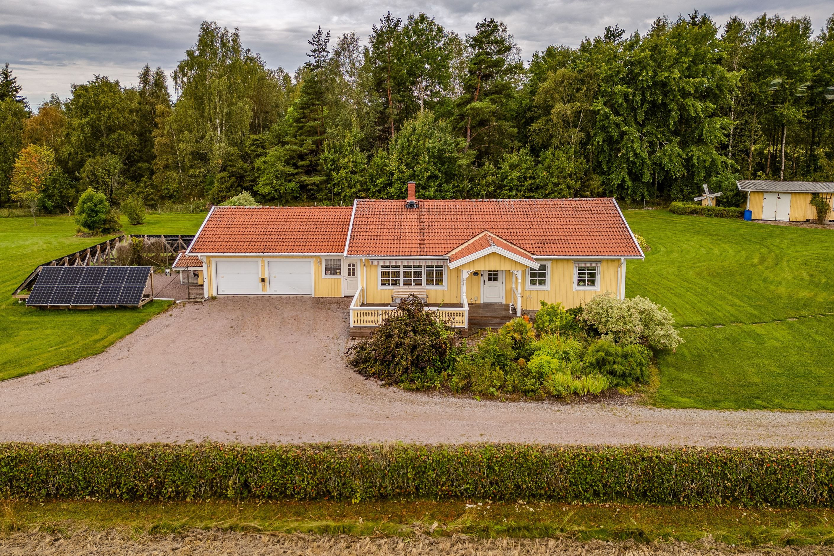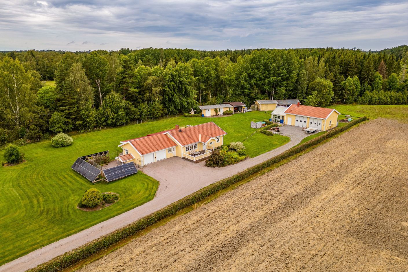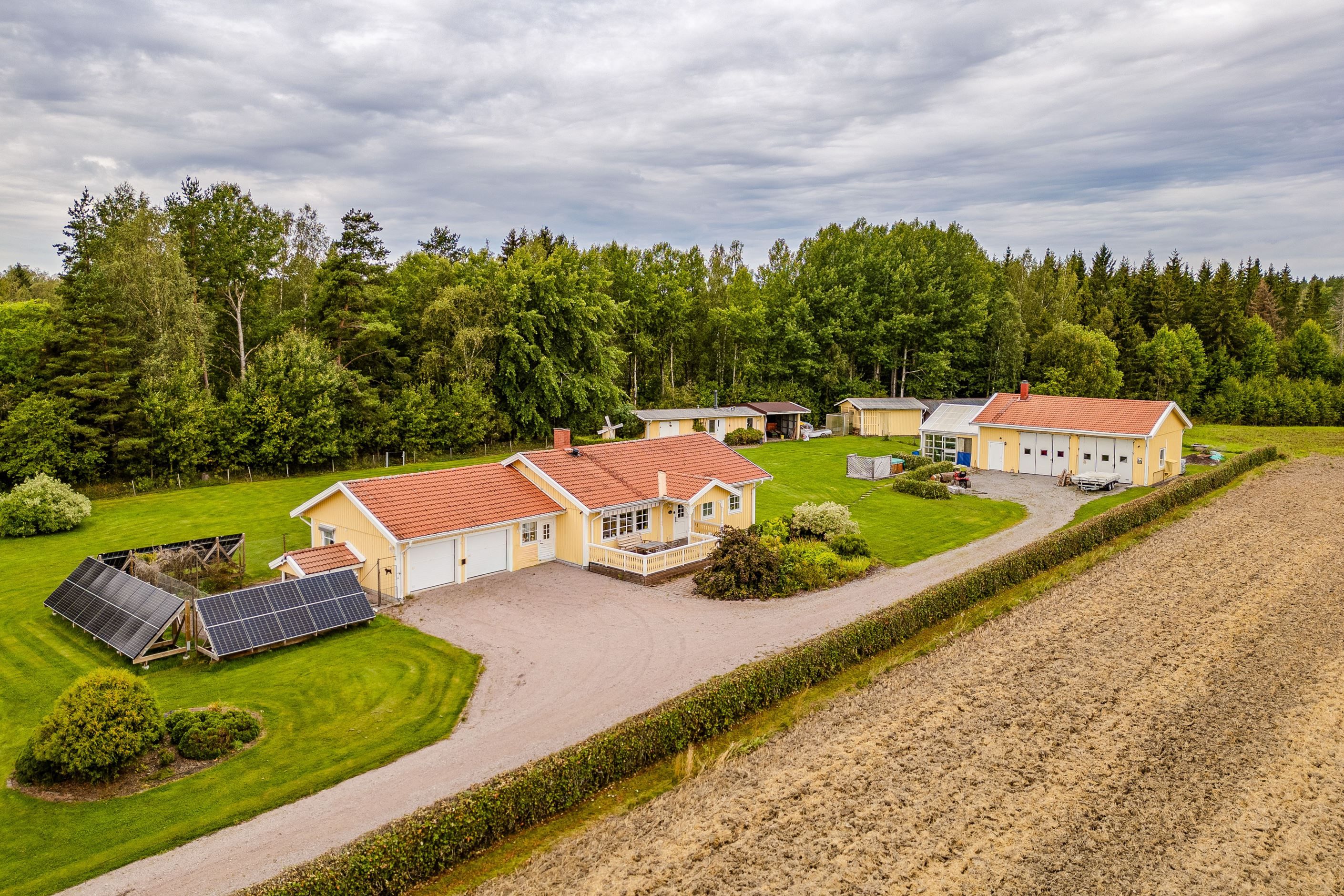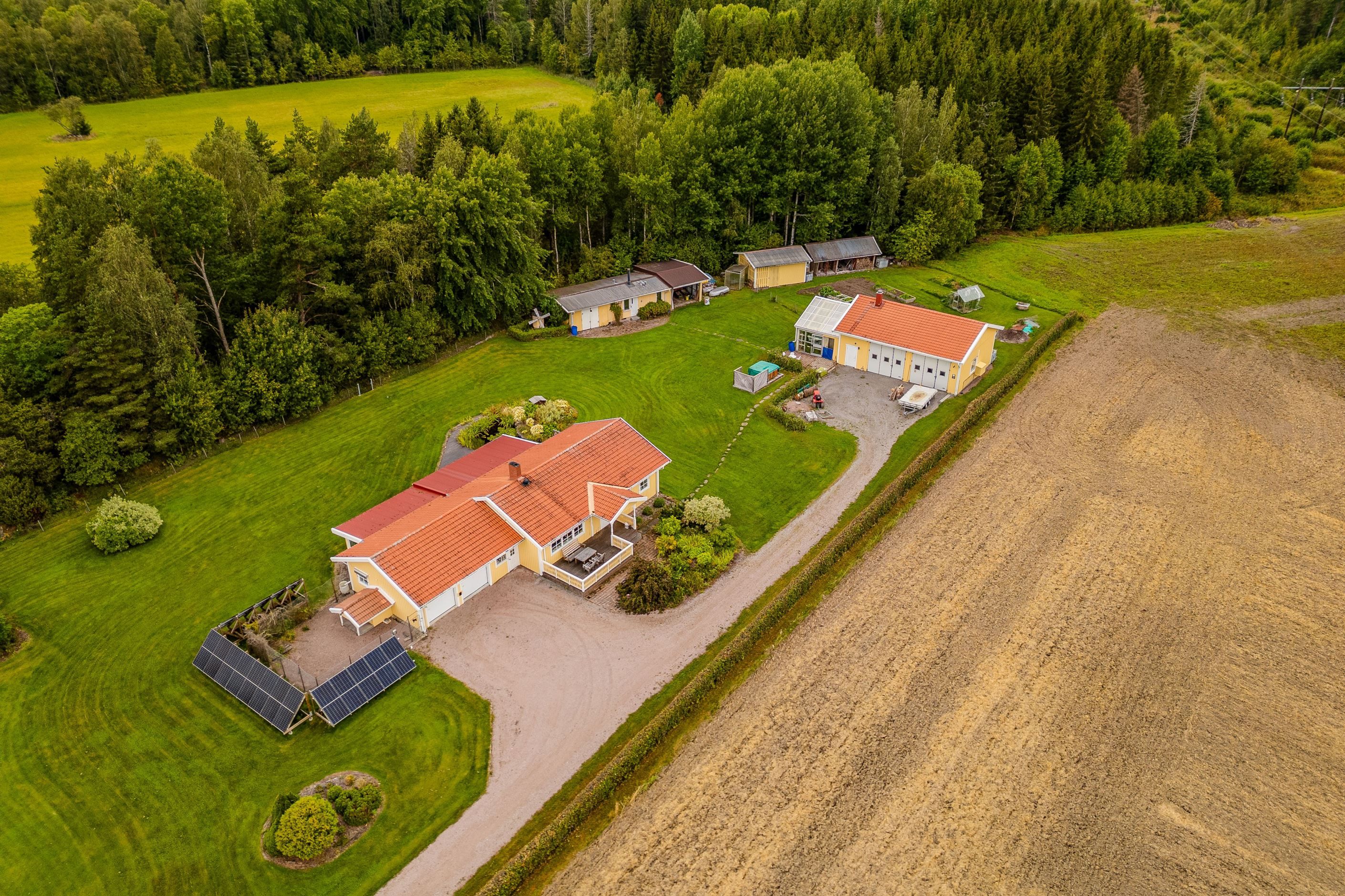 Tomten om hela 6 026 kvadratmeter är en sann dröm för den som vill leva nära naturen. Här finns plats för lek, odling, skapande och trädgårdsdrömmar. Låt fantasin flöda i växthuset, skörda från odlingsytorna, förvara ved i vedboden och utnyttja de generösa sidobyggnaderna för maskiner, hobby eller förvaring. Möjligheterna är många och här är det bara du som sätter gränserna.