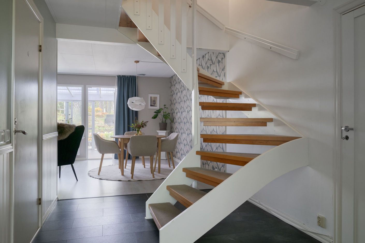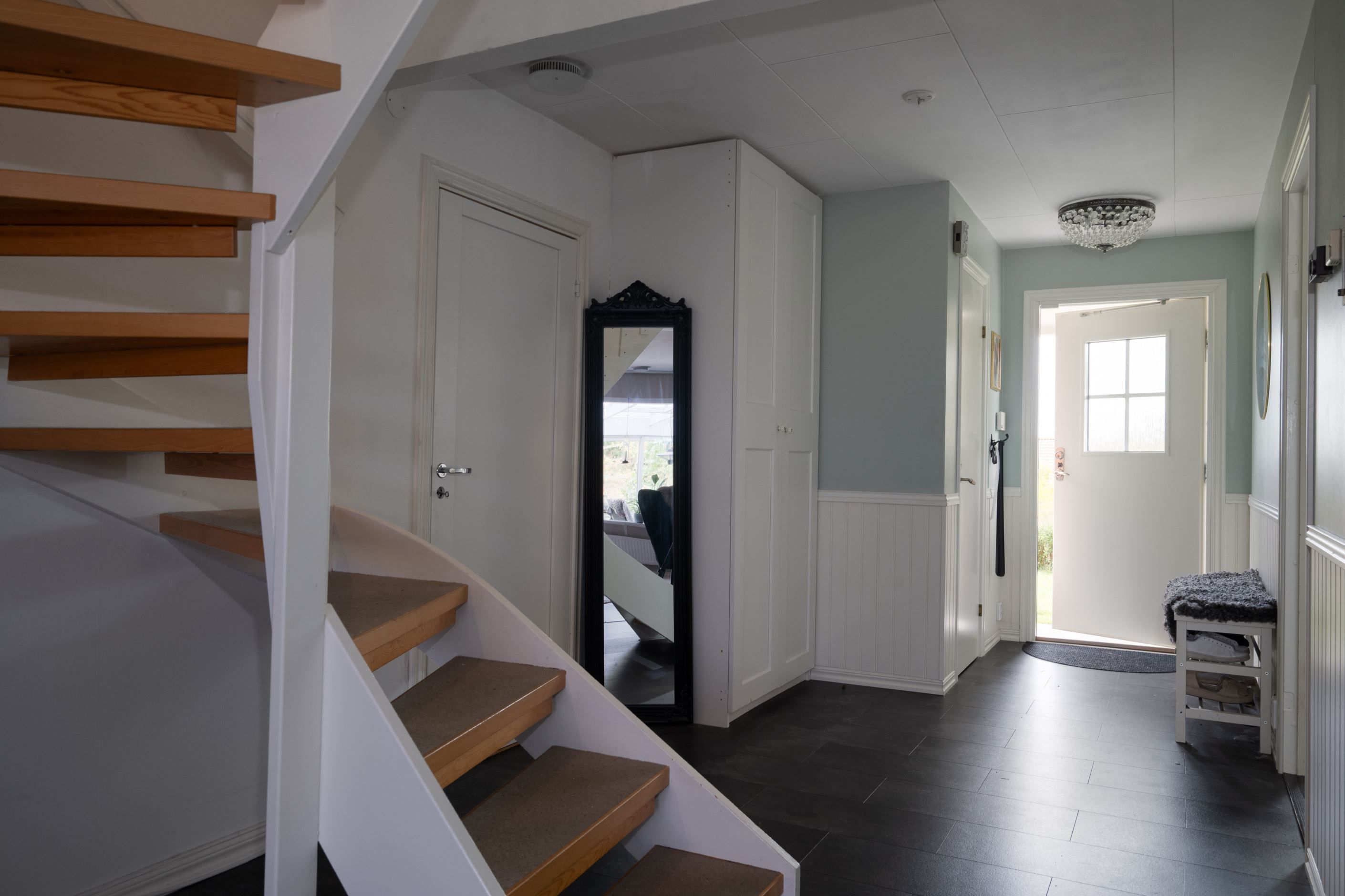 Från hallen nås vind med bra förvaringsmöjligheter.
