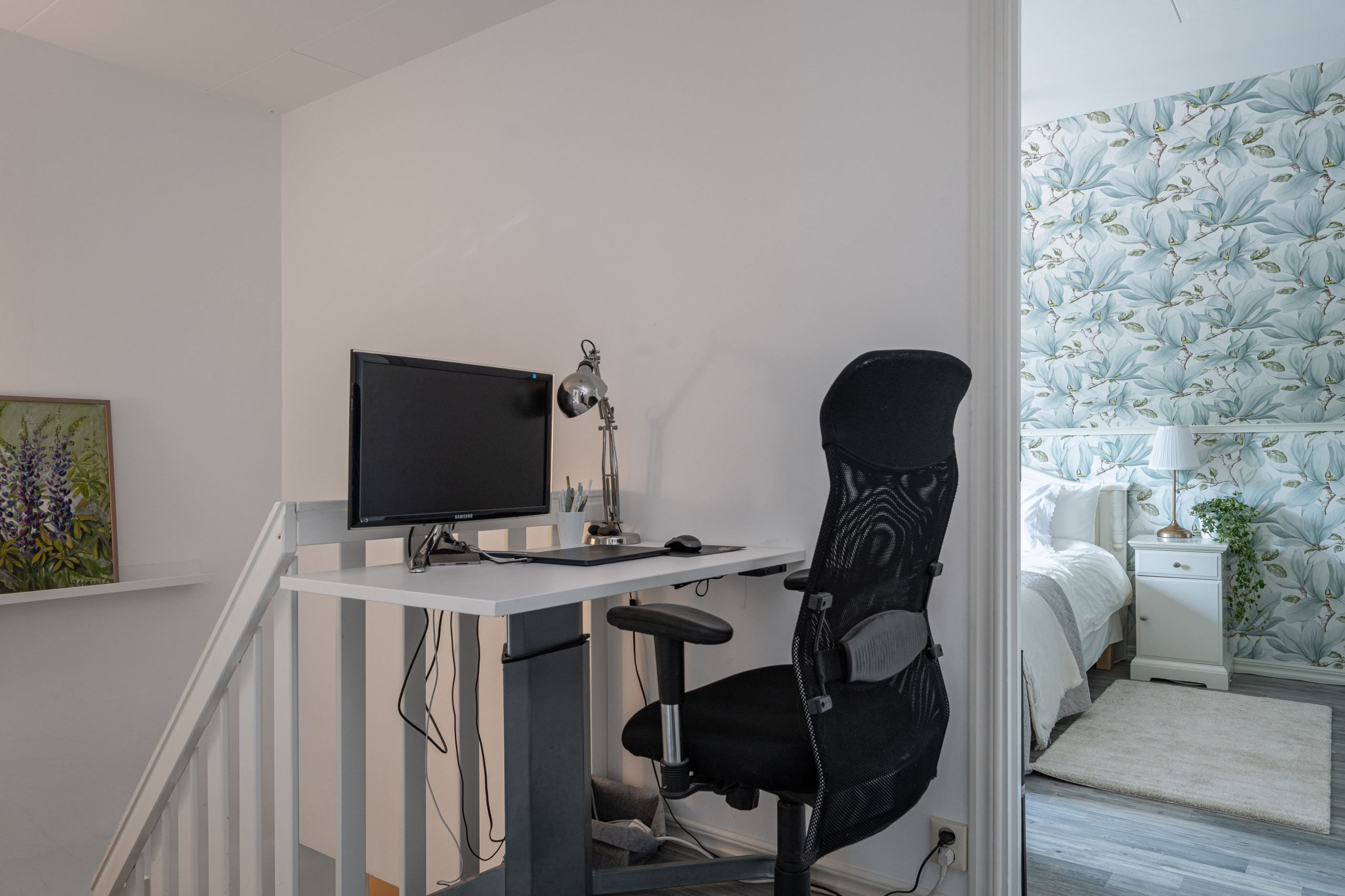 Nu finns möjligheten att förvärva detta välplanerade parhus i bostadsrättsform med hela 4 sovrum. Här möts du av en trevlig tomt med uterum, stor altan samt gräsyta belägen mot skogen. Garaget har byggts om för att skapa ytterligare ett sovrum. Här bor ni i omtyckt område med gångavstånd till centrum med goda kommunikationer, skola, förskola och skog med trevliga promenadstråk.