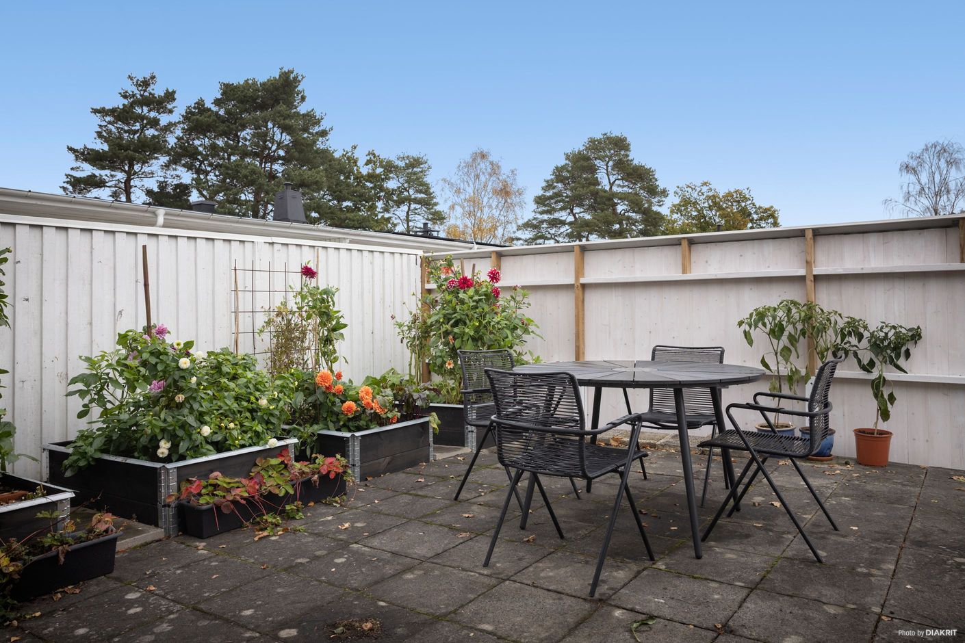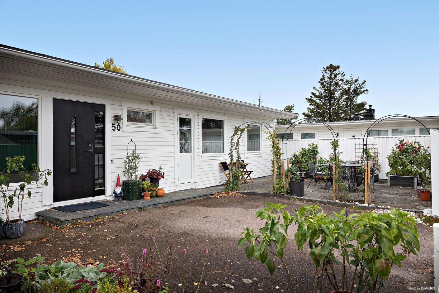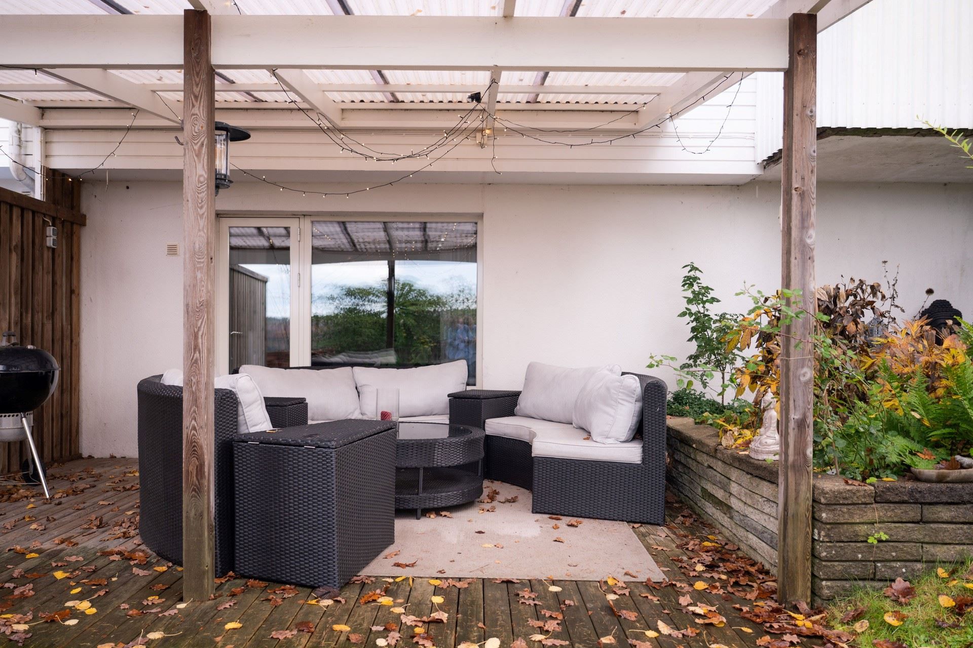 Uteplatserna på både fram- och baksida förlänger hemmet ut i naturen. Den rymliga balkongen i soligt läge bjuder in till ljumma sommarkvällar med utsikt över älven – en plats för drömmar, samtal och kanske ett glas vin i solnedgången. Den lätthanterliga trädgården ramas in av grönska och erbjuder både altan och uteplats där du kan njuta av doften av nybryggt kaffe på morgonen eller en lång middag i skymningen.
