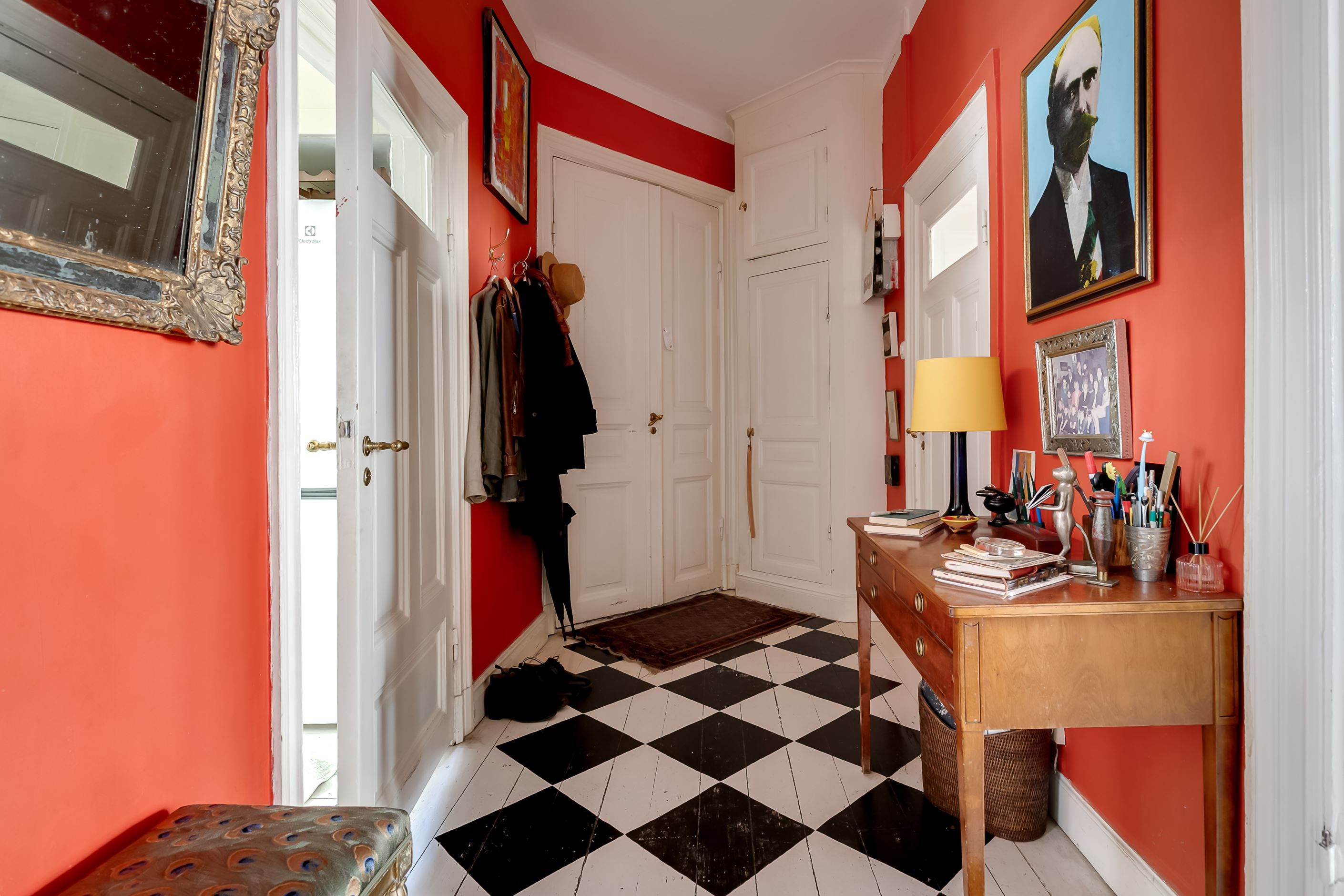 Invändigt imponerar bostaden med sin klassiska sekelskiftescharm. Den ståtliga fastigheten från 1886 sätter tonen, och i lägenheten samsas vackra tidstypiska detaljer med en luftig och inbjudande känsla. Generös takhöjd, genomgående trägolv, eleganta pardörrar och en stämningsfull öppen spis skapar en atmosfär som är både varm och representativ. De stora fönstren, med djupa nischer och marmorbänkar, släpper in ett fantastiskt ljusflöde som ger varje rum liv och karaktär.