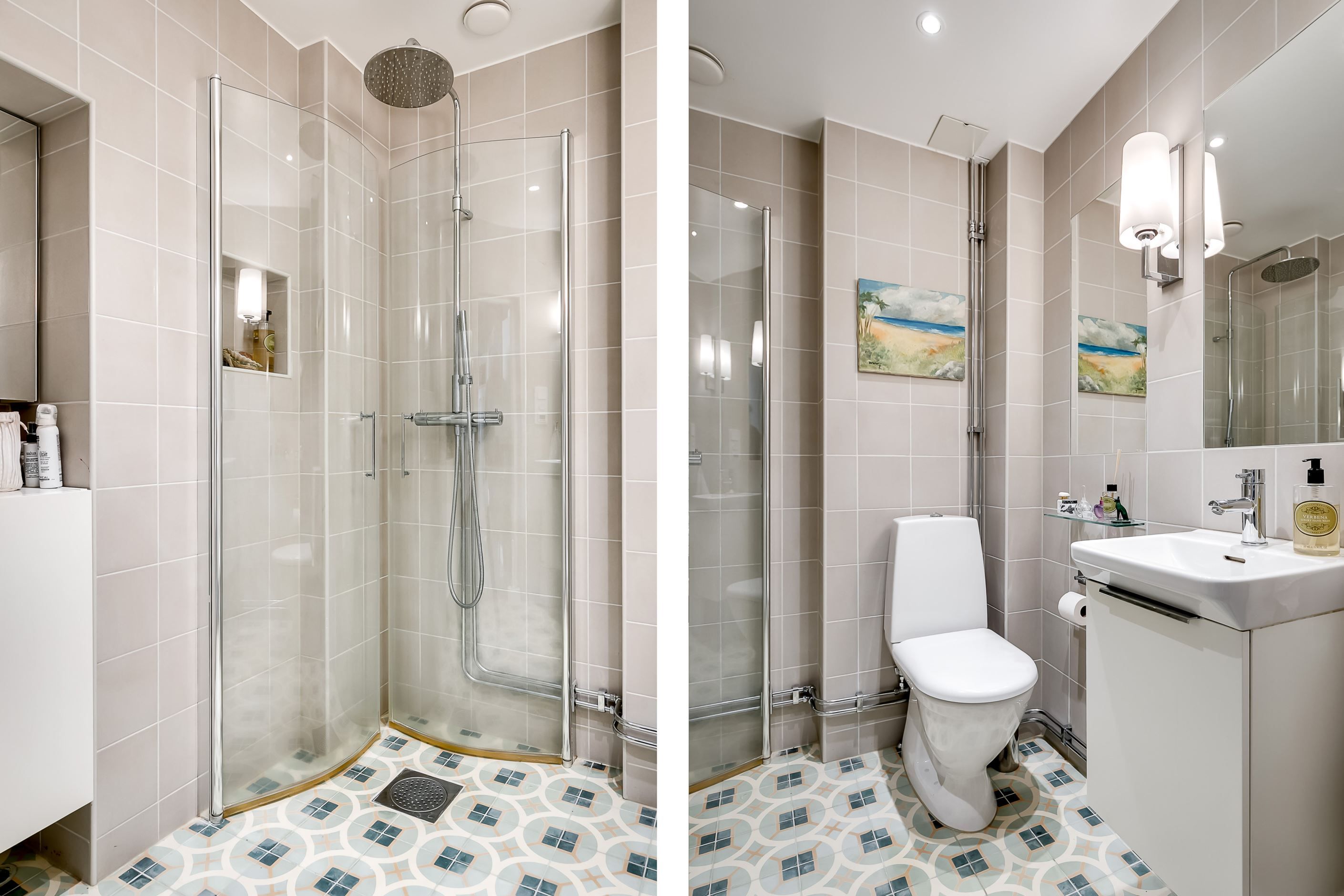 Planlösningen är genomgående och mycket väl disponerad, med fönster i två väderstreck som förstärker ljusinsläppet ytterligare. De sociala rummen – matsal och vardagsrum – vetter mot gatan och erbjuder generösa ytor för umgänge, middagar och avkoppling. För den som önskar finns flexibiliteten att enkelt skapa ett extra sovrum här. Köket och det rogivande sovrummet ligger mot den lugna innergården, vilket ger en harmonisk kontrast till stadslivet utanför.