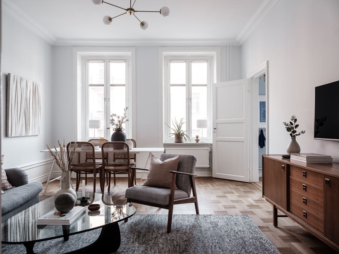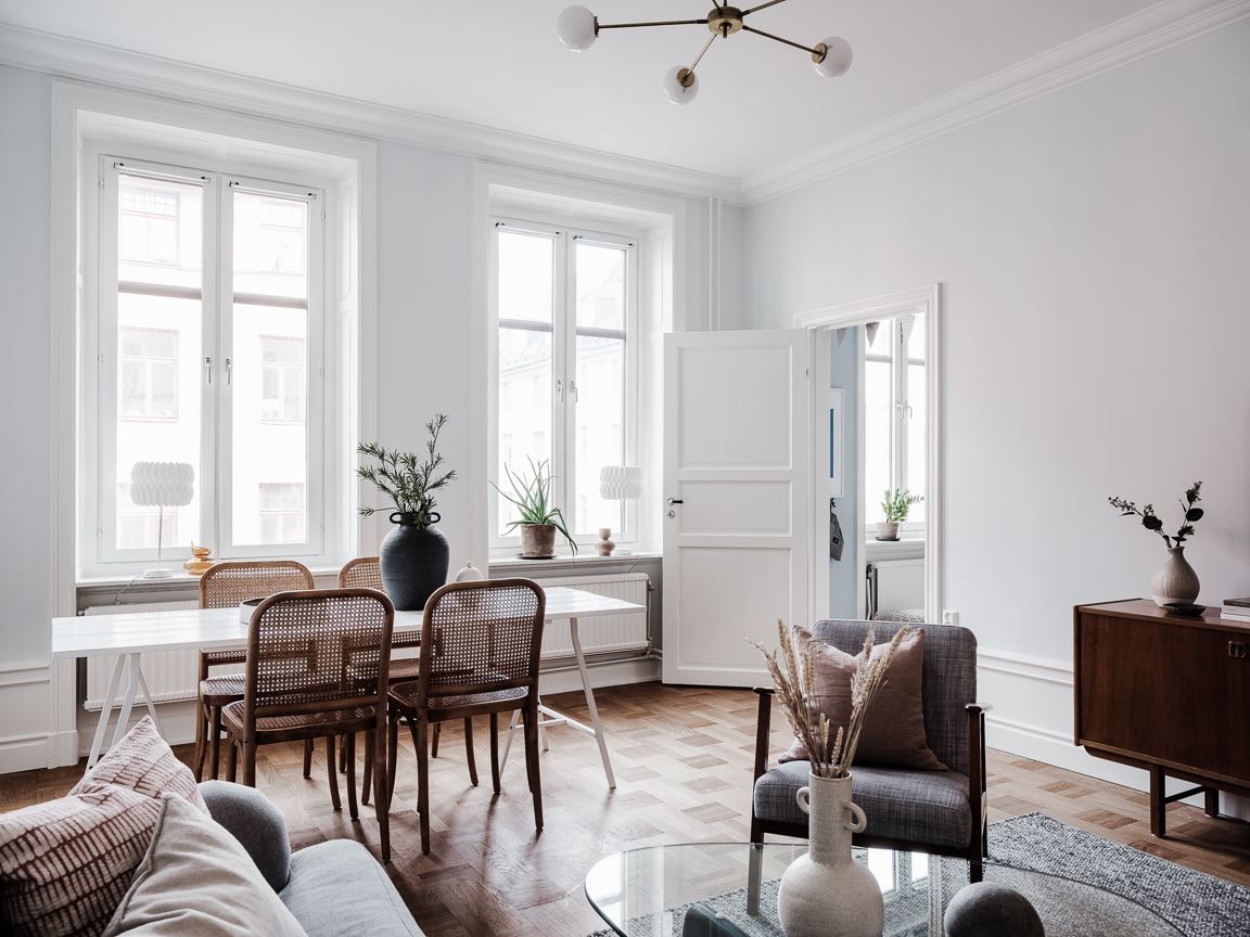 Härlig sekelskiftesdröm med flödande ljus och balkong i sydvästläge. Här erbjuds alla bekvämligheter med stilrena, exklusiva materialval samt en fantastisk balkong med sol hela dagen och kvällen! Bostaden är även ytterst väldisponerad där varje kvadratmeter nyttjas på absolut bästa sätt. Genomgående erbjuds en väl tilltagen takhöjd, vackra parkettgolv, pardörrar, höga speglade fönster för rikligt ljusinsläpp samt vackra tidstypiska detaljer. Här bor ni i välskött fastighet anno 1890 i förstklassigt läge invid Odenplan.