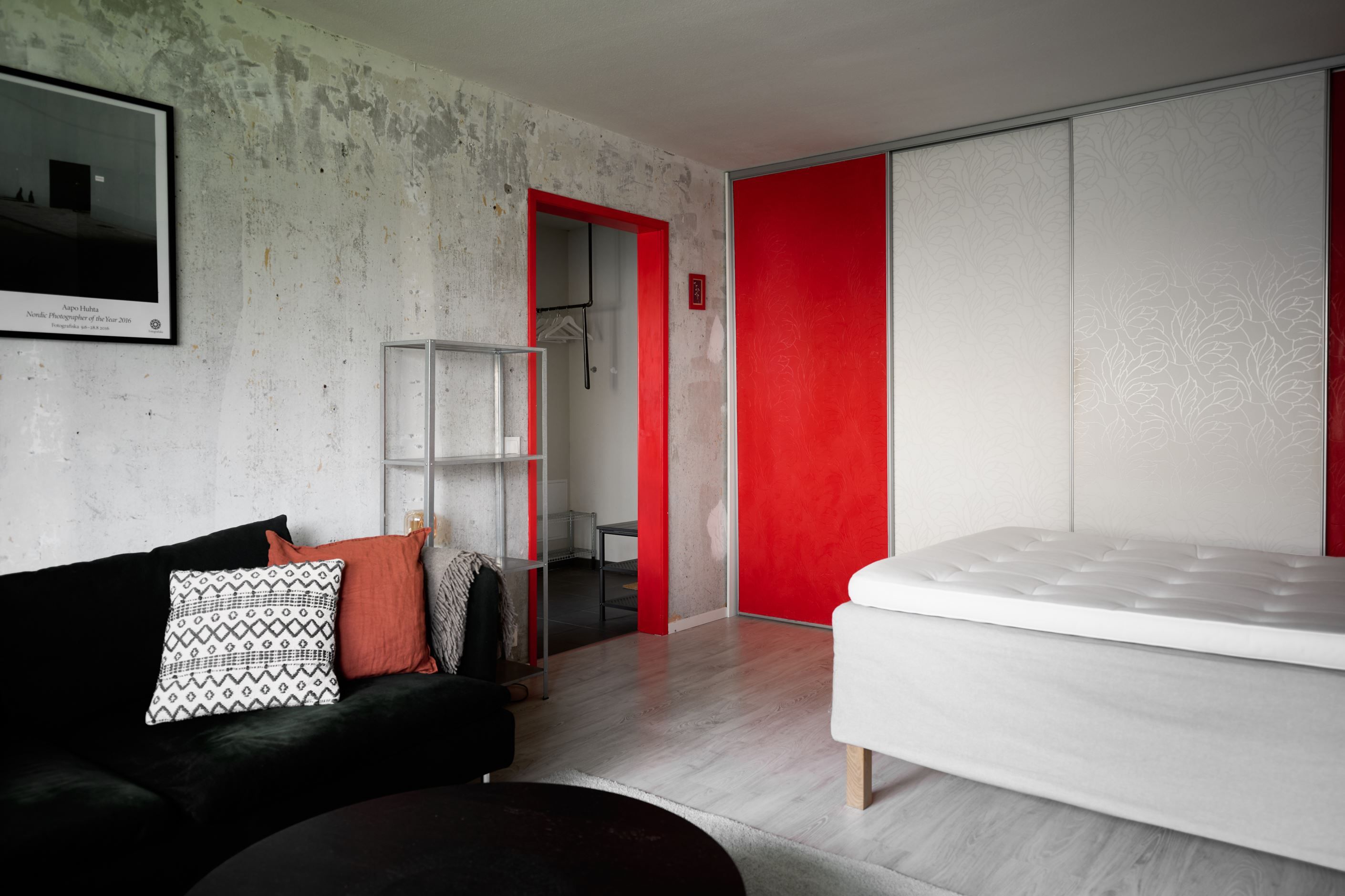 Lägenheten har ett genomgående fint skick med stora fönsterpartier samt två komma fem meter i takhöjd vilket gör lägenheten ljus.