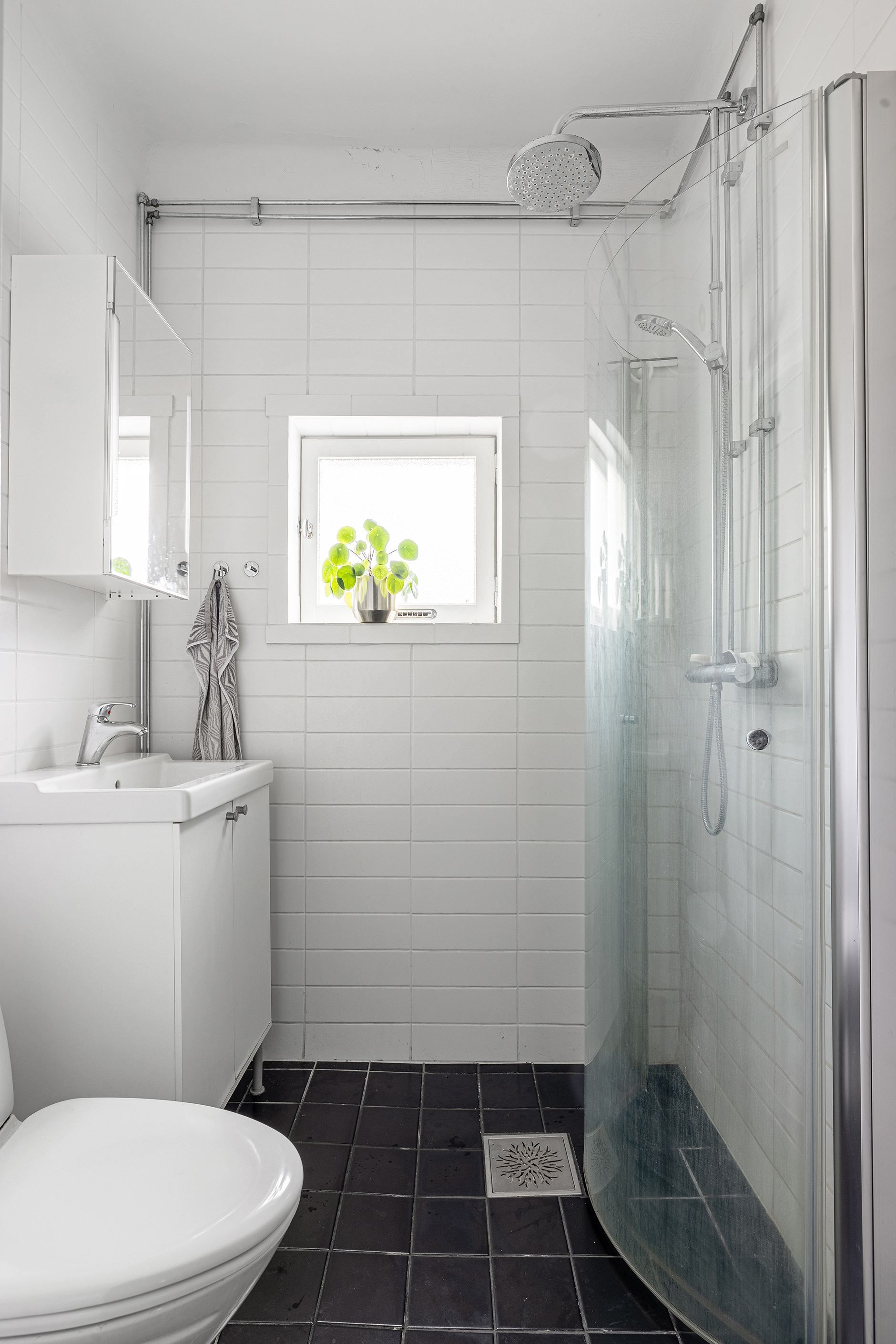Köket är ljust och fräscht, och den praktiska barliknande delen erbjuder en utmärkt matplats i anslutning till vardagsrummet – perfekt för sociala stunder eller en snabb frukost. Intill köket hittar du ett mysigt sovrum med plats för en dubbelsäng och smarta förvaringsmöjligheter. Det helkaklade badrummet är utrustat med dusch och golvvärme, vilket ger det där lilla extra av vardagslyx.