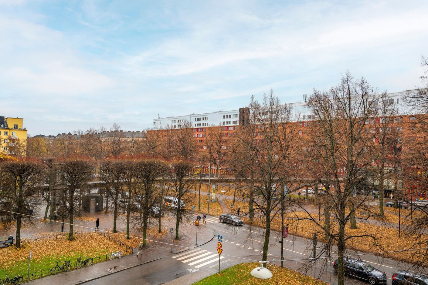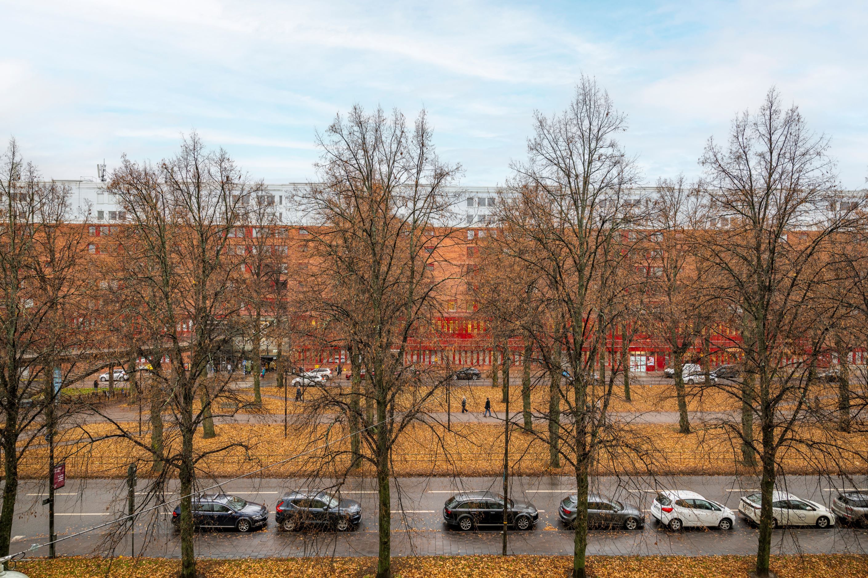 Välkommen till denna smakfullt renoverade trea med både badrum och gäst-wc – en perfekt kombination av tidstypisk funkischarm och modern elegans. Lägenheten ligger högt upp i huset med fri utsikt, härligt ljusinsläpp från söder och grönskande vyer utan direkt insyn.